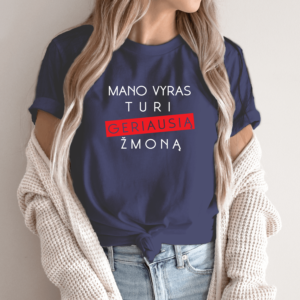 Unisex marškinėliai su spauda „Mano vyras turi geriausia žmoną“
