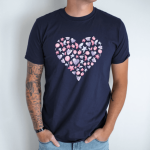 Unisex marškinėliai su spauda „Spalvinga širdelė“