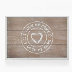 Šie padėklai su užrašais „I love my home“ yra miela ir šilta dovana artimiesiems ar draugams. Padėklai bus naudojami ne tik pagal savo pagrindinę paskirtį, bet taps ir dailiu namų atributu, kuris kurs jaukumą ir gerą nuotaiką namuose. Nustebinkite savo antrąją pusę atnešdami pusryčius į lovą ant šio padėklo ir padarykite nuostabų rytą Jums abiems!