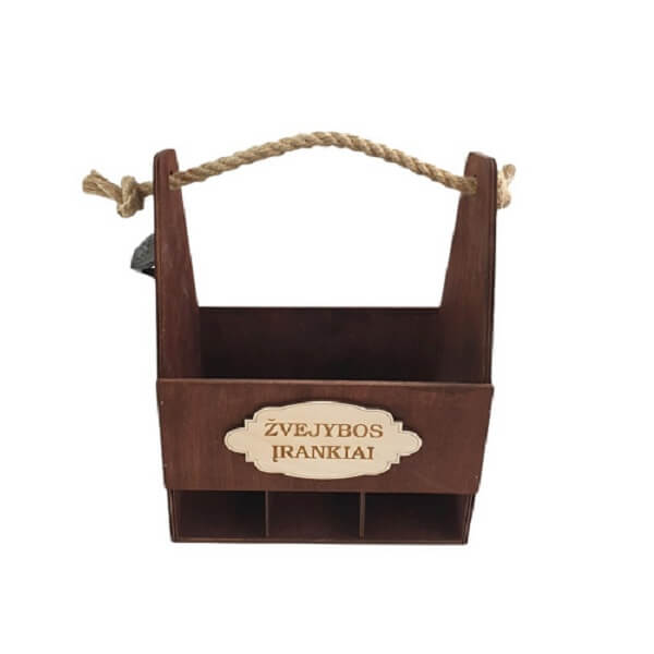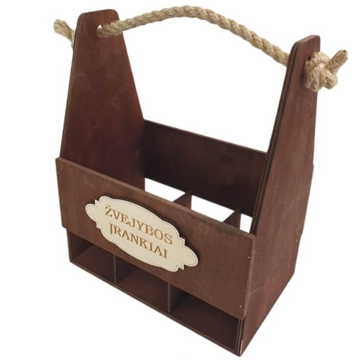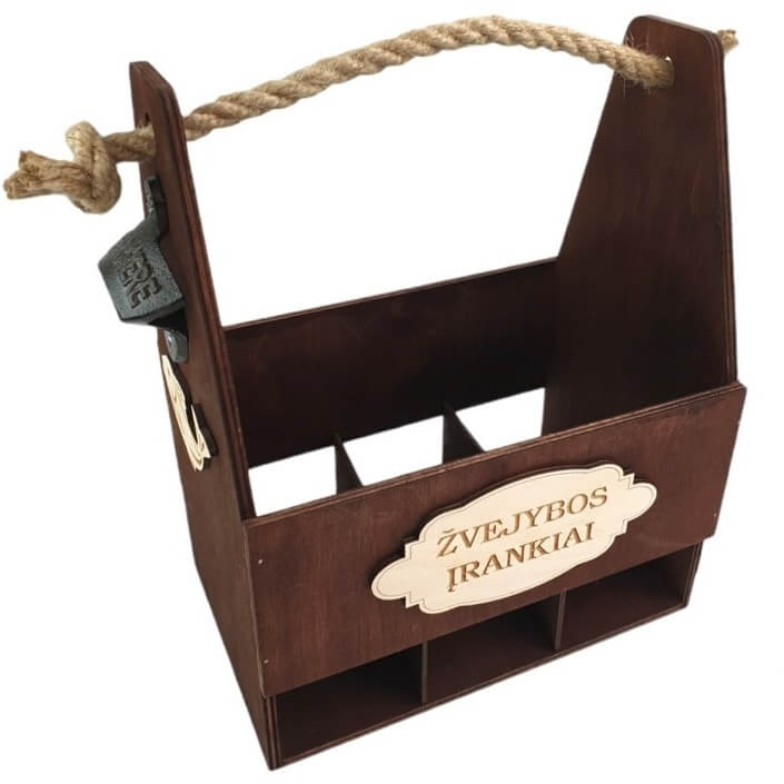 Išskirtinė dėžė butelių arba skardinių laikymui. Su šmaikščiu užrašu priekyje. Pagaminta iš kokybiško medžio. Telpa 6 vienetai. Šone pritvirtintas tvirtas atidarytuvas.