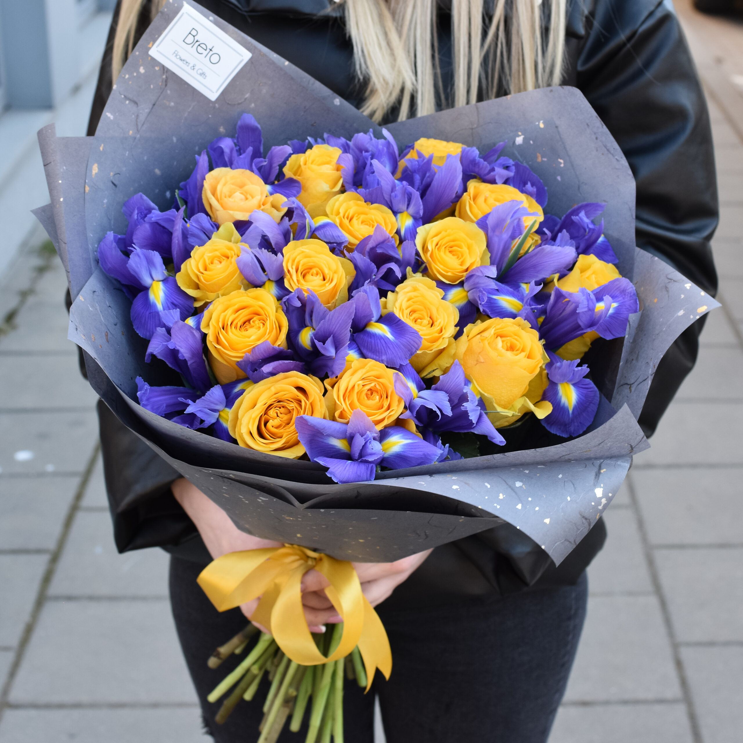 Norite savo artimam žmogui sukurti neišdildomą įspūdį, tuomet padovanokite šią, išskirtinę geltonų rožių ir mėlynų irisų puokštę. Išskirtinė dovana, kuri atrodo tiesiog pasakiškai!