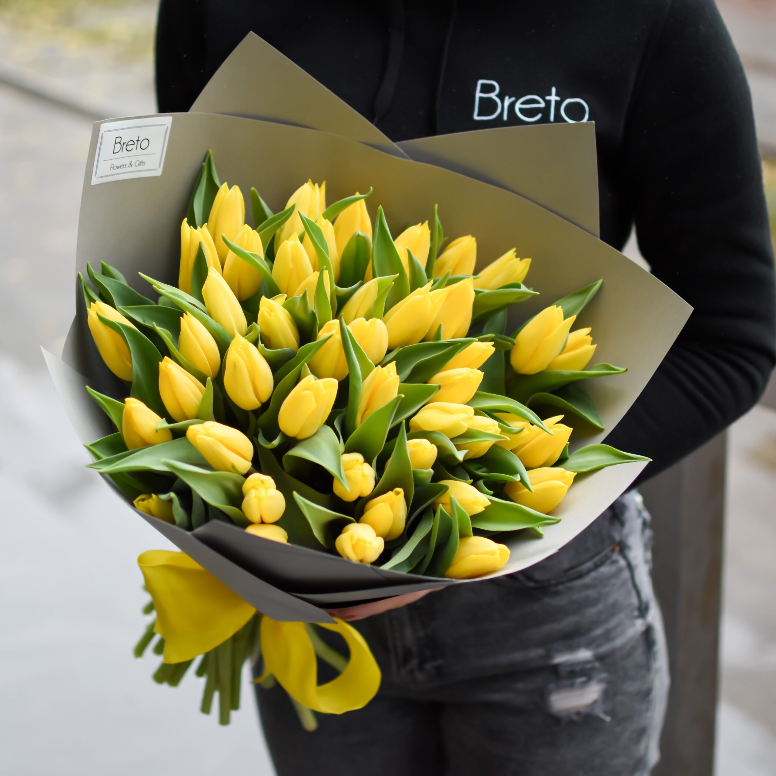 Geltonos tulpės yra itin žavinga ir šilumą bei šviesą į kiekvienus namus atnešianti dovana. Dovanokite geltonų tulpių puokštę moteriai ar merginai bet kokia proga ir jos diena tą pačią akimirką taps šviesesnė ir linksmesnė.
