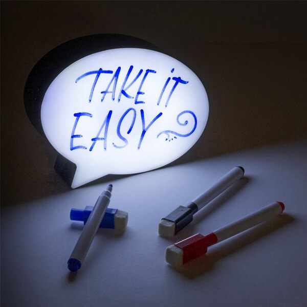 LED dekoracija „Žinutė“ – šauni dovana artimiesiems ir kolegoms. Žinutės formos LED dekoracija pagaminta iš kokybiško plastiko atlieka ne tik šviečiančios puošmenos funkciją, bet taip pat ant jos galima ir rašyti žinutes, priminimus. Žinutėje yra 8 LED lemputės, ir trys specialiai pritaikyti tušinukai su trintukais. Žinutei būtinos 3xAAA tipo baterijos (galima įsigyti papildomai). Dekoracijos matmenys 15 x 11 x 3,5 cm.