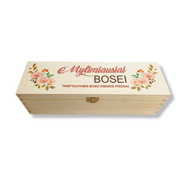 Medinė vyno dėžutė „Mylimiausiai bosei“ yra išskirtinė dovana. Puikus dėžutės dizainas kiekvienai bosei pakels nuotaiką ir praskaidrins dieną.