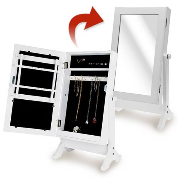 Šis pastatomas veidrodis – papuošalų dėžutė yra labai naudingas namuose – nuo šiol visos brangenybės ir aksesuarai (žiedai, apyrankės, grandinėlės ir kt.) bus tvarkingai sudėti ir saugiai uždaryti pastatome veidrodyje. Dėžutė – veidrodis yra puiki dovana visoms moterims, nes ji yra dailaus dizaino ir tiks prie bet kokio interjero kambaryje ir namuose. Dėžutę lengva surinkti (pridedamas šešiakampis raktas ir varžteliai).