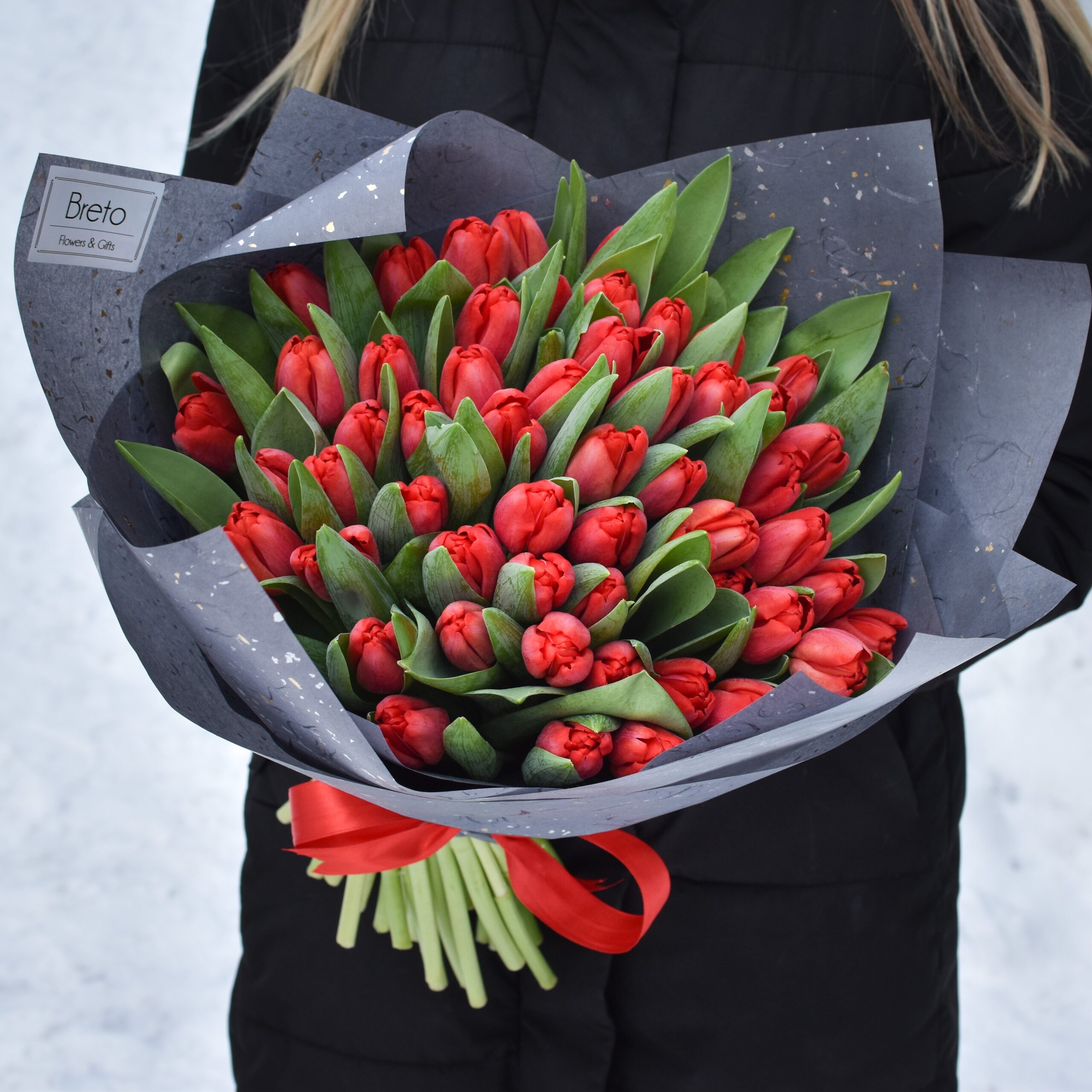 Raudonų tulpių puokštė