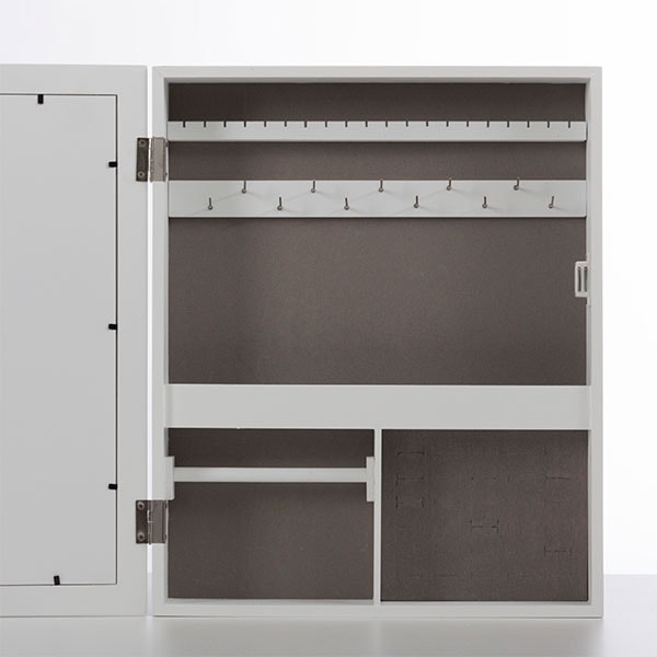 Viduje yra: 1 skersinis apyrankėms sukabinti, 11 kabliukų vėriniams, 20 vietų auskarams ir 30 vietų žiedams.