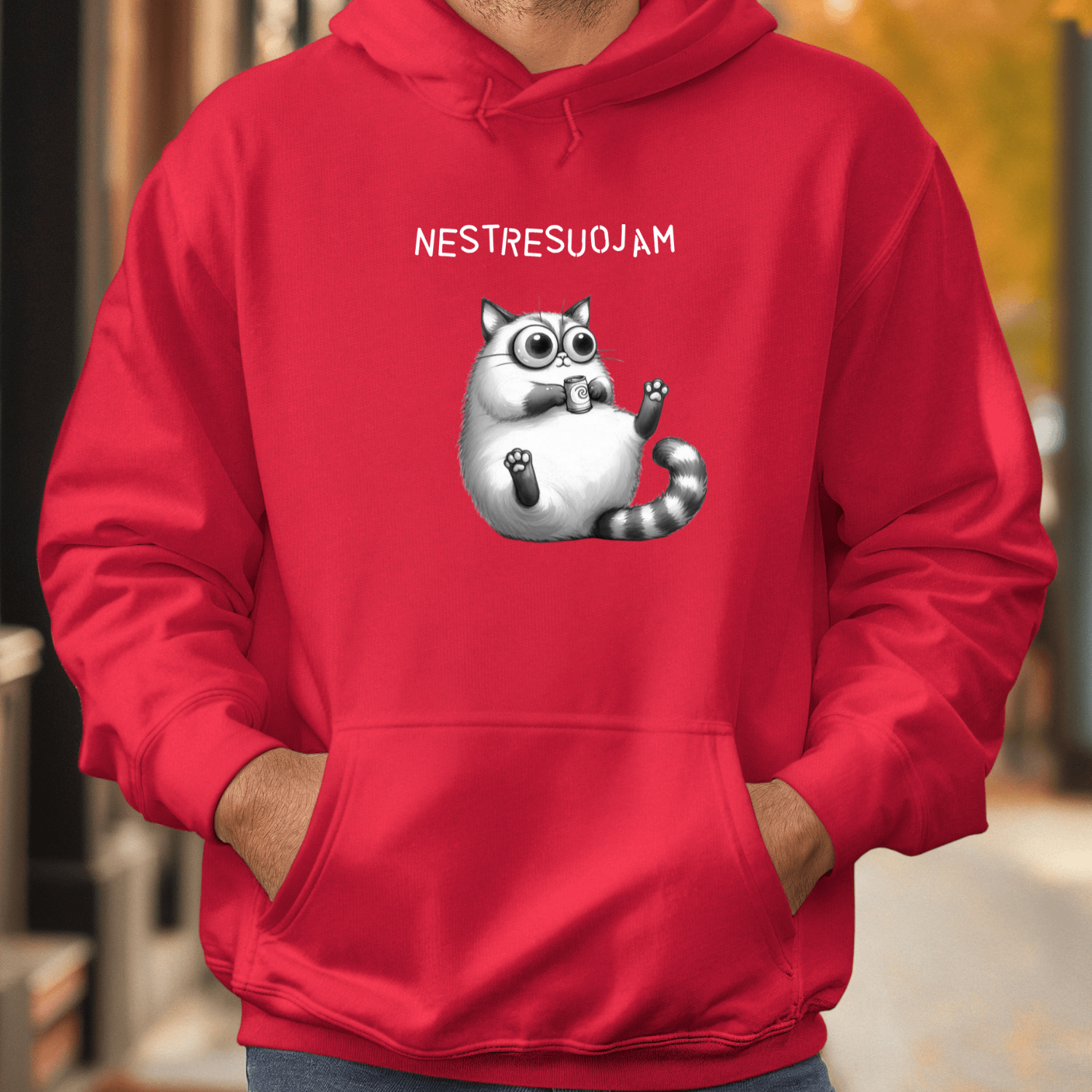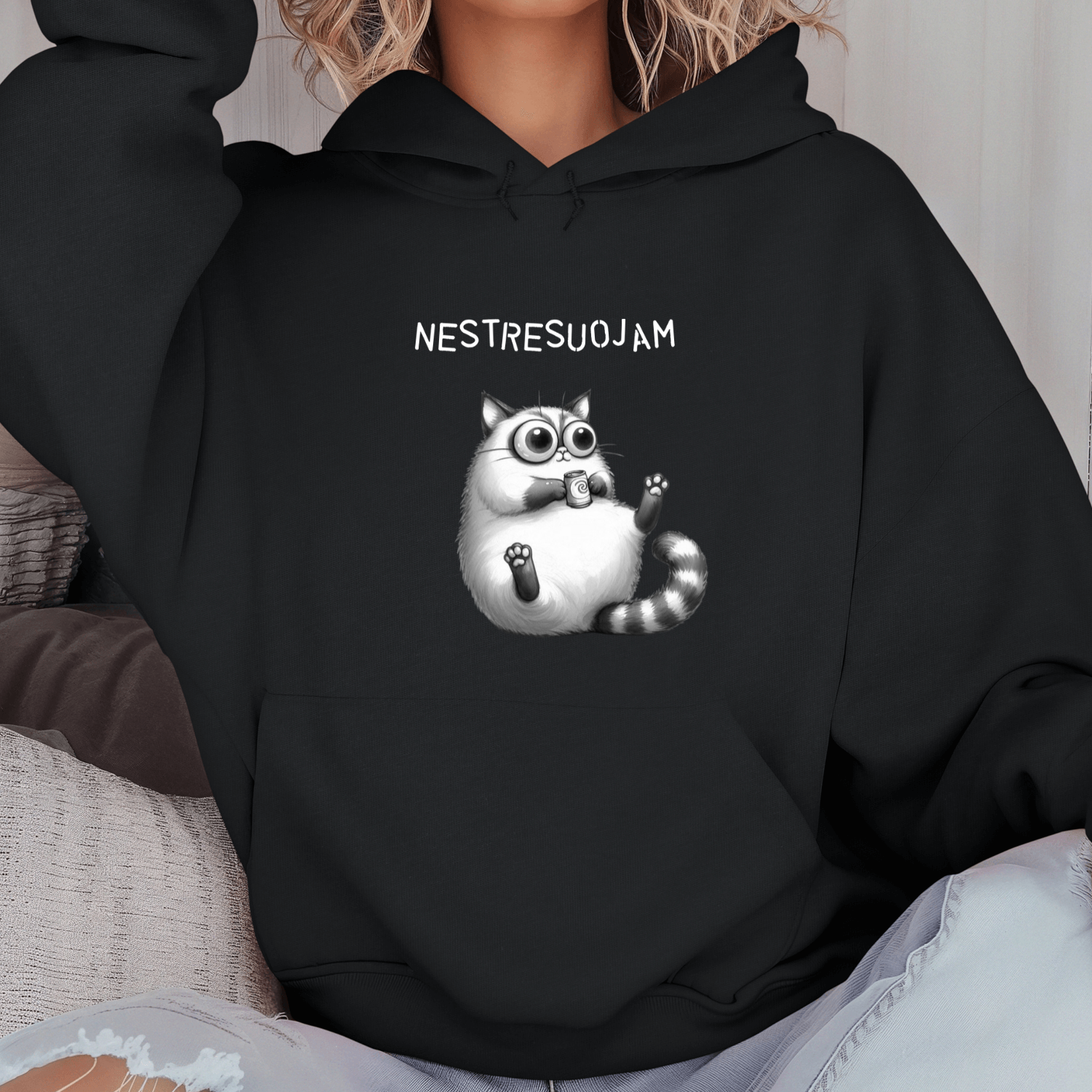 Unisex džemperis su spauda „Atsipalaidavęs katinas“