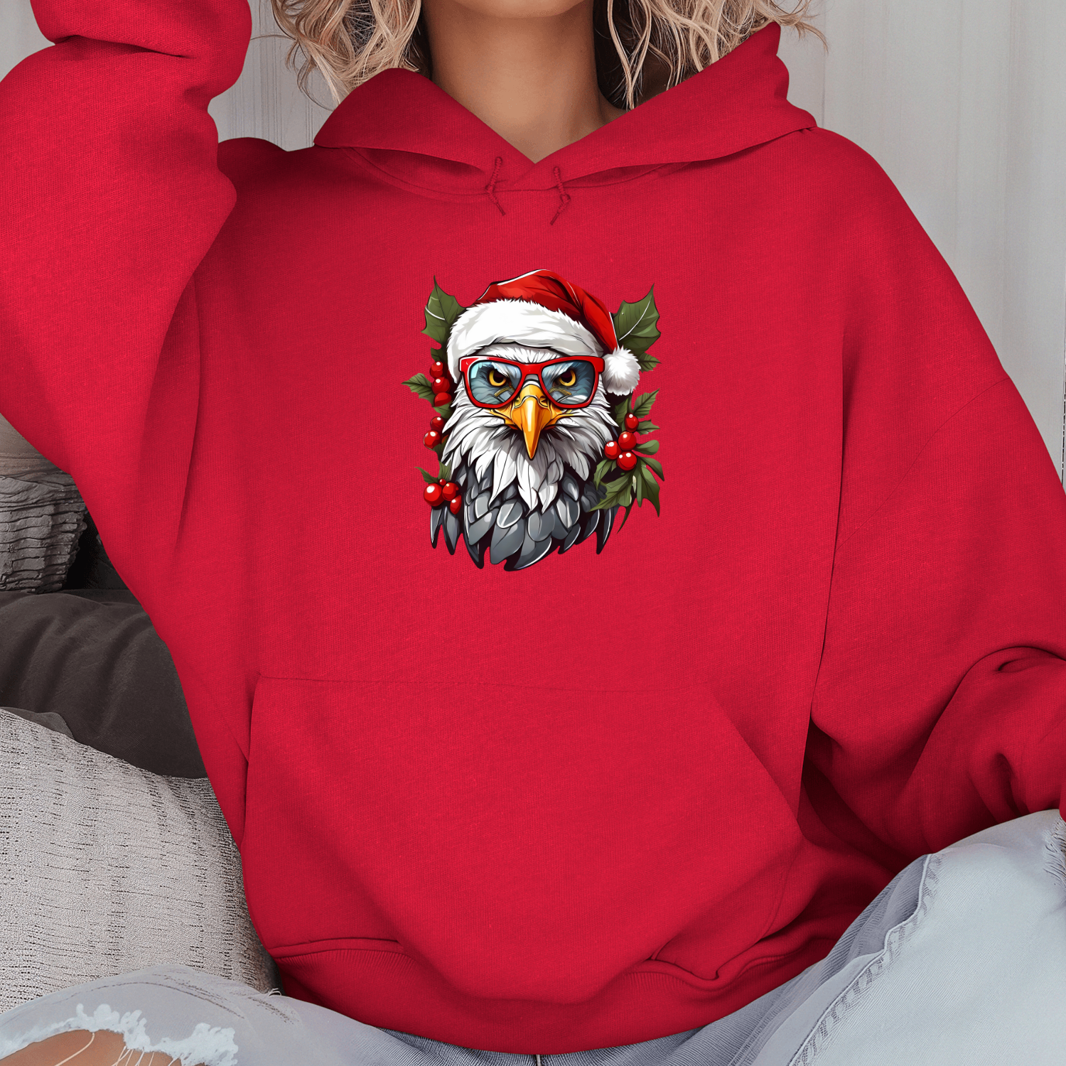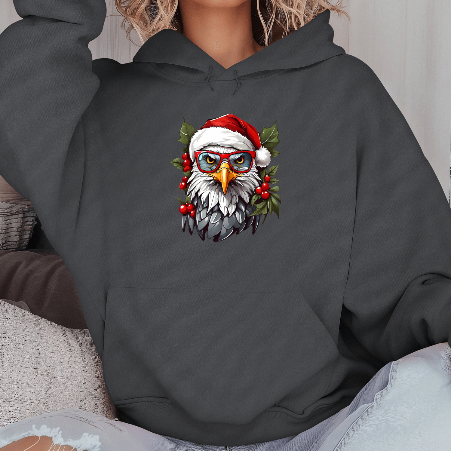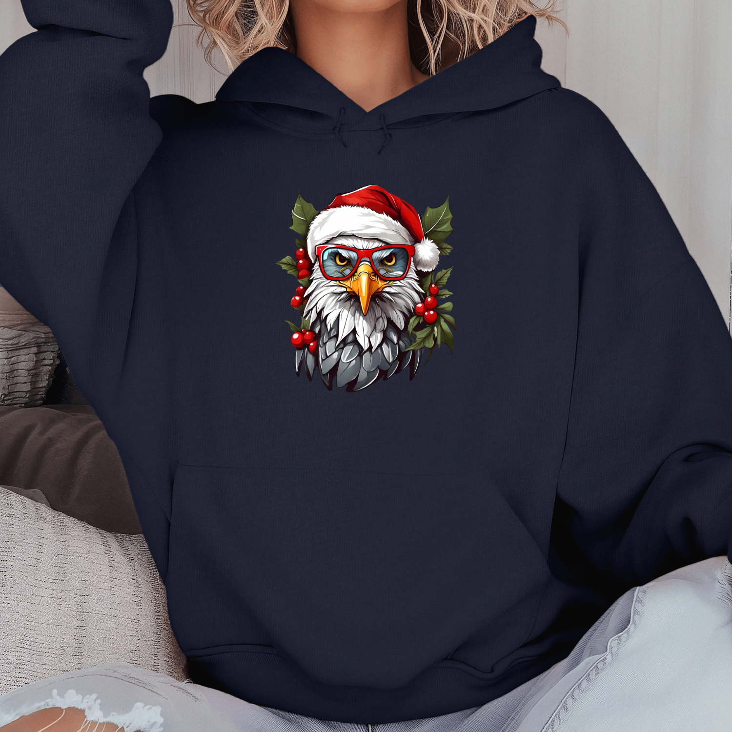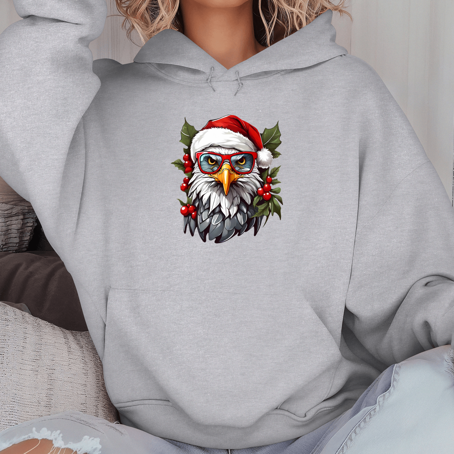 Unisex džemperis su spauda „Kalėdų erelis“