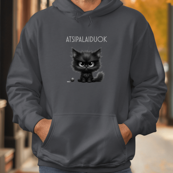 Unisex džemperis su spauda „Nepatenkintas kačiukas“