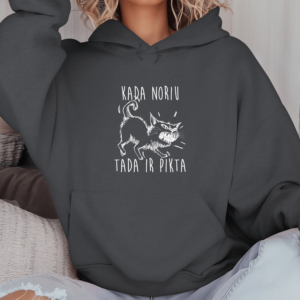 Unisex džemperis su spauda „Piktas katinėlis“