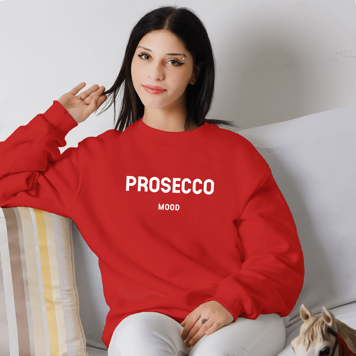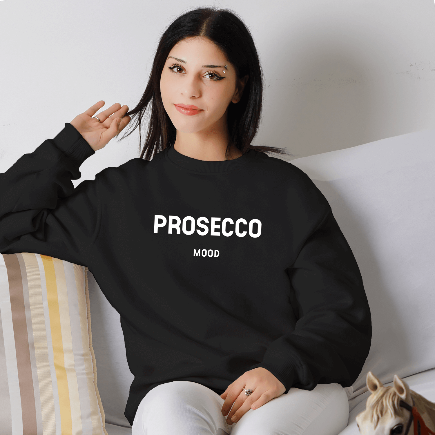 Unisex džemperis su spauda „Prosecco Mood“ be kapišono