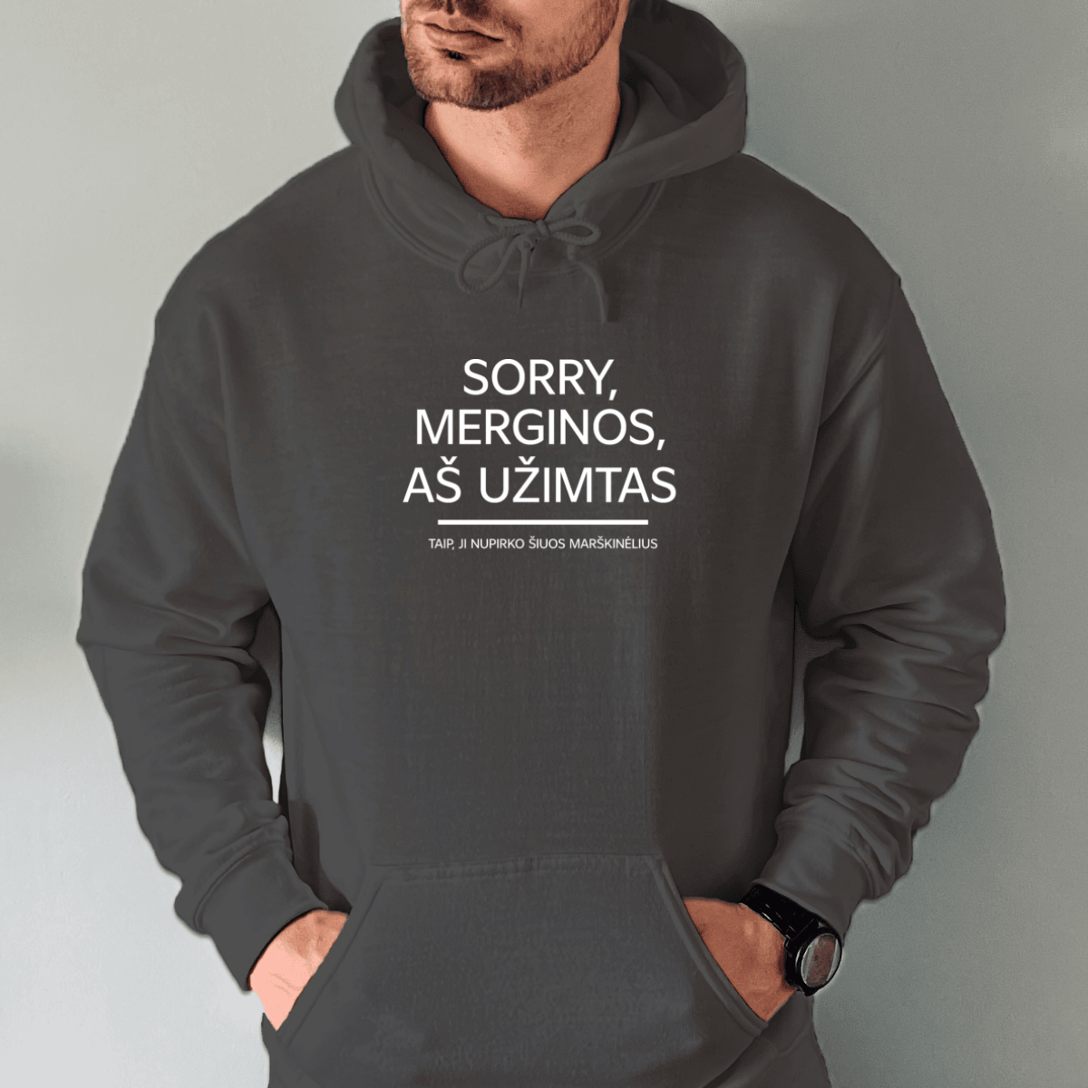 • tamsiai-pilka-unisex-dzemperis-su-spauda-sorry-merginos-as-uzimtas
