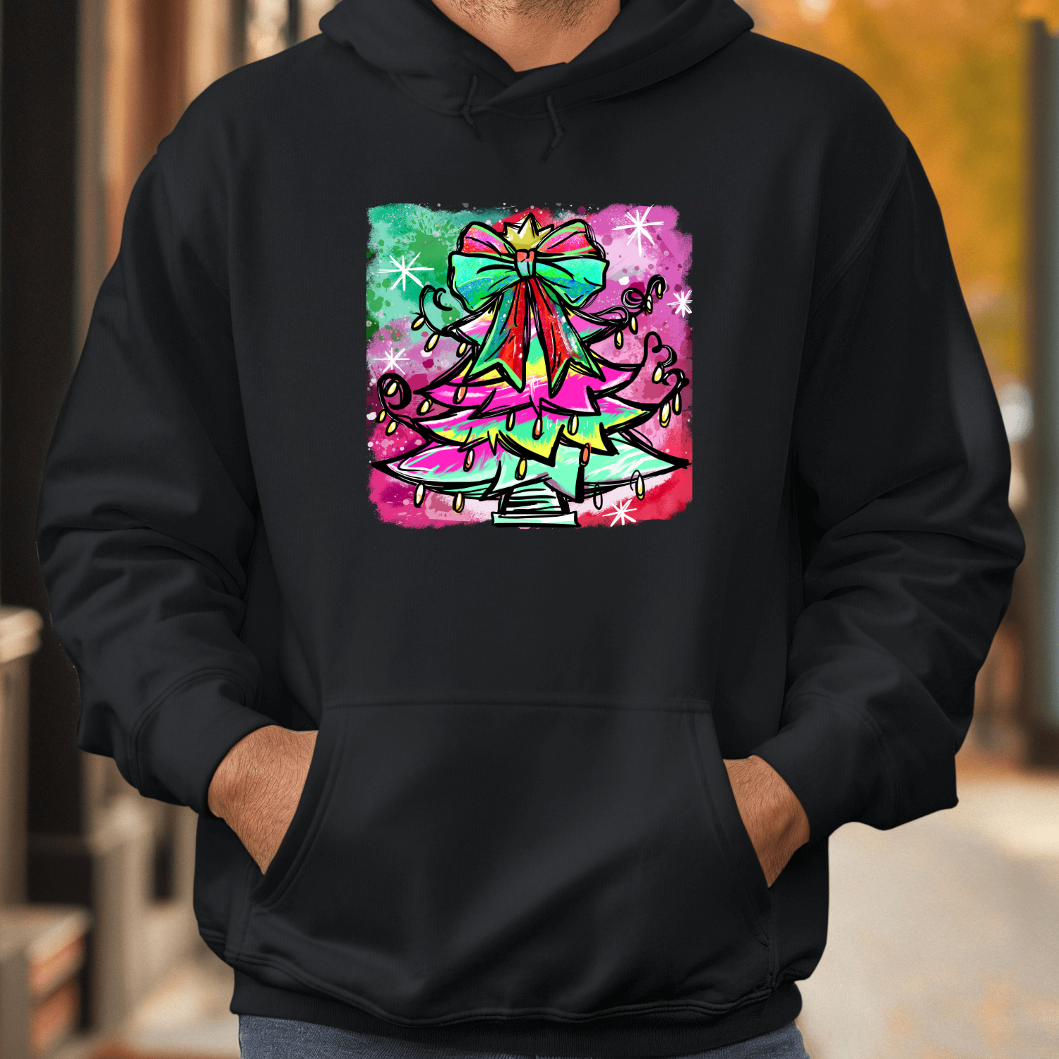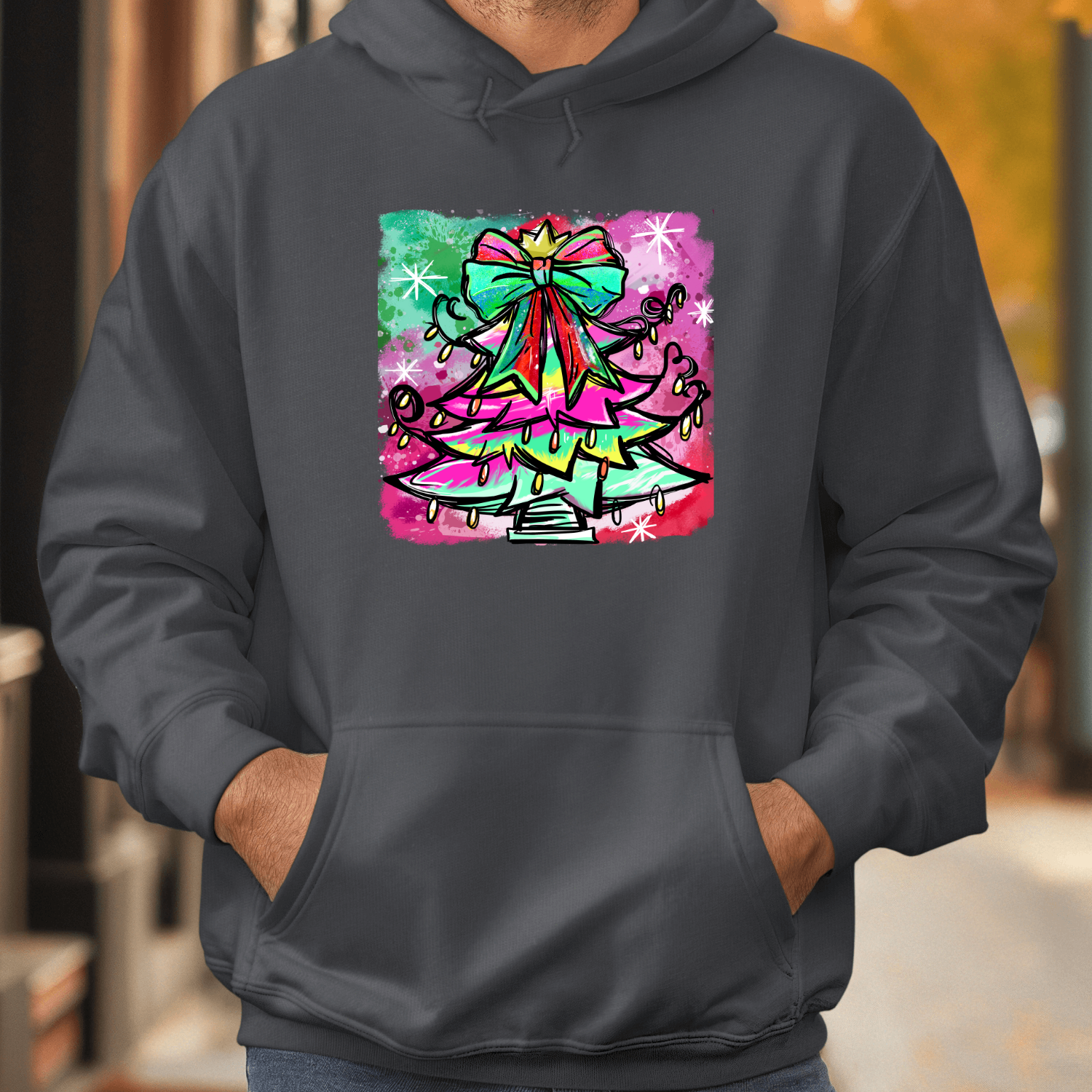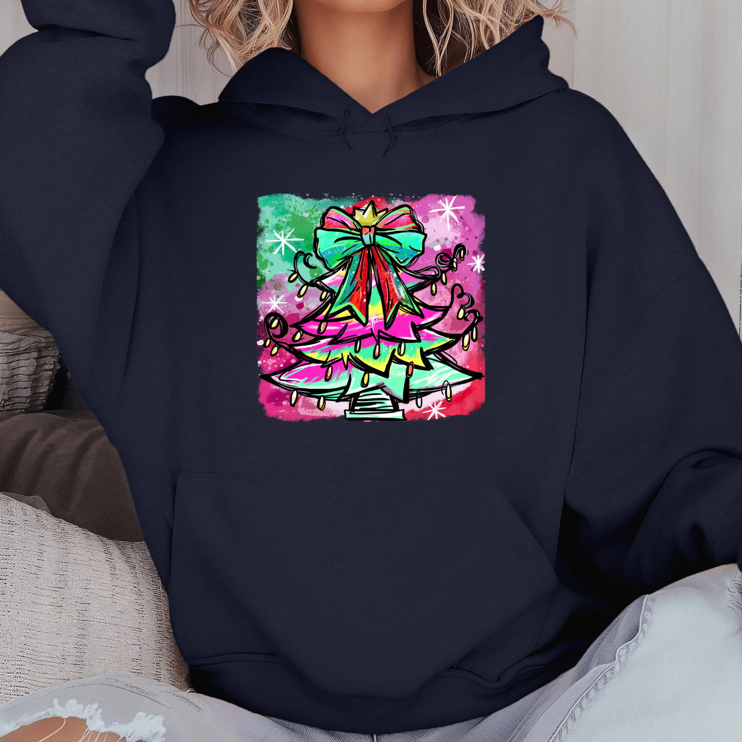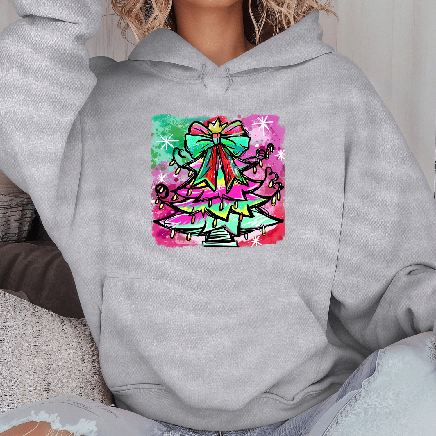 Unisex džemperis su spauda „Spalvinga Kalėdų eglutė“