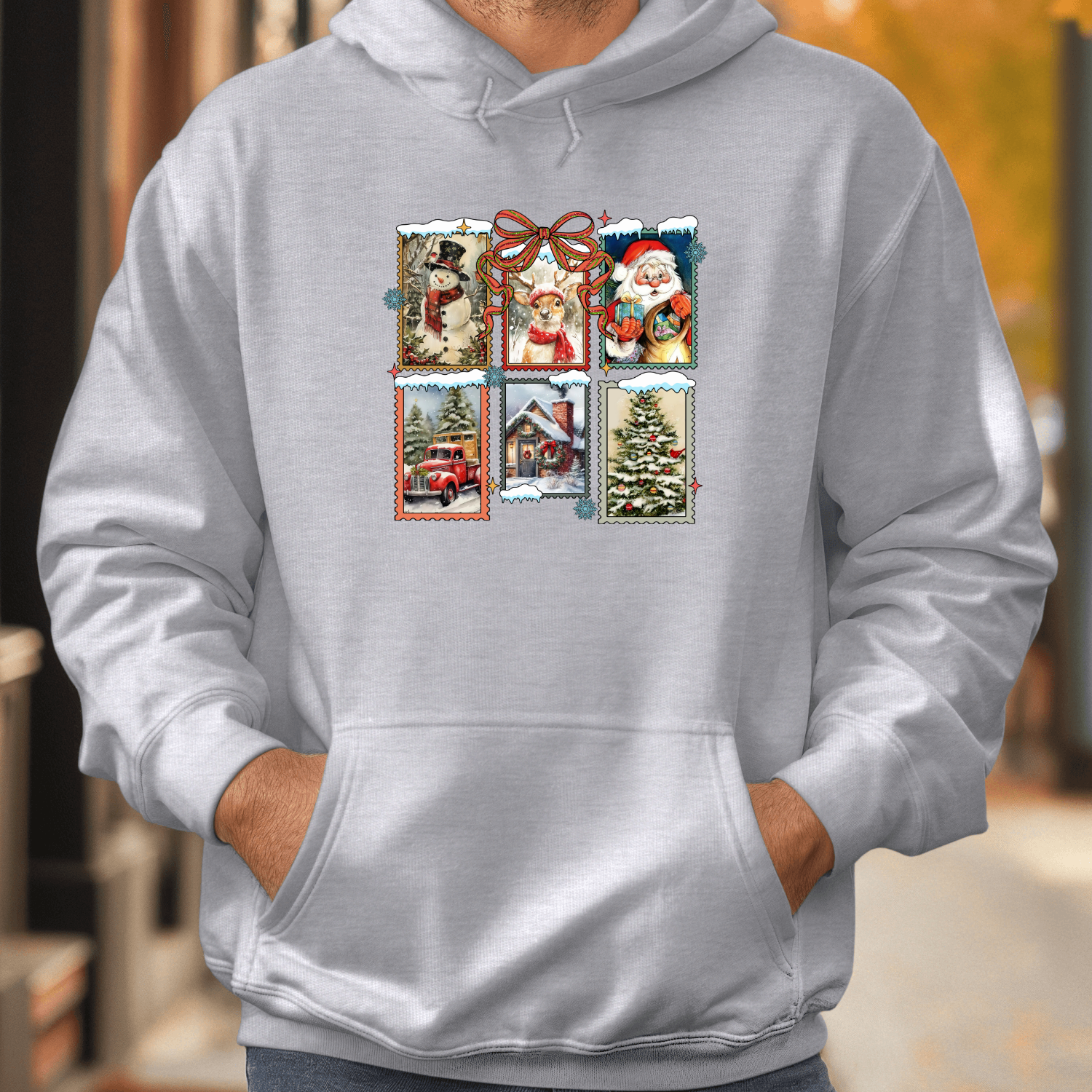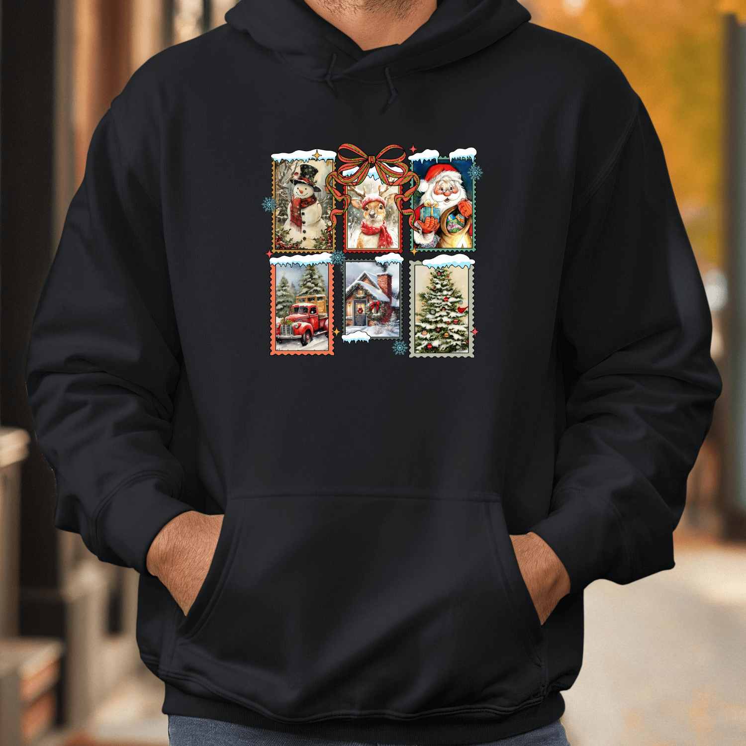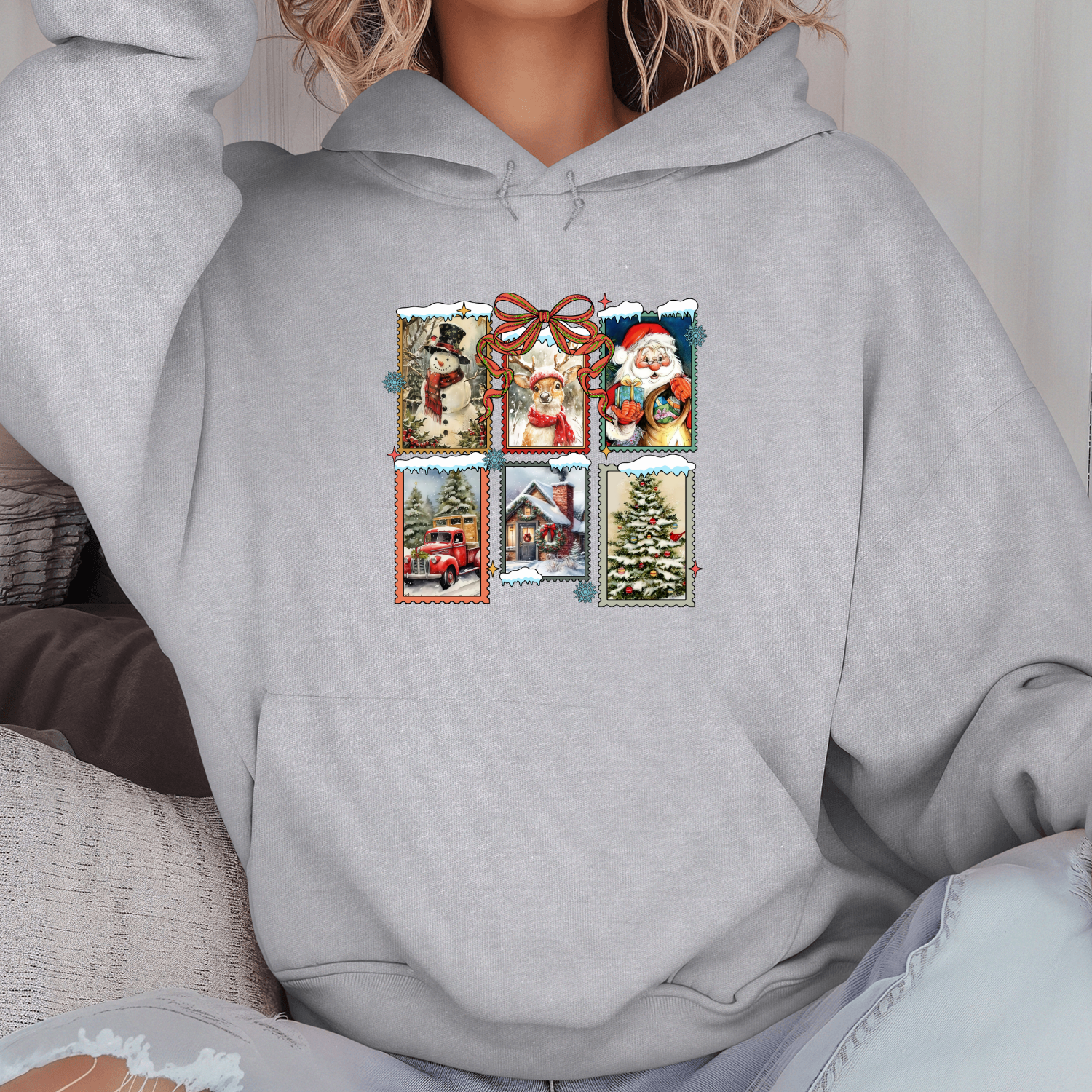 Unisex džemperis su spauda „Šventiniai pašto ženklai“