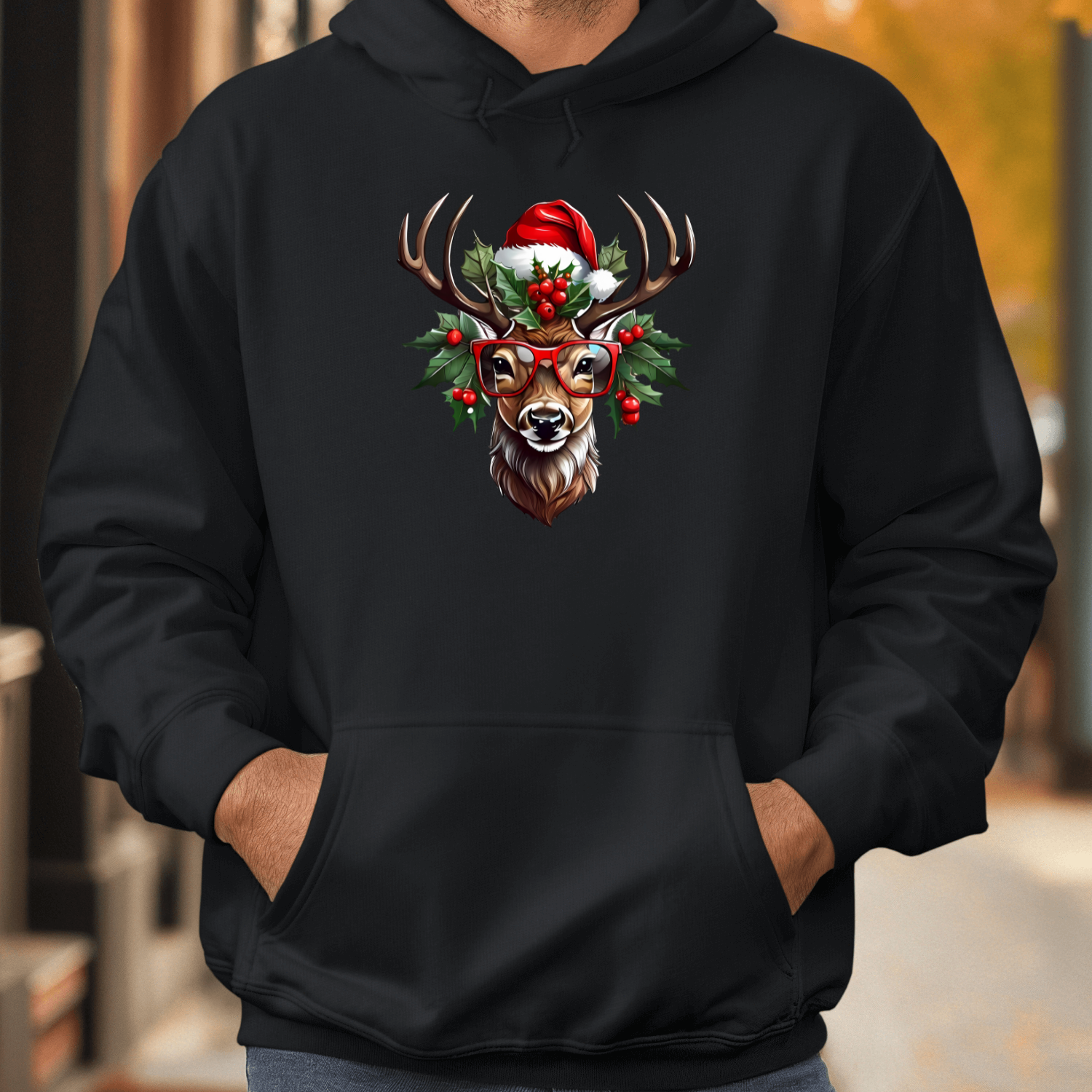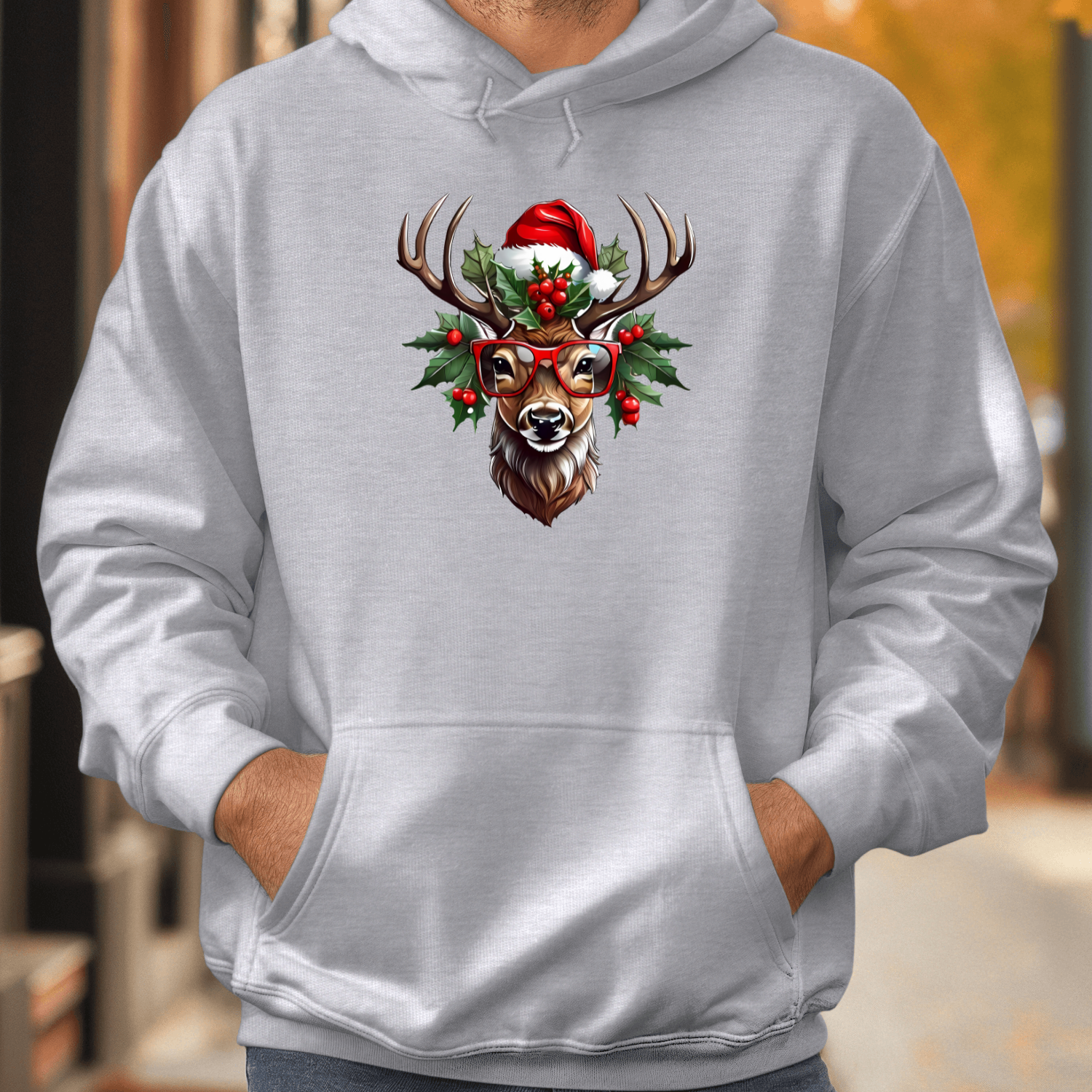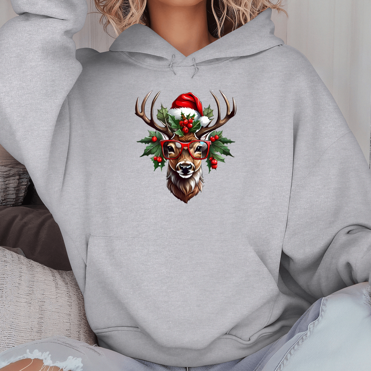Unisex džemperis su spauda „Šventinis elnias“