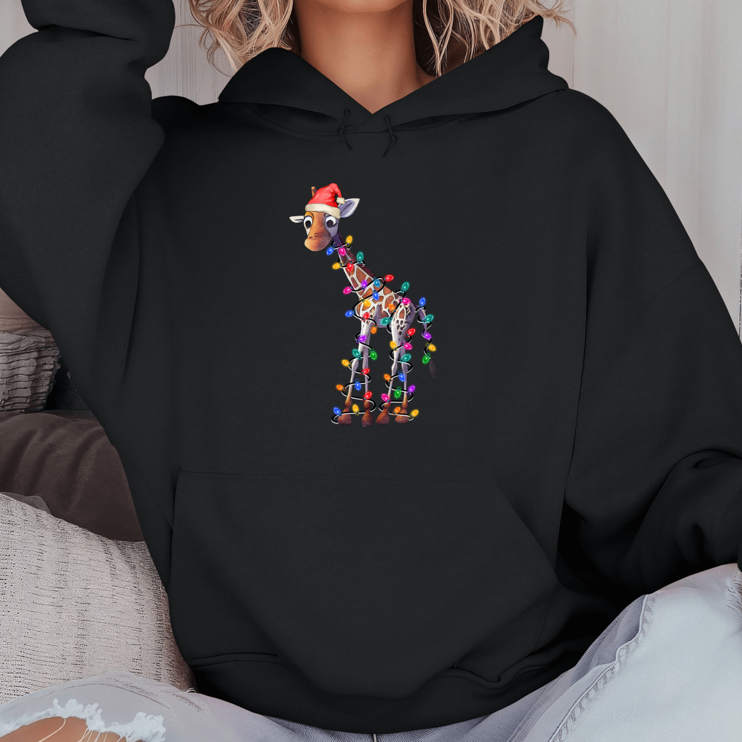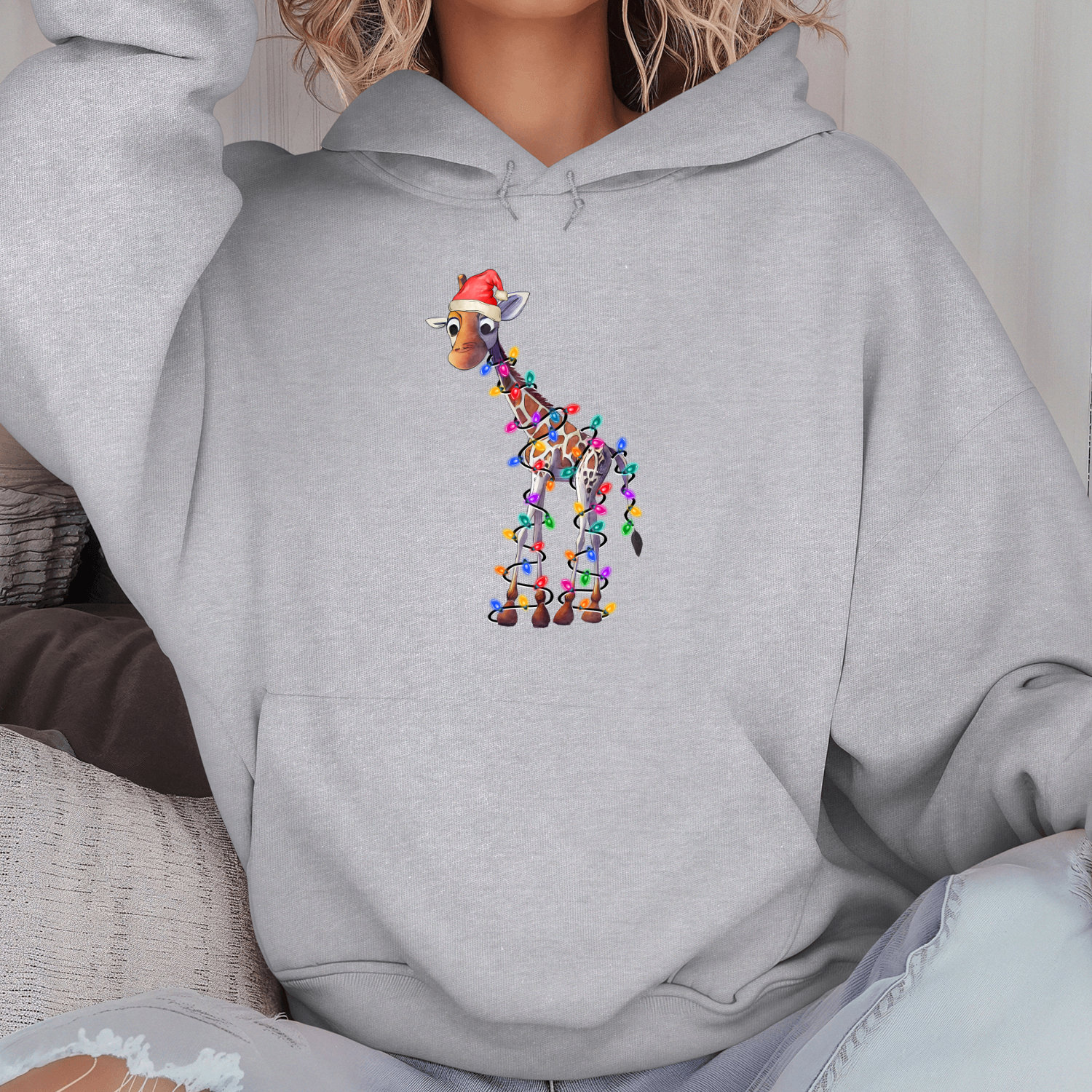 Unisex džemperis su spauda „Žirafa laukia Kalėdų“