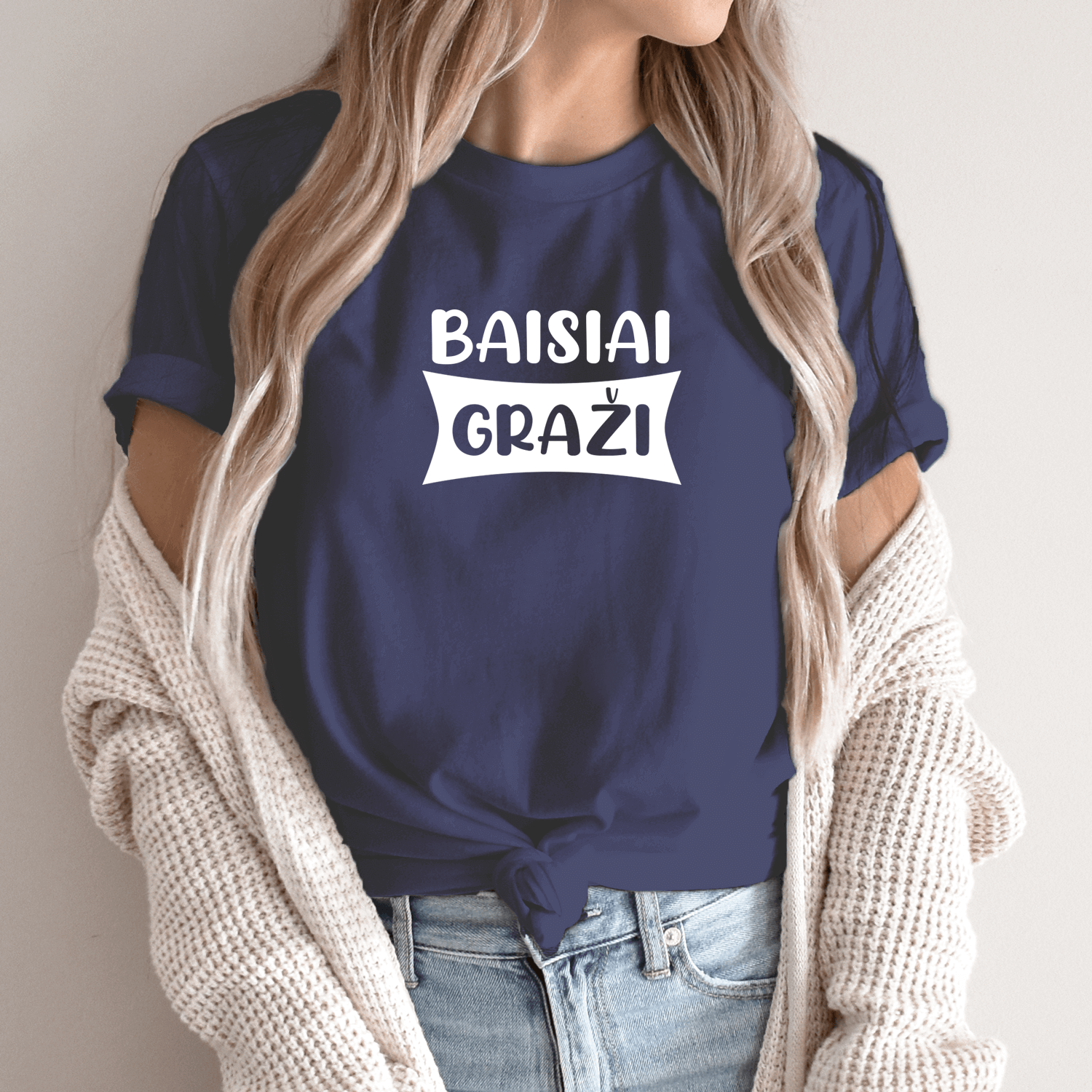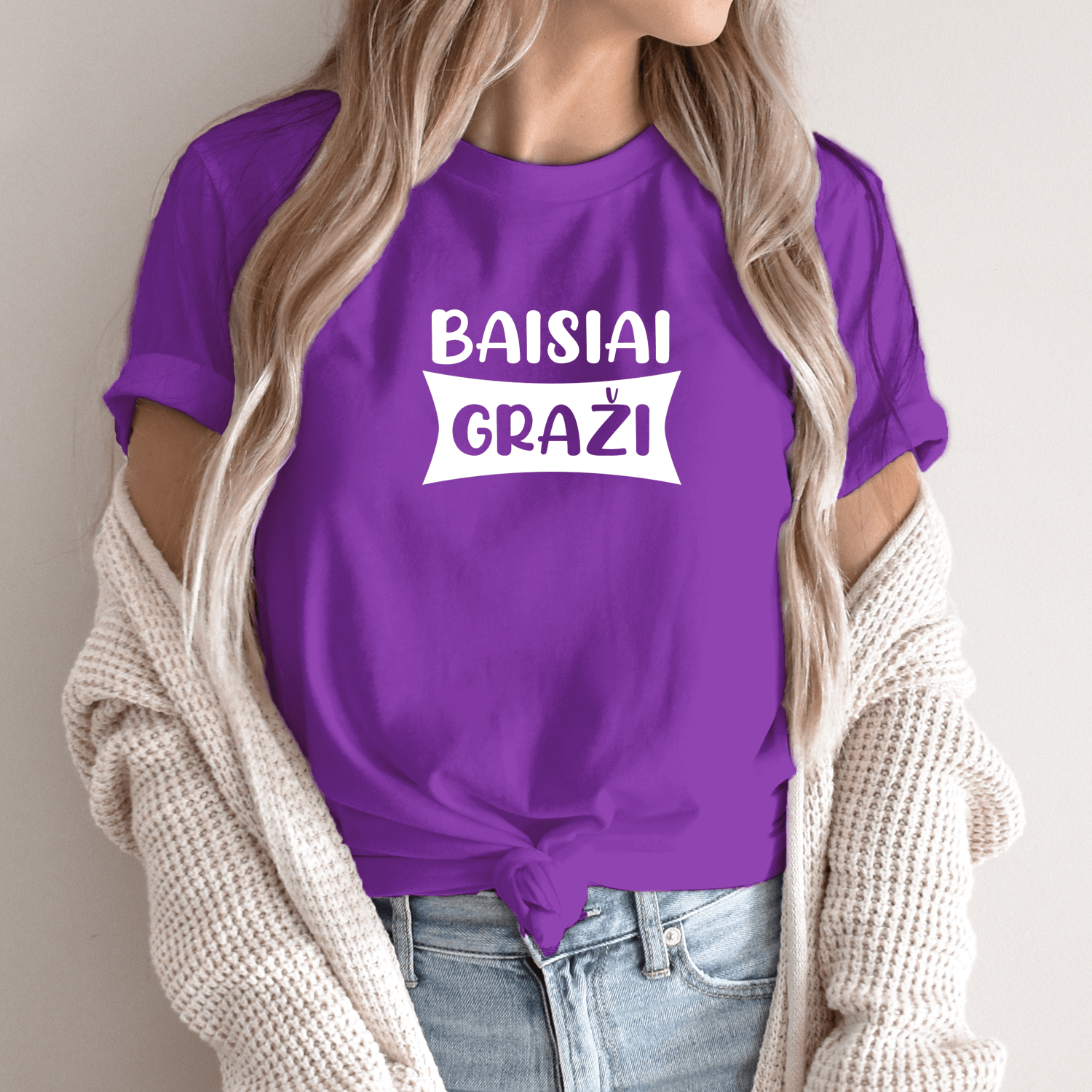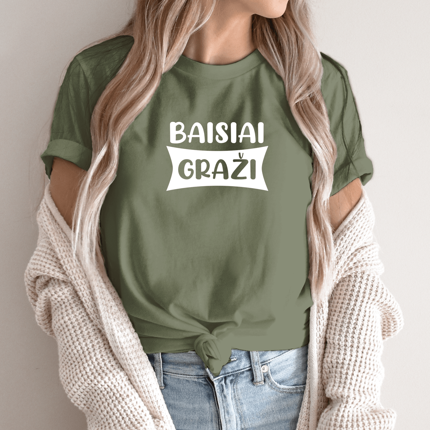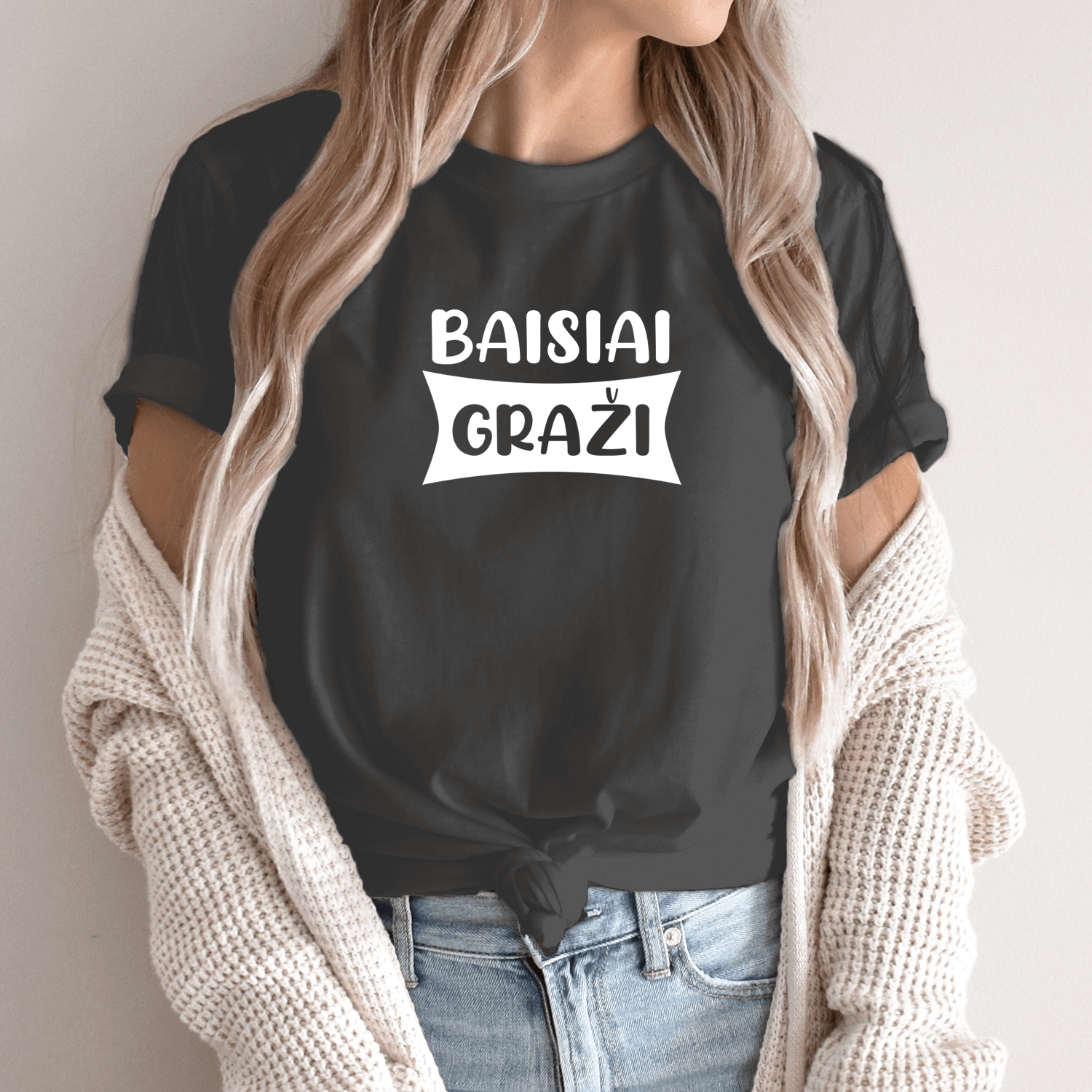 Unisex marškinėliai su spauda „Baisiai graži“