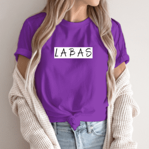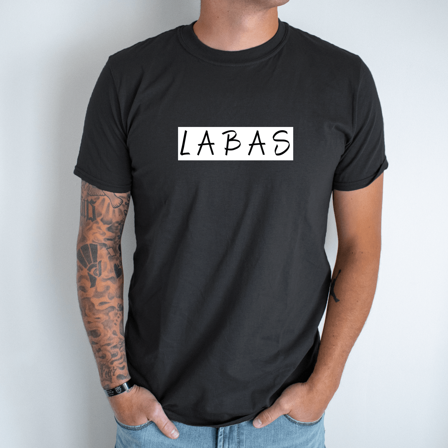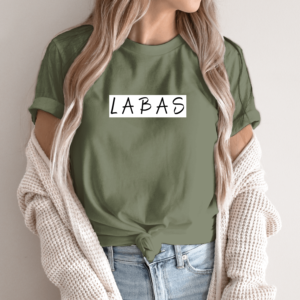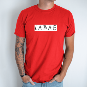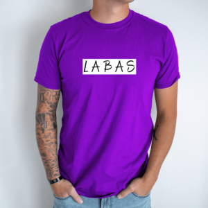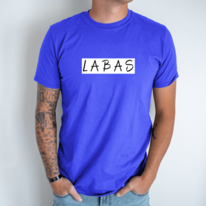 Unisex marškinėliai su spauda „Baltai juodas užrašas LABAS“