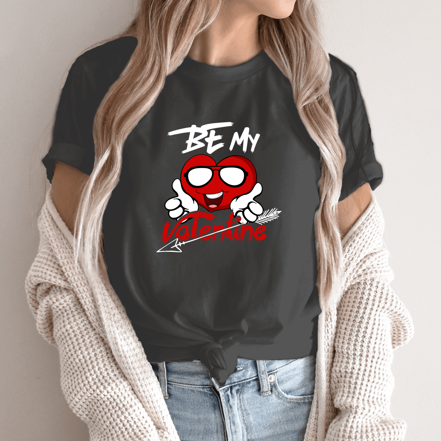 Unisex marškinėliai su spauda „Be my Valentine“