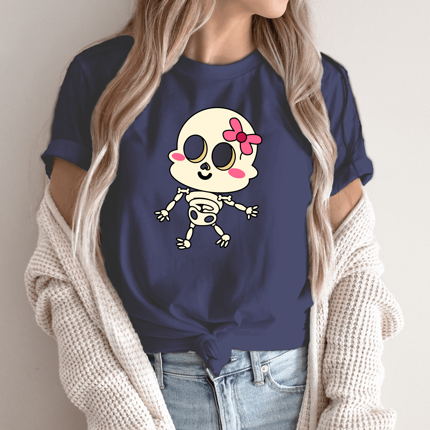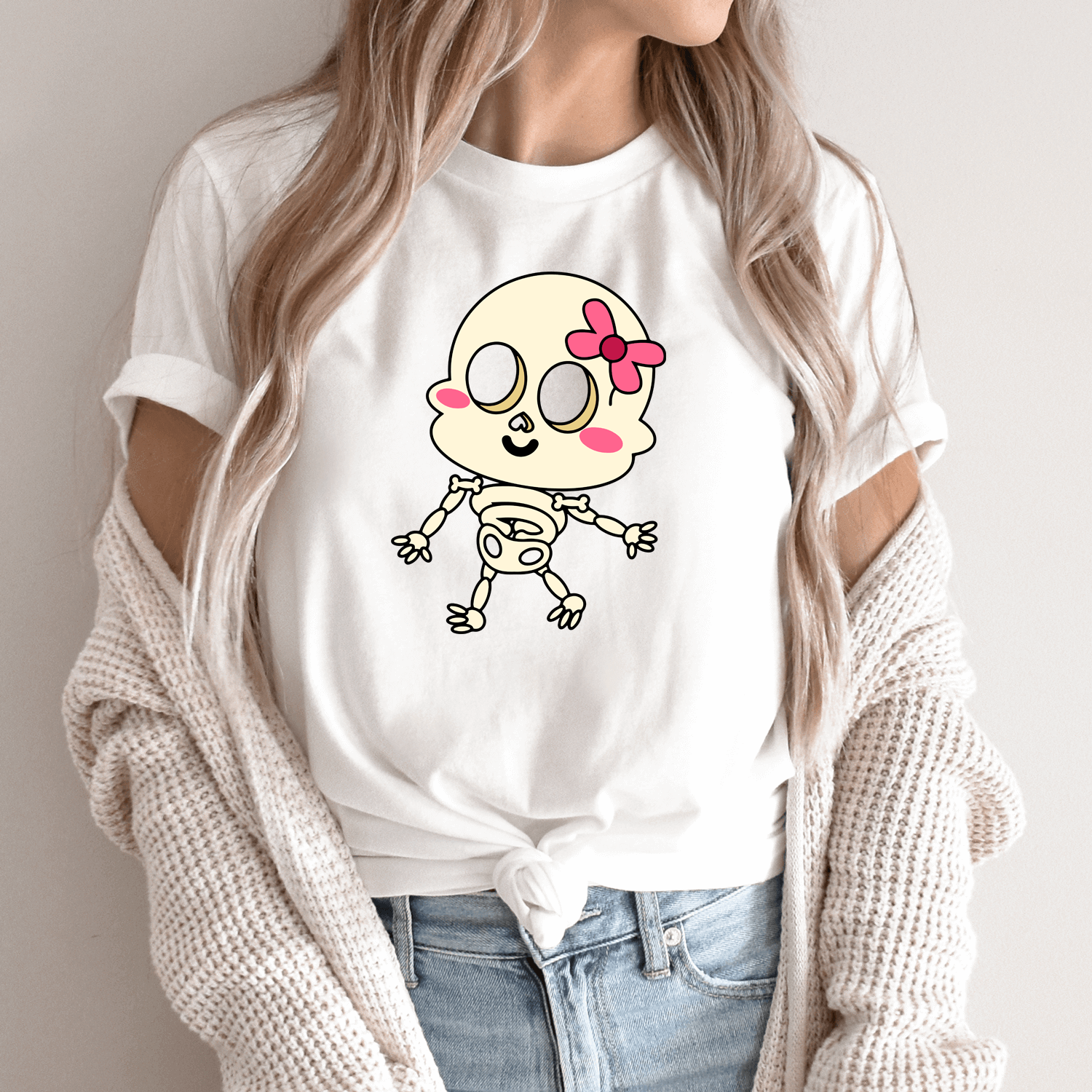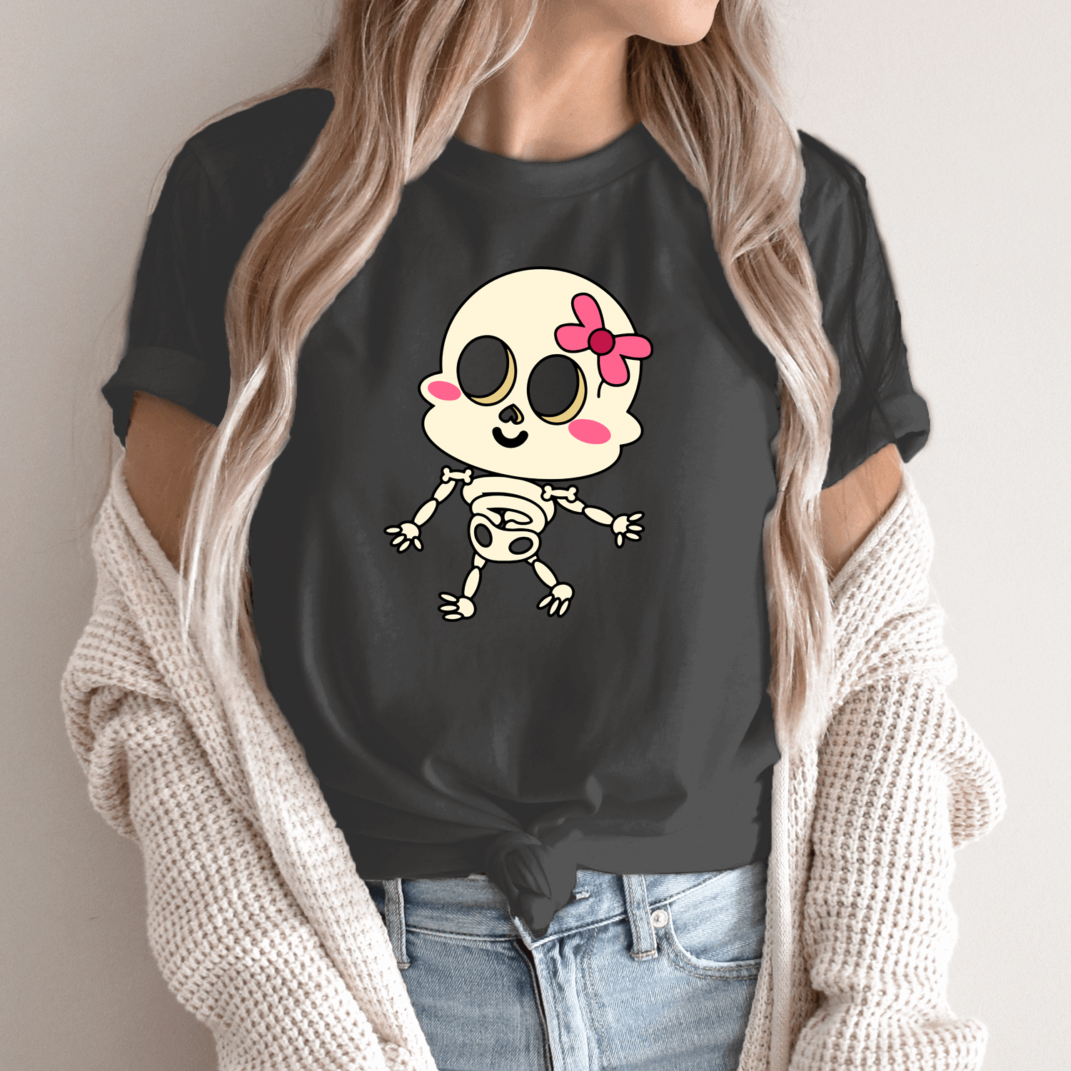 Unisex marškinėliai su spauda „Emo skeletas mergina“