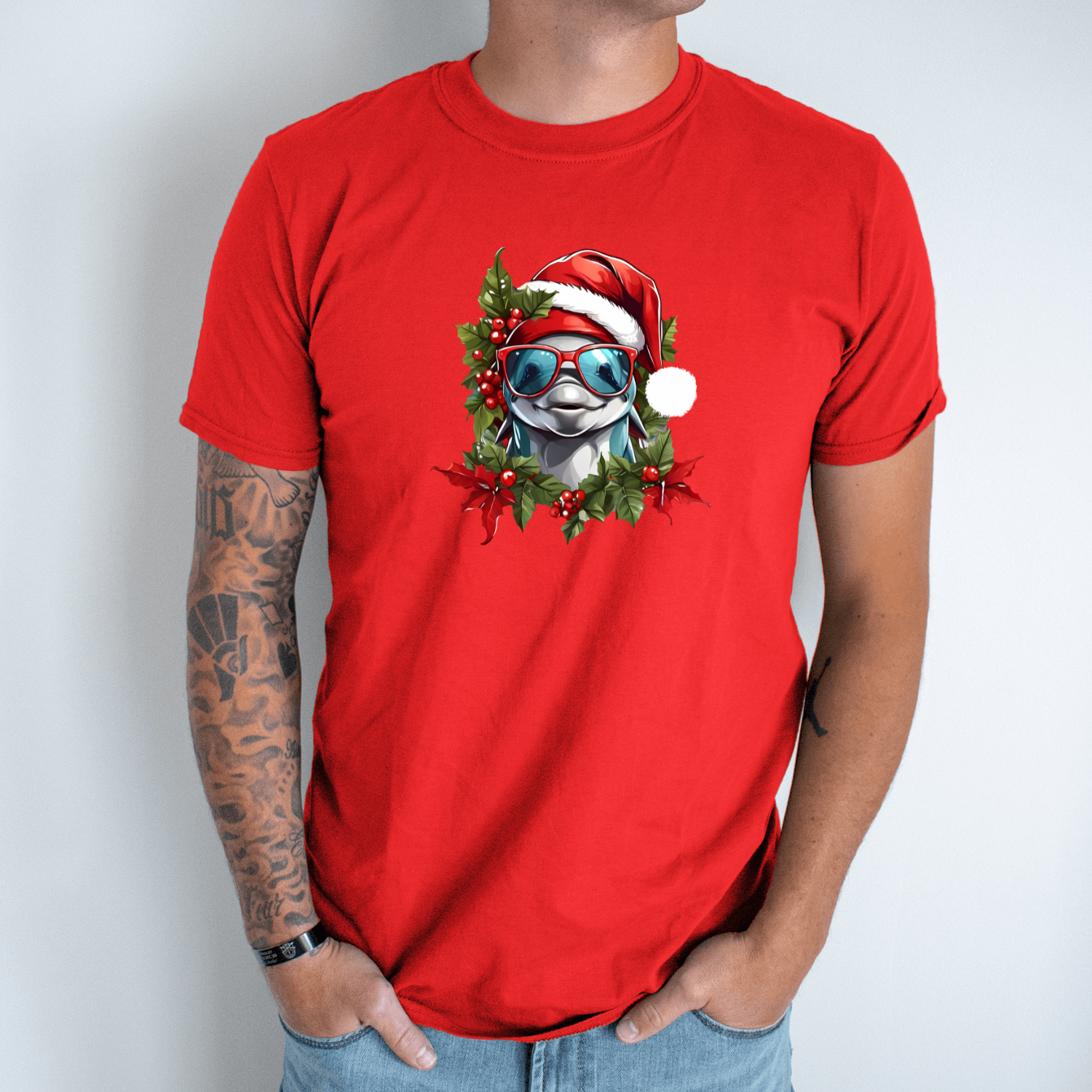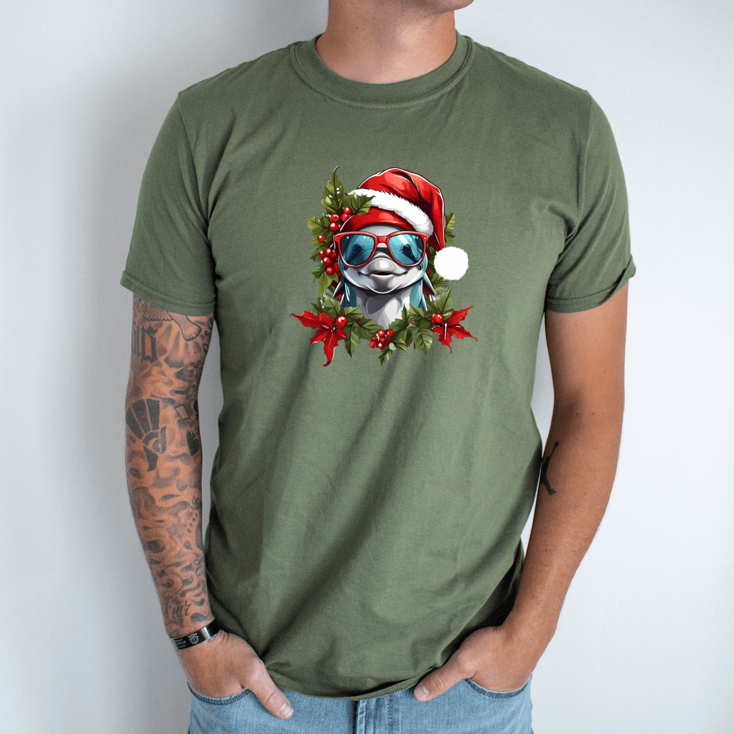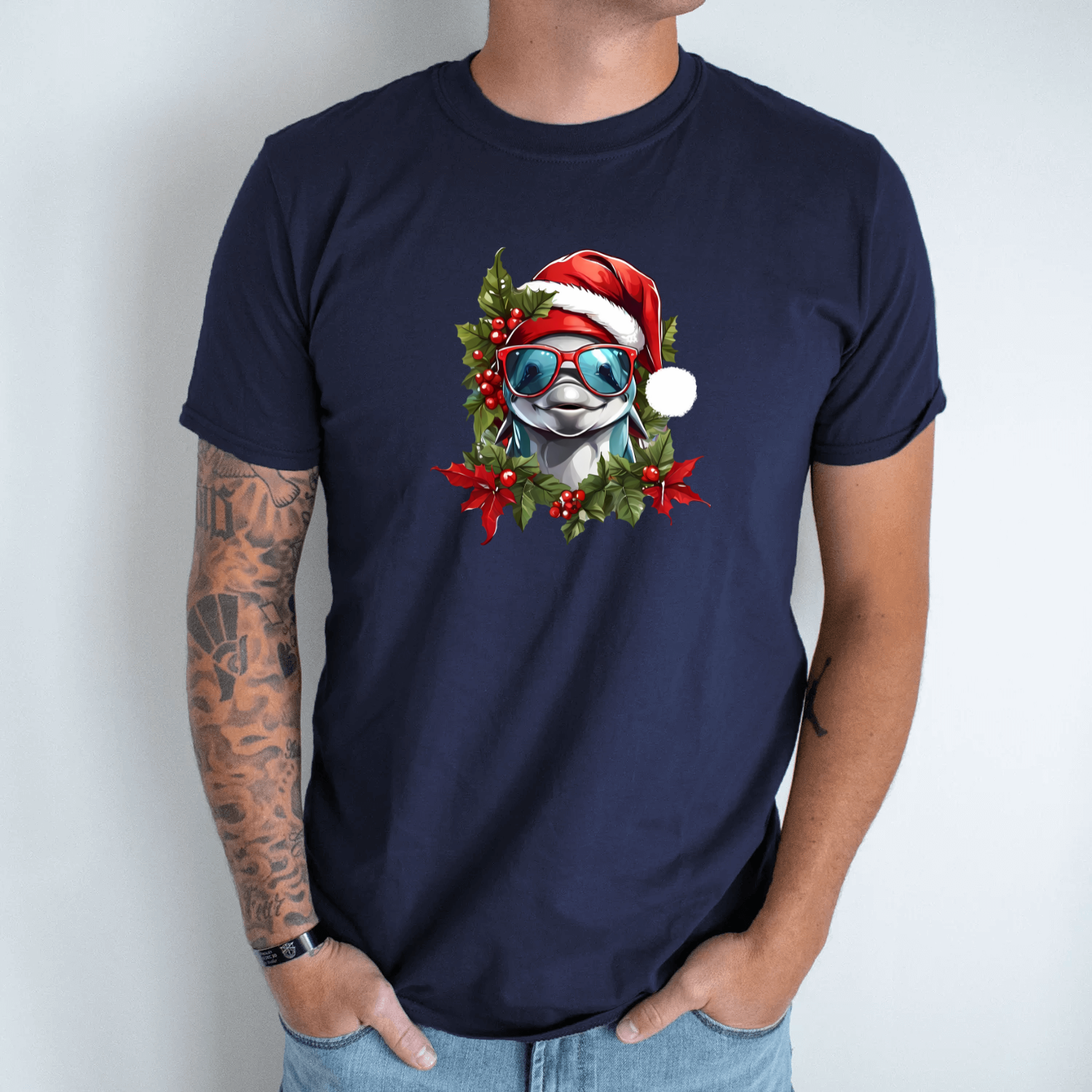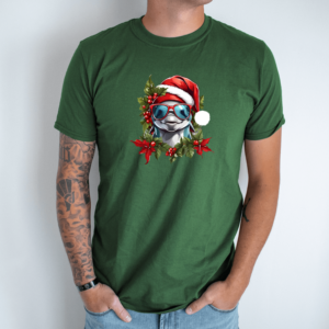 Unisex marškinėliai su spauda „Kalėdinis delfinas“