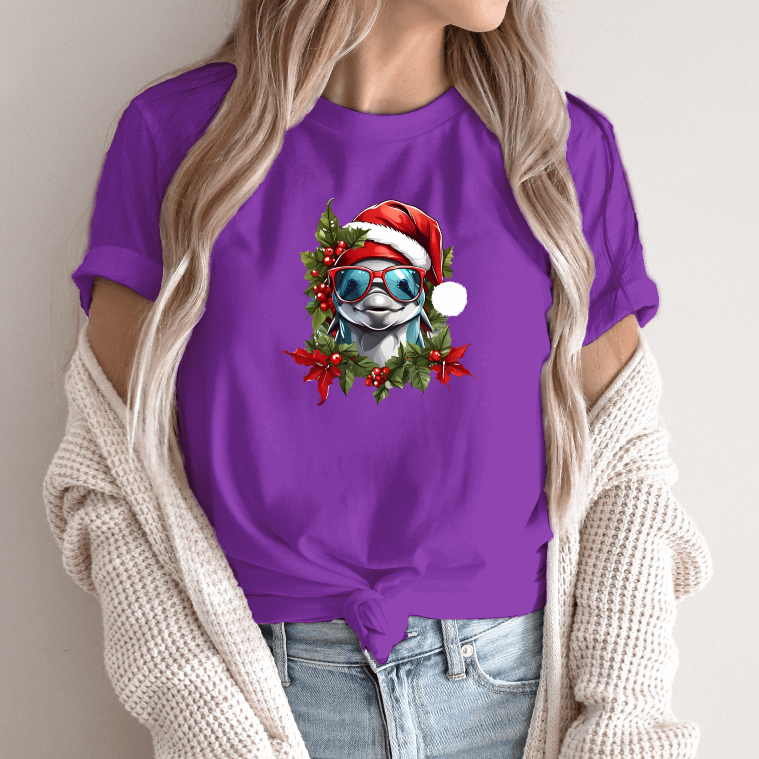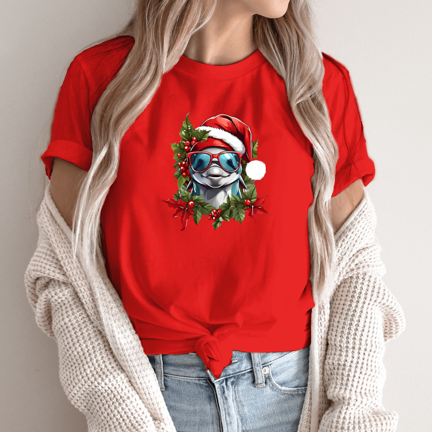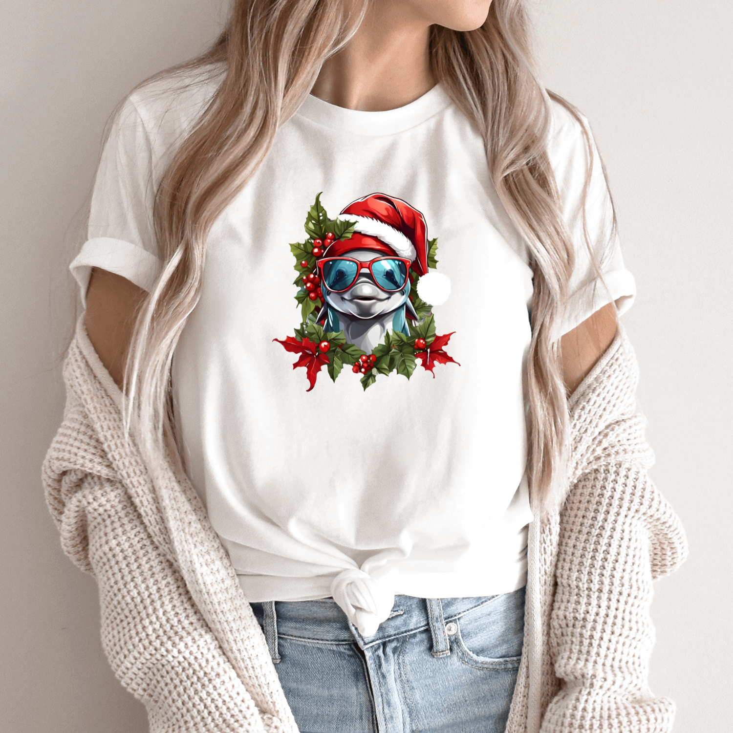 Unisex marškinėliai su spauda „Kalėdinis delfinas“