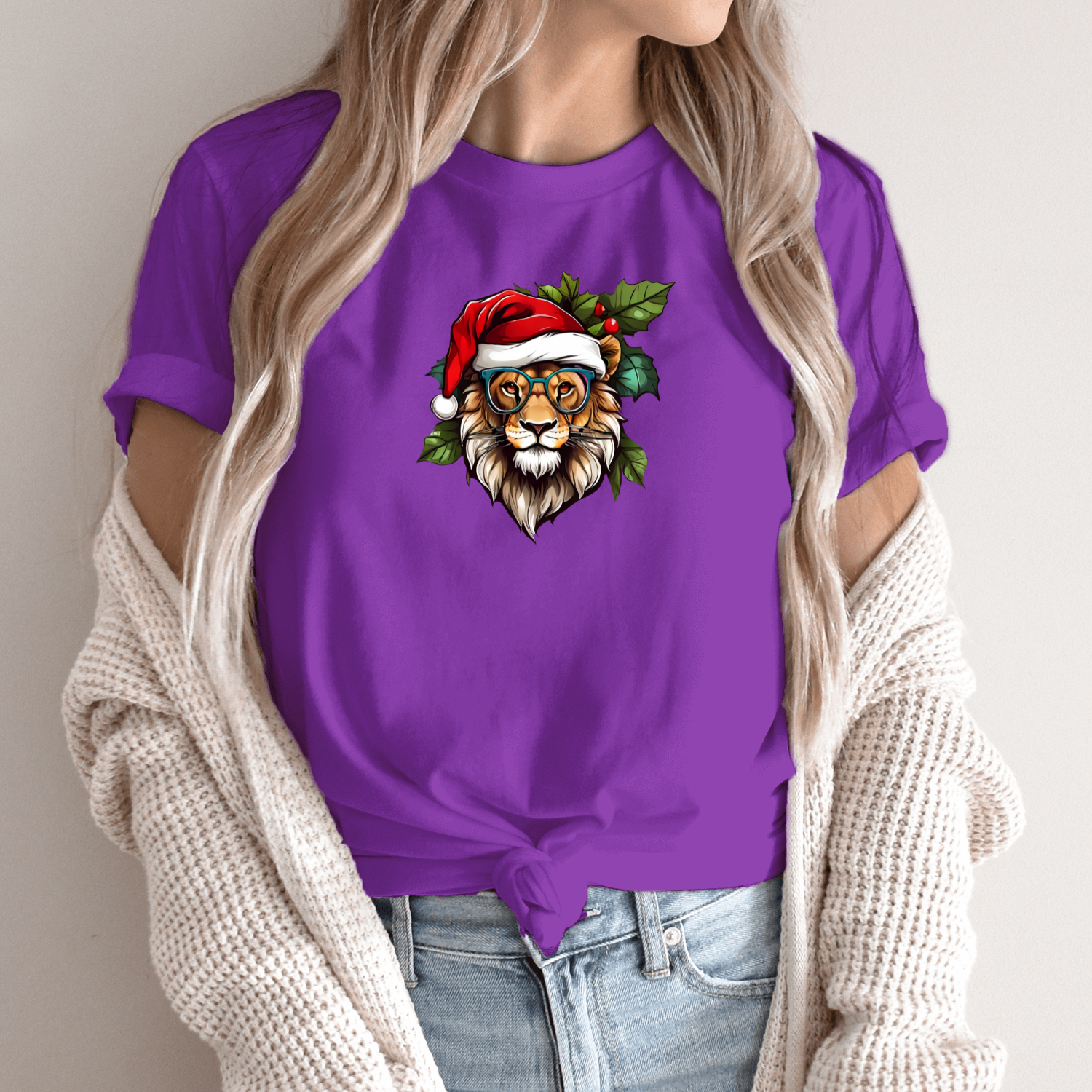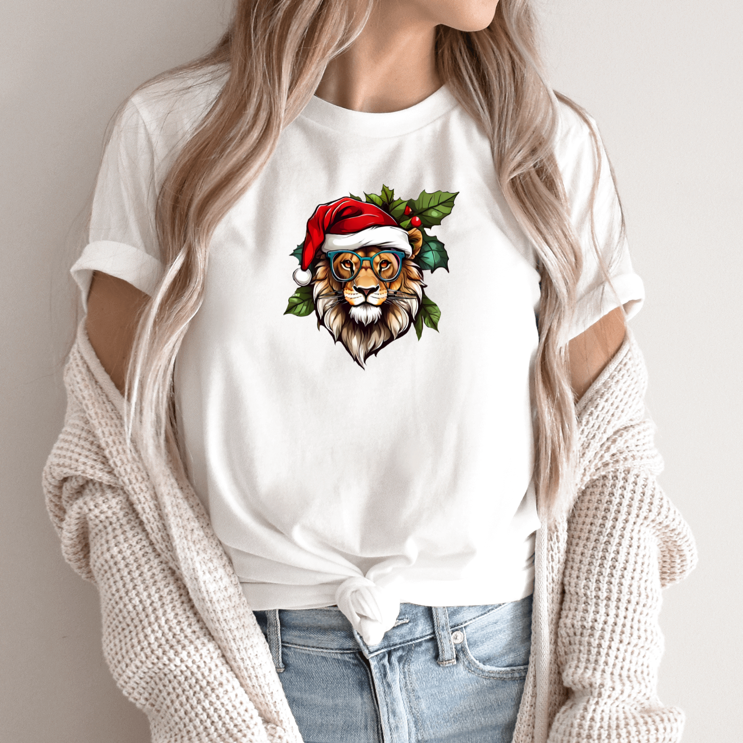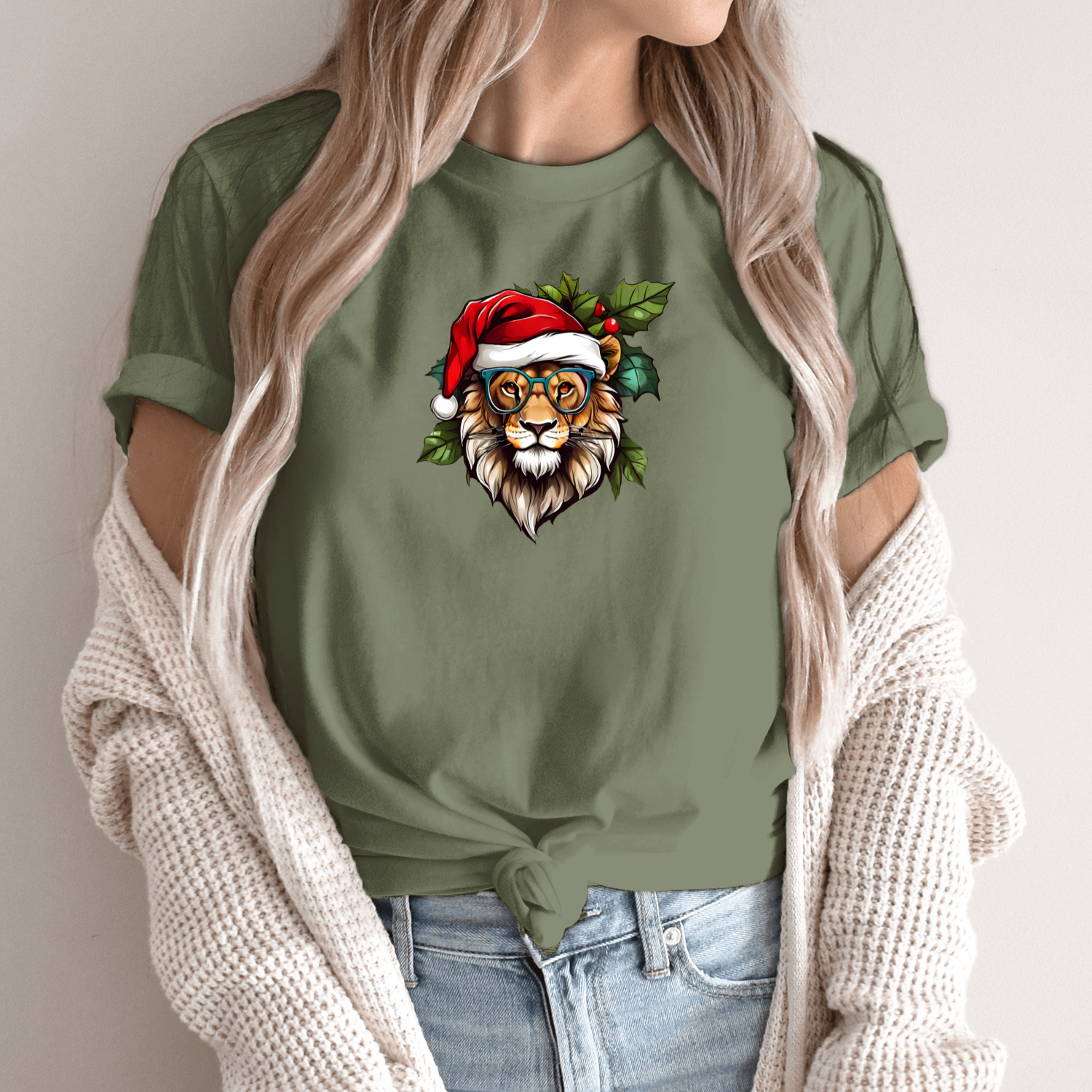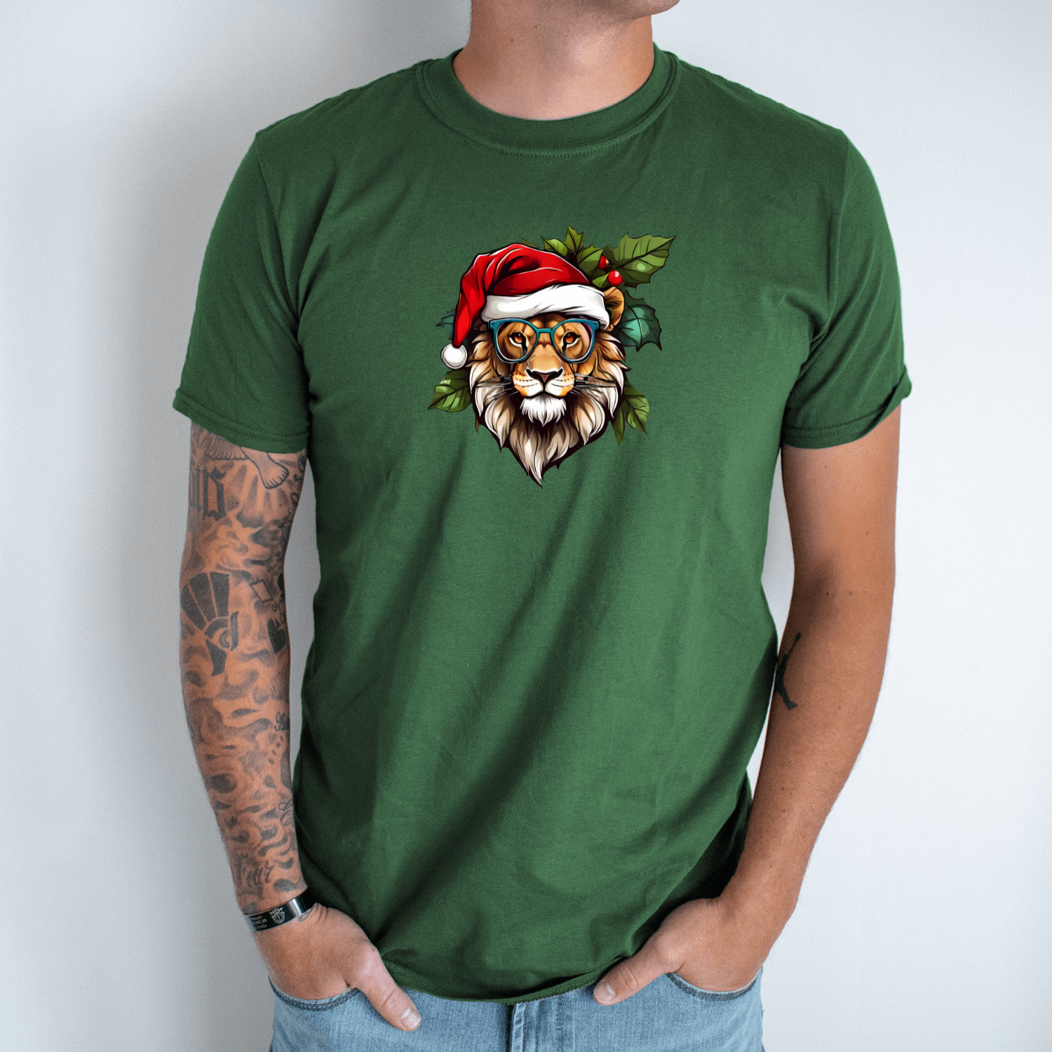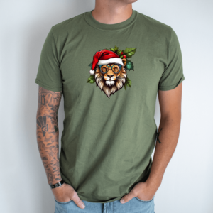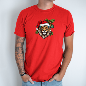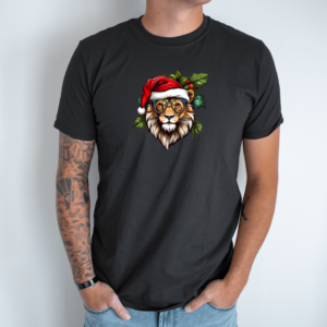 Unisex marškinėliai su spauda „Kalėdinis liūtas“