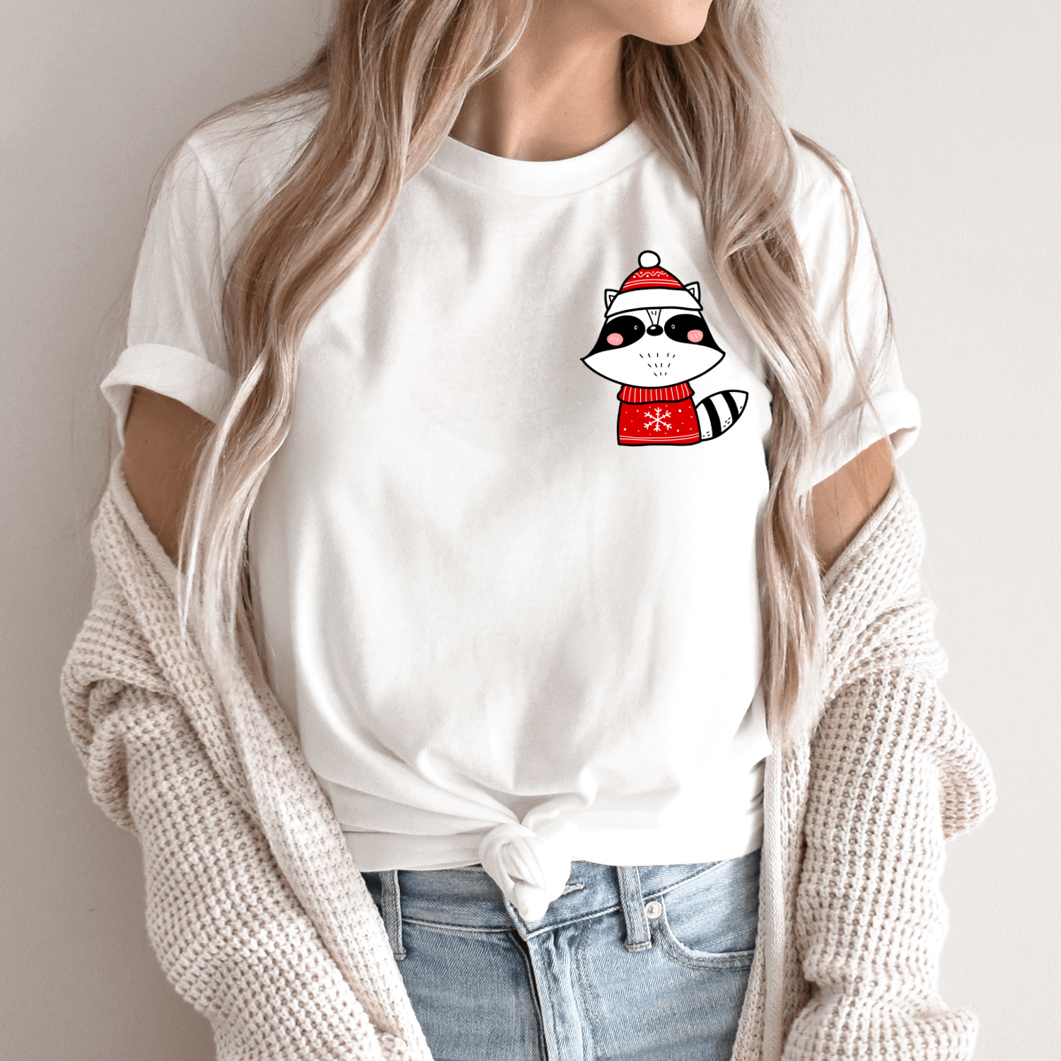 Unisex marškinėliai su spauda „Kalėdinis rakunėlis“