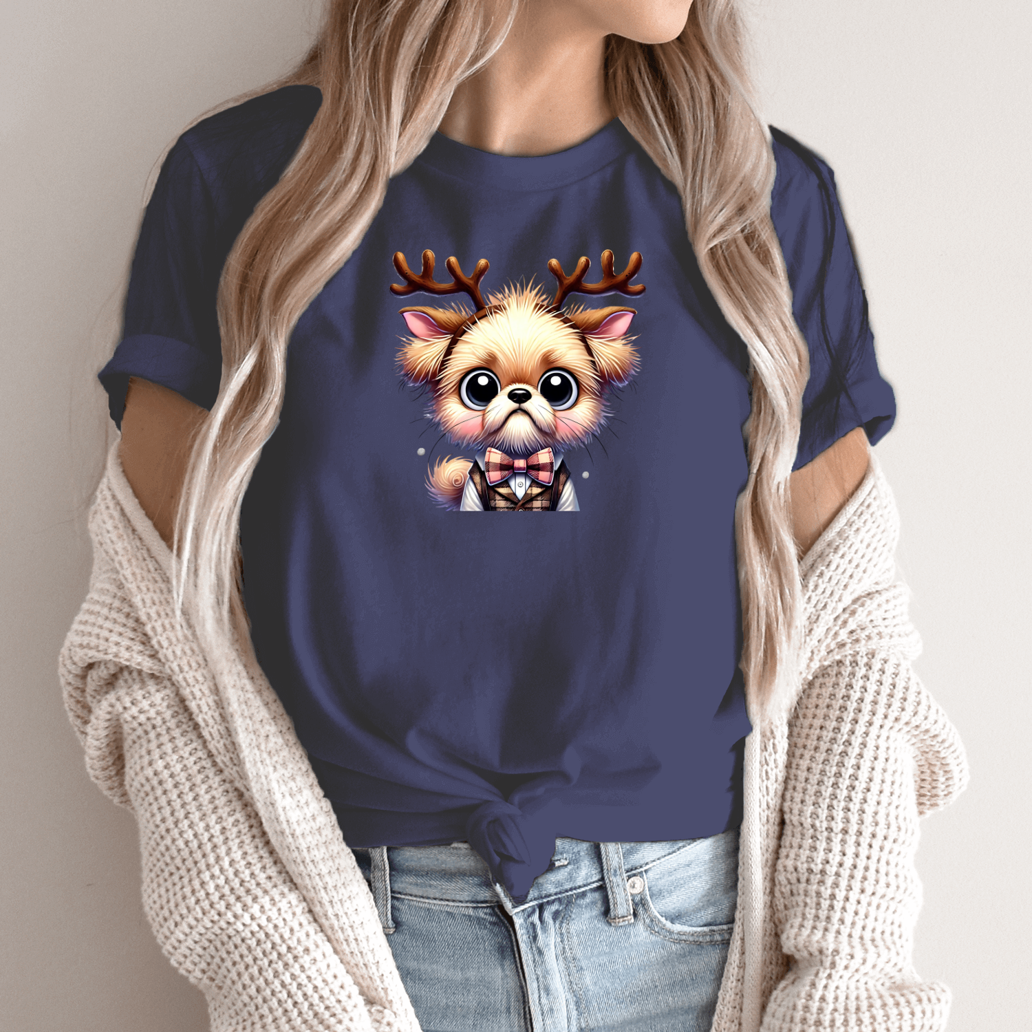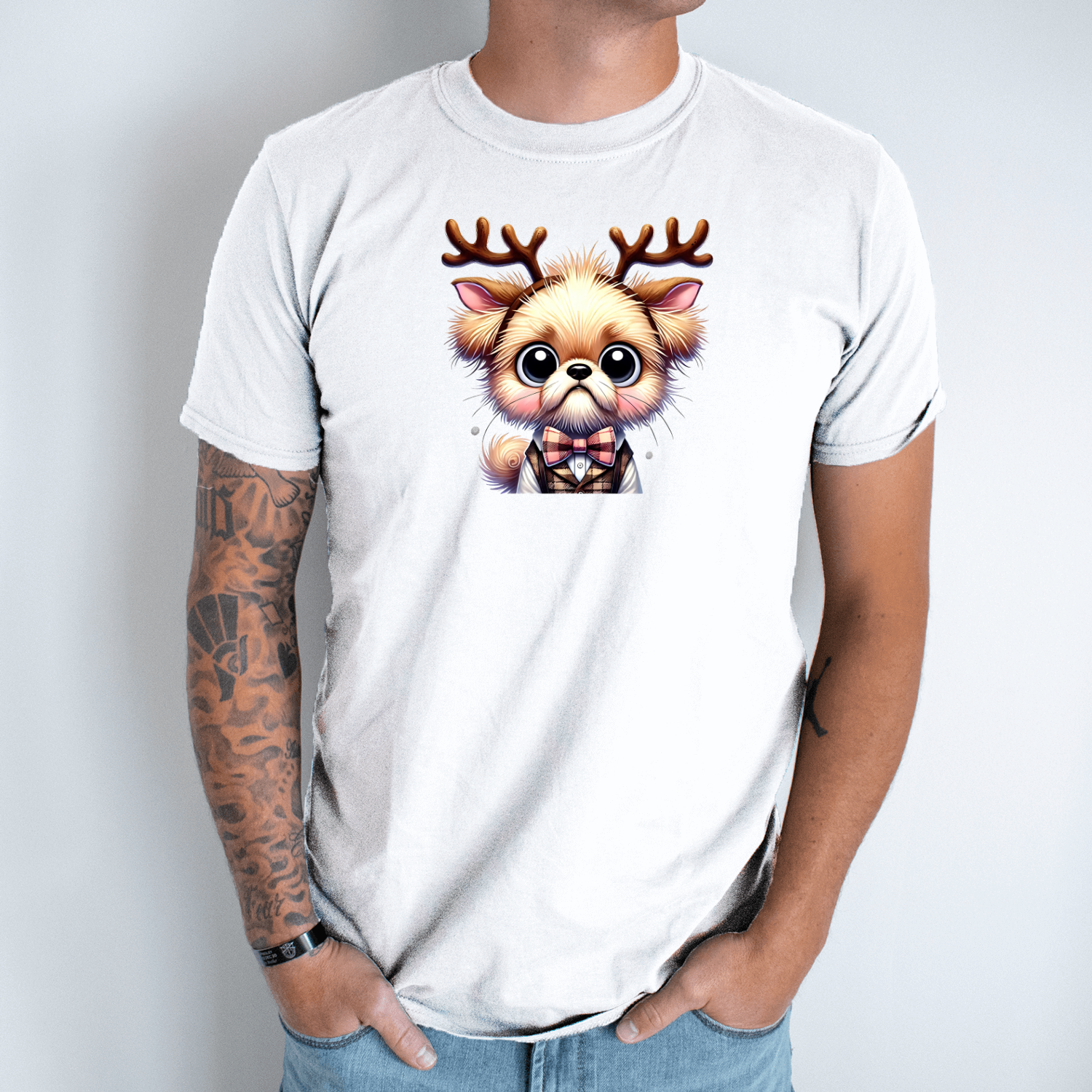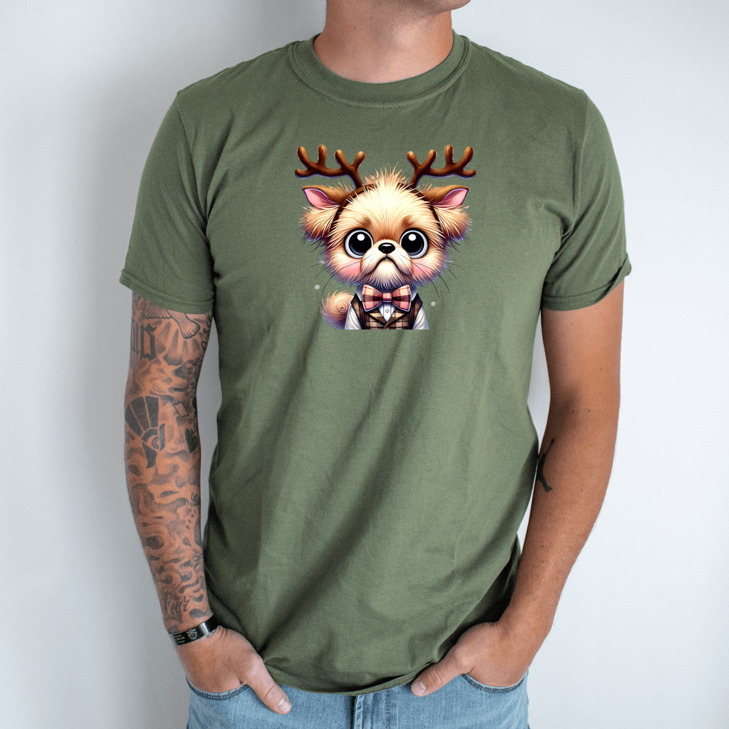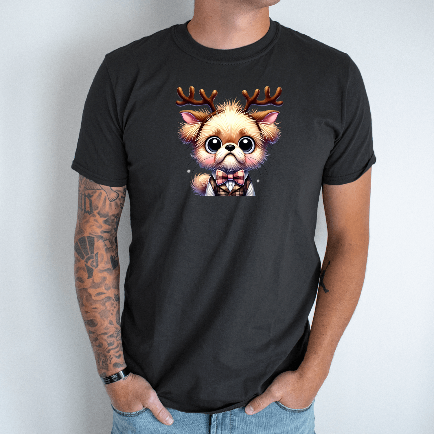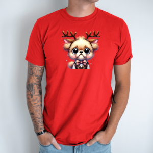 Unisex marškinėliai su spauda „Kalėdoms pasiruošęs šuniukas“