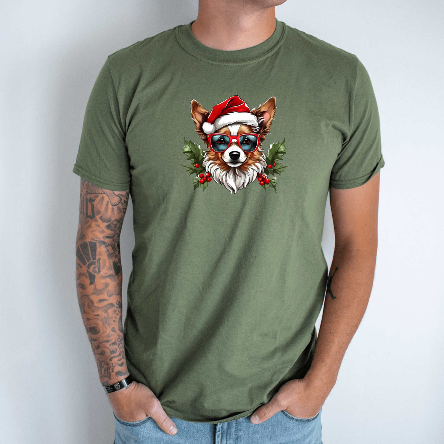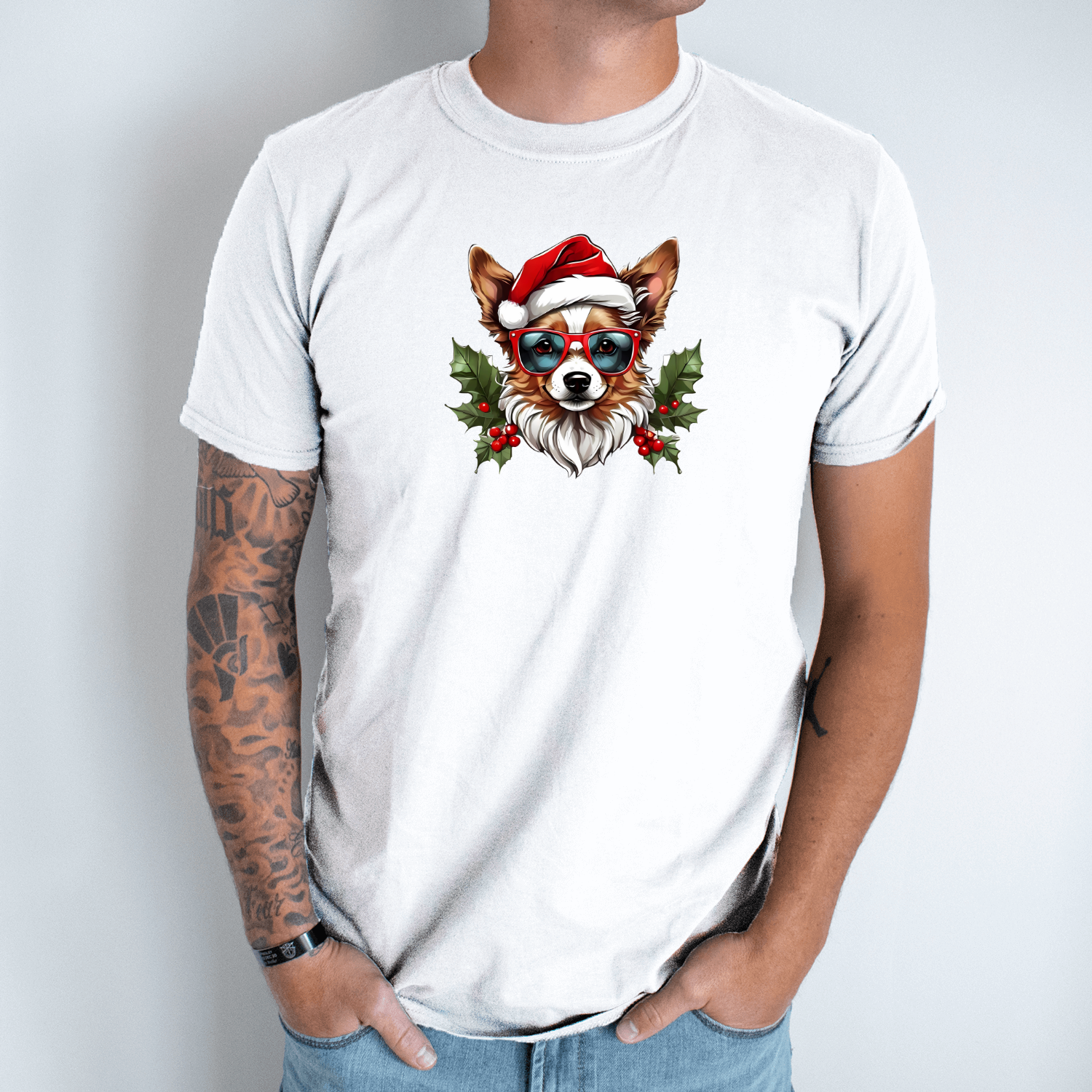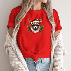 Unisex marškinėliai su spauda „Kalėdų korgis“
