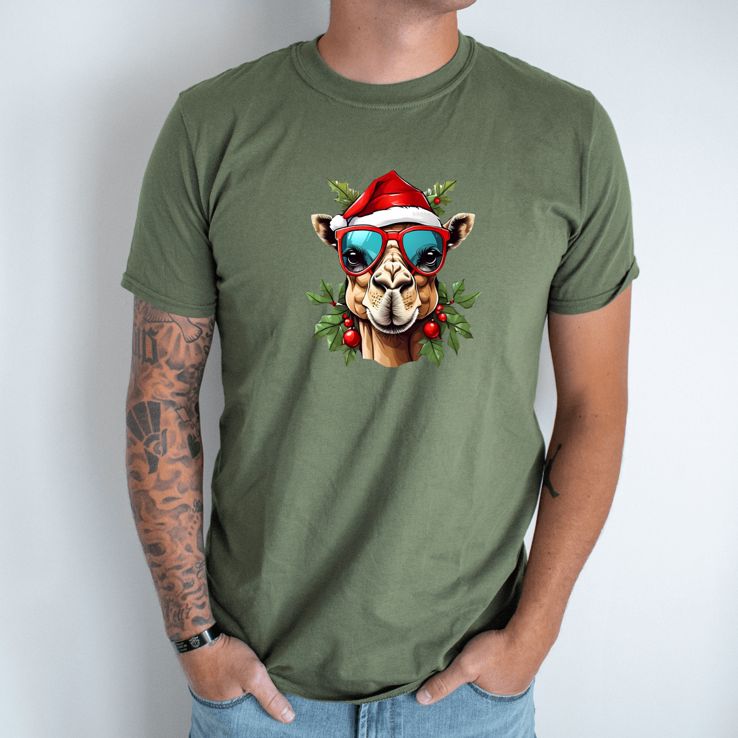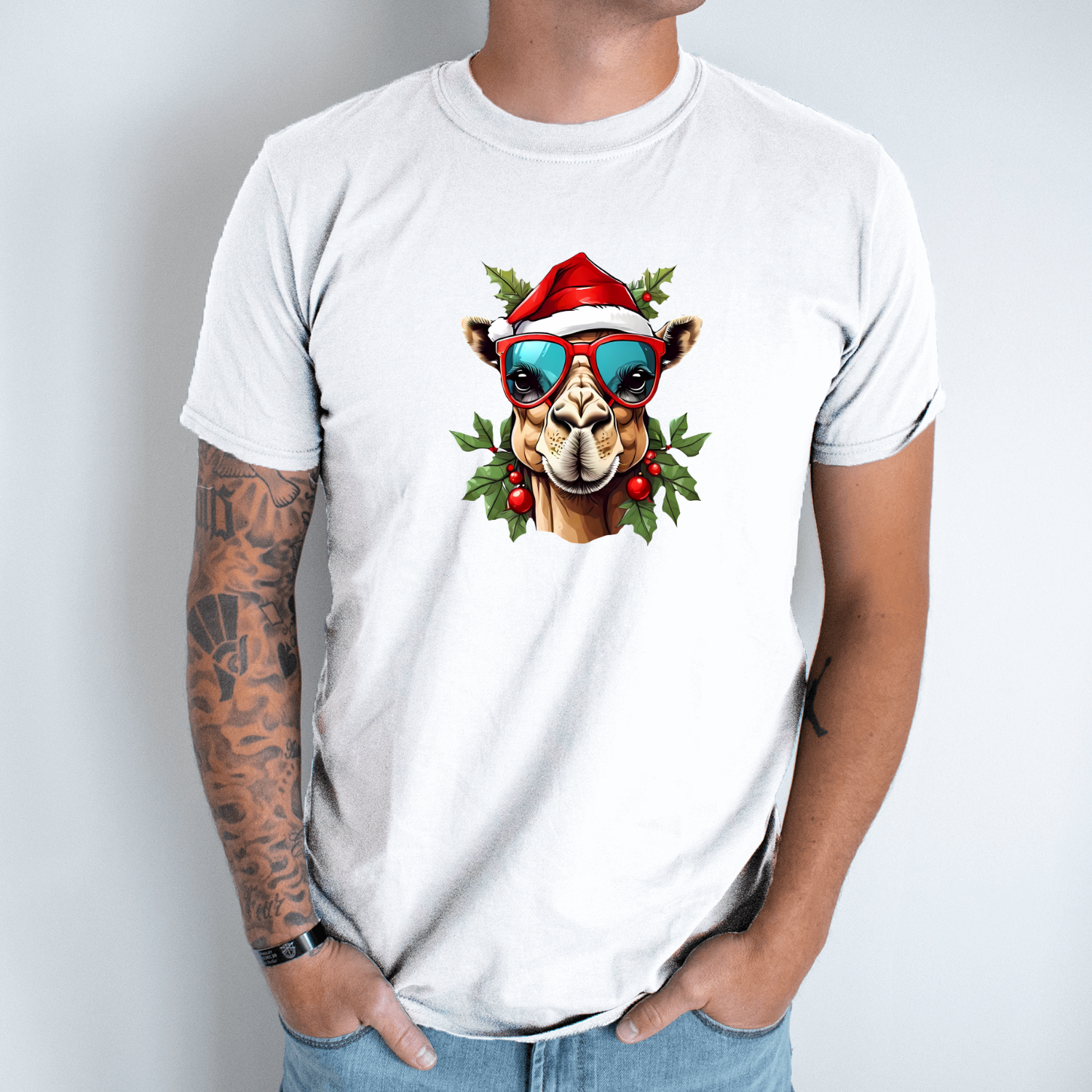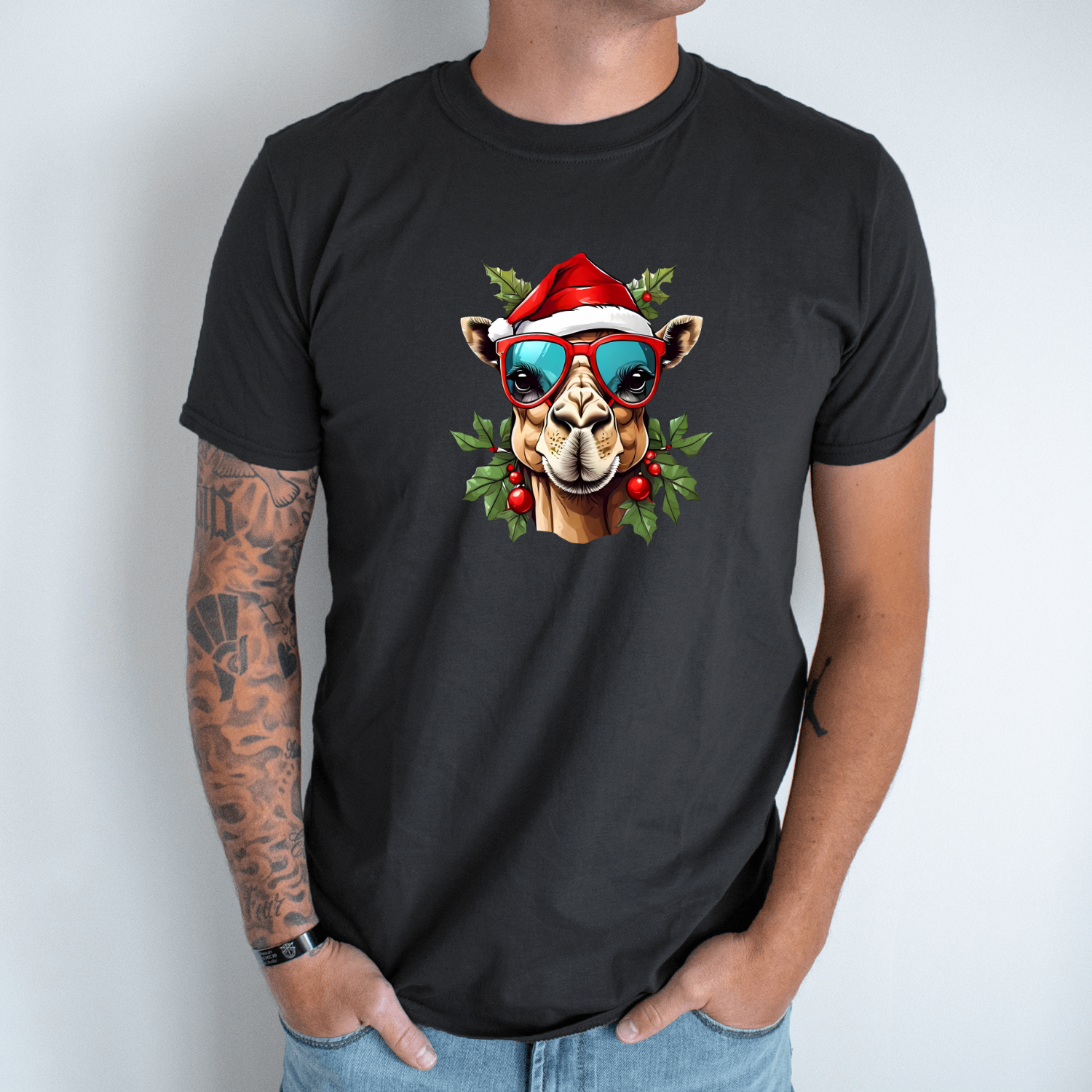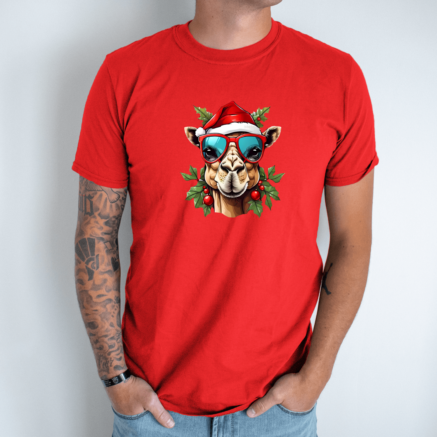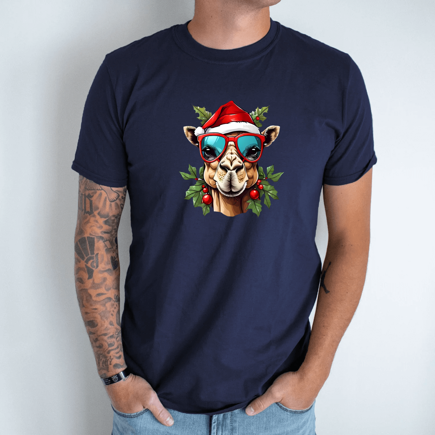 Unisex marškinėliai su spauda „Kalėdų kupranugaris“