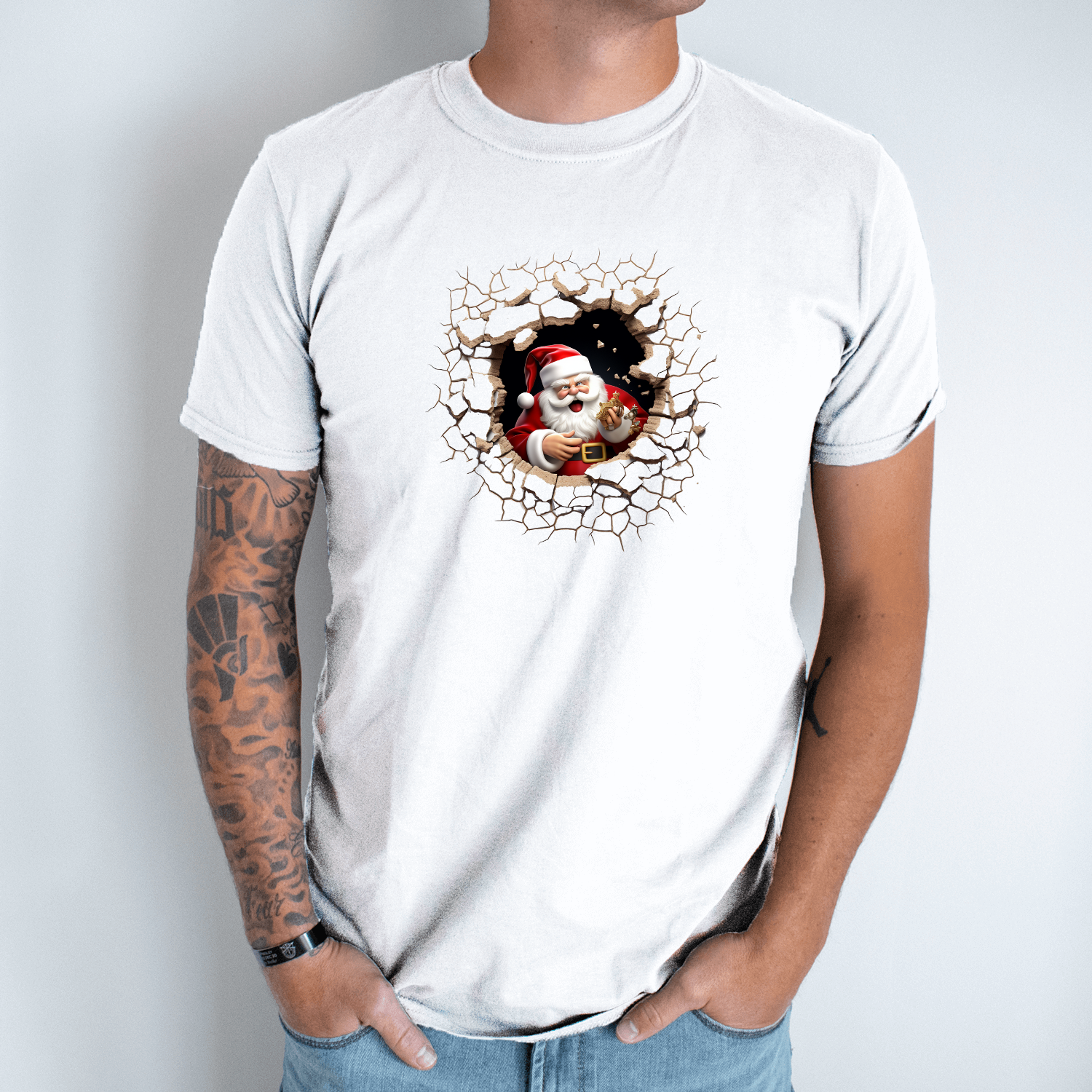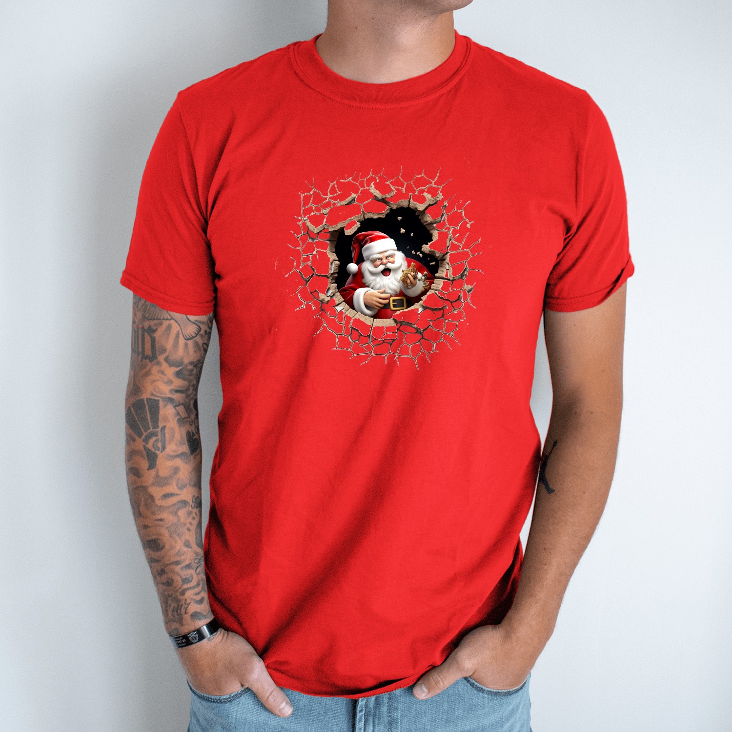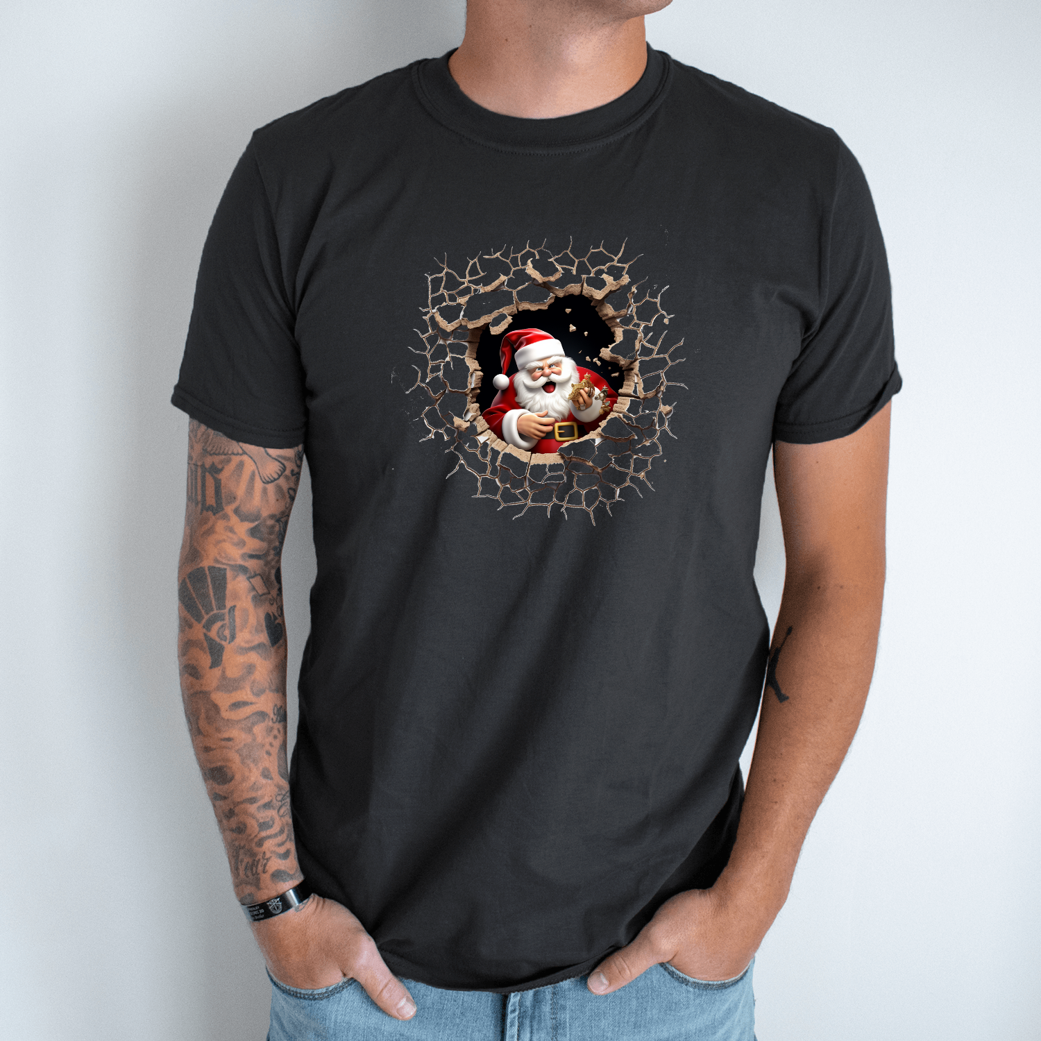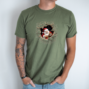 Unisex marškinėliai su spauda „Kalėdų Senelis ateina“