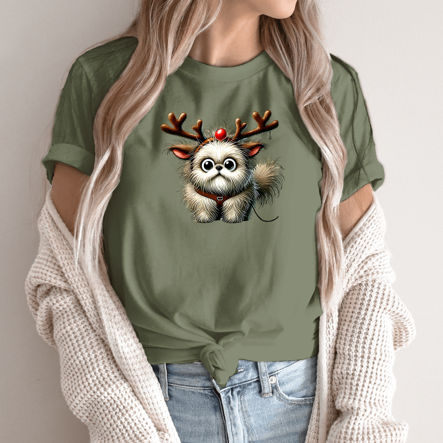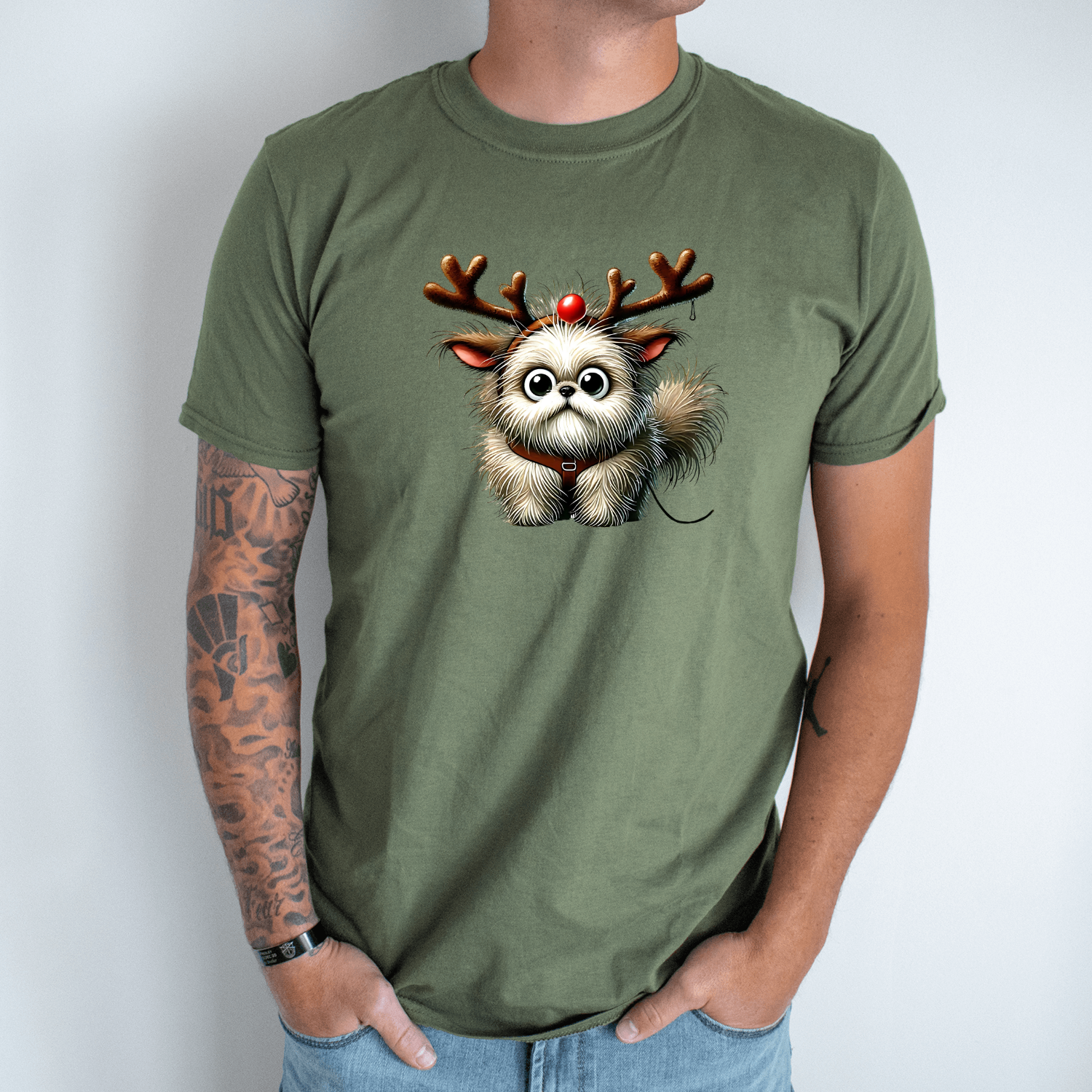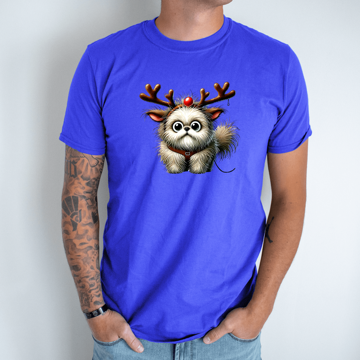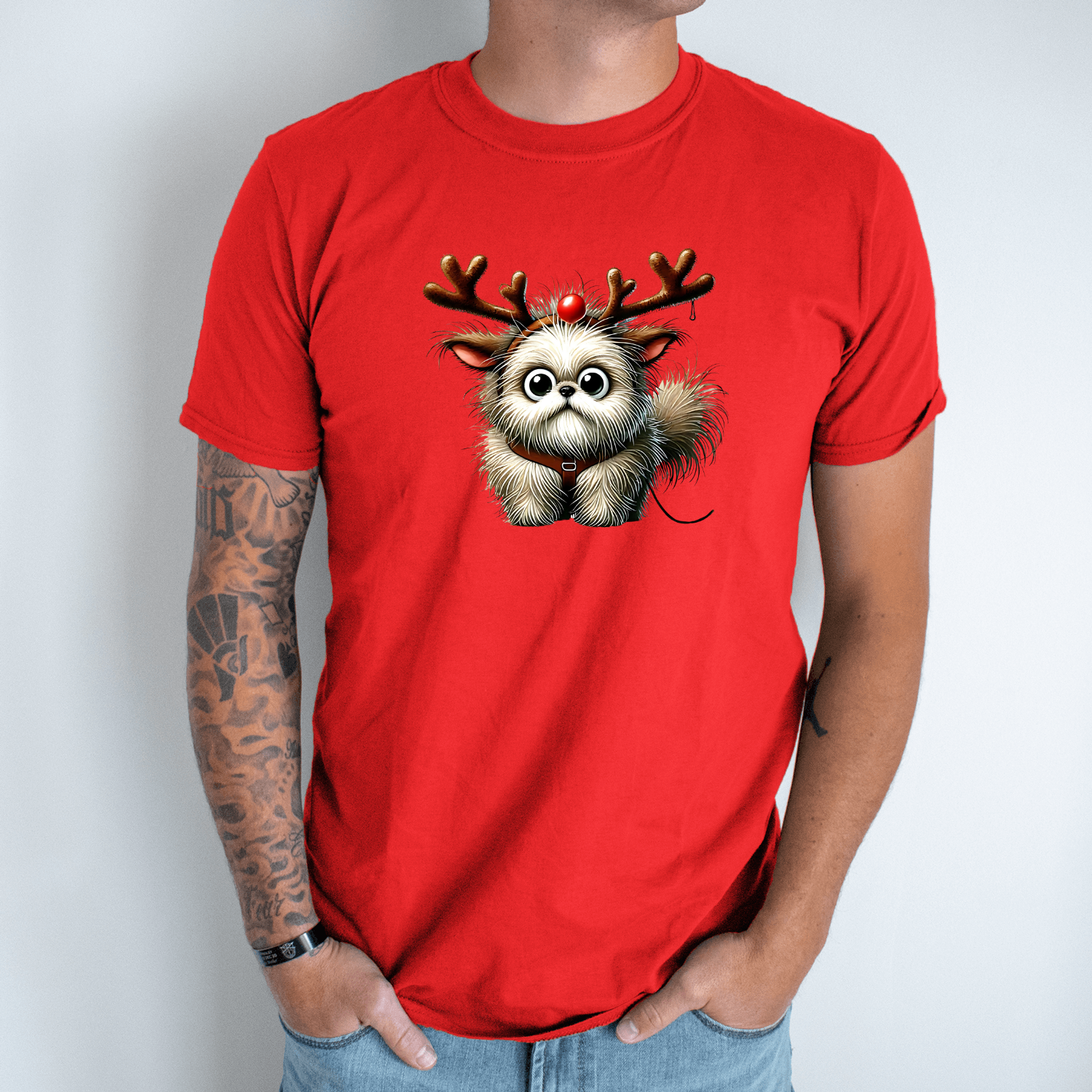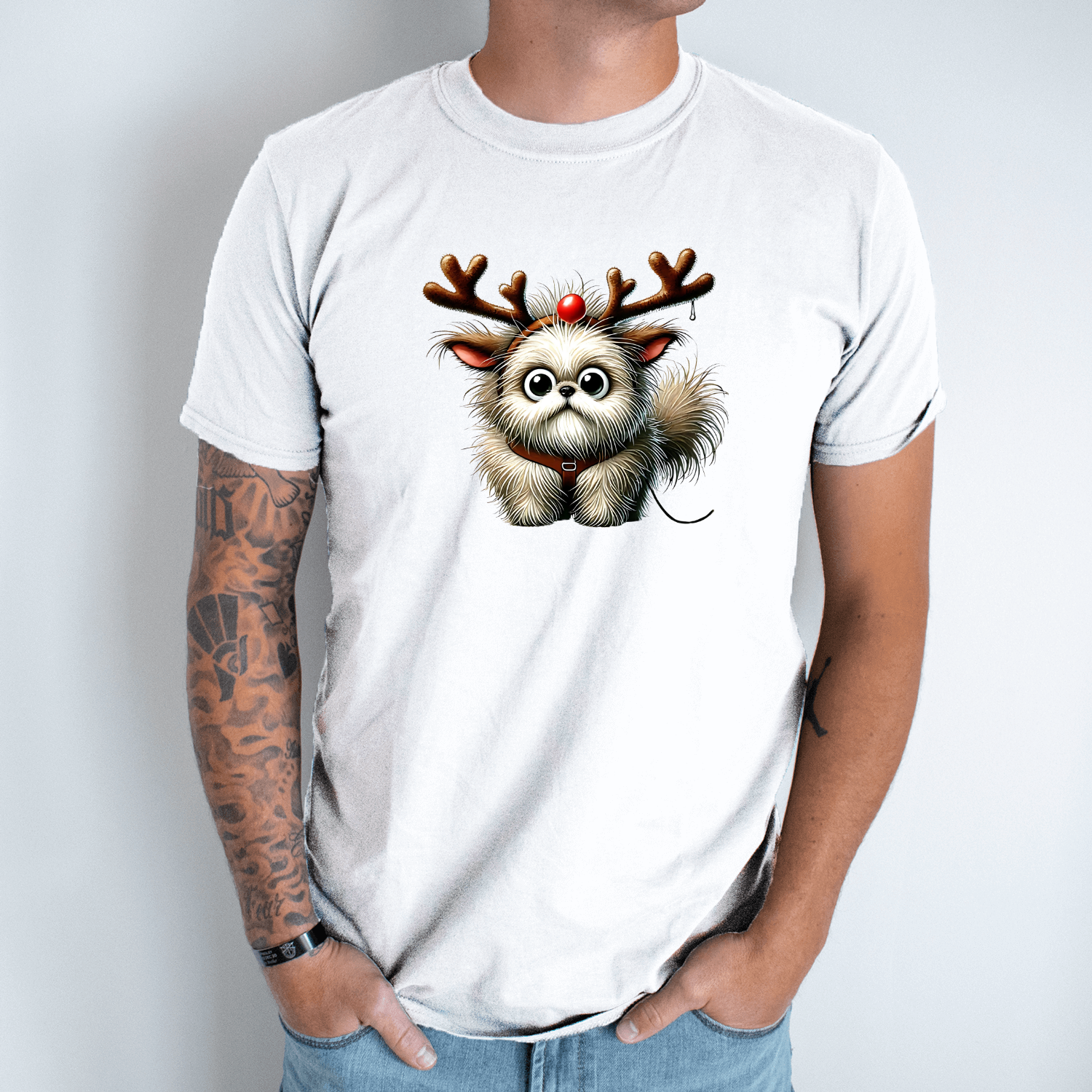 Unisex marškinėliai su spauda „Kalėdų šuniukas Rudolfas“