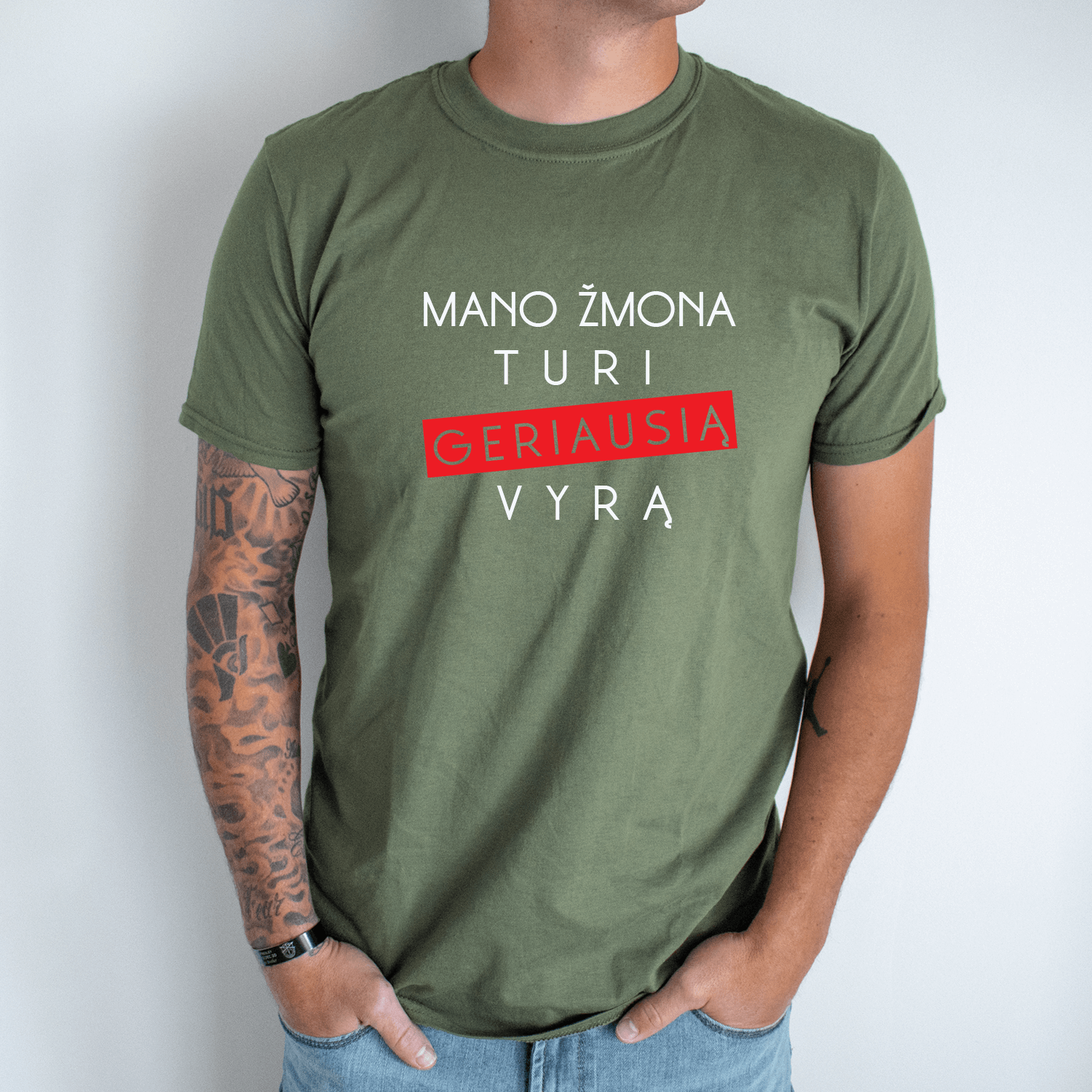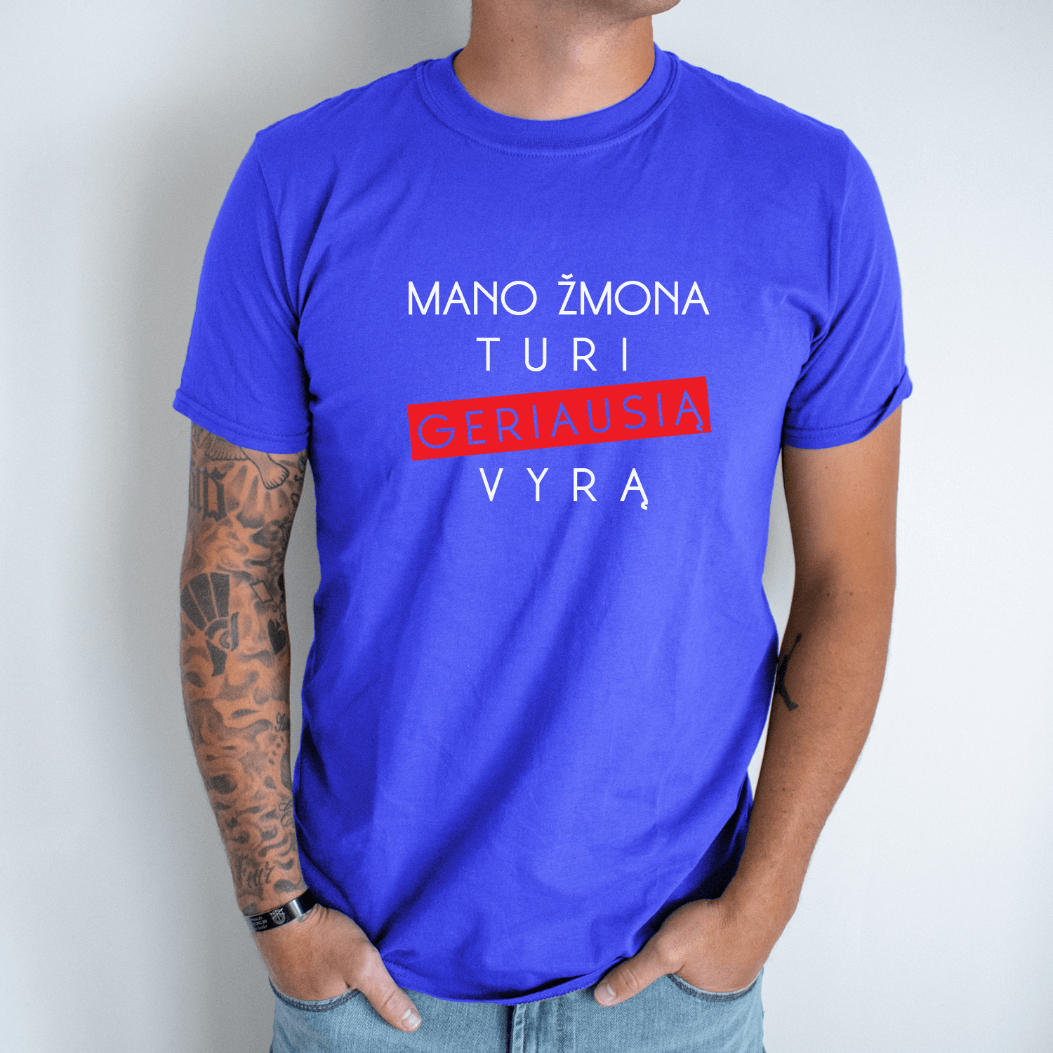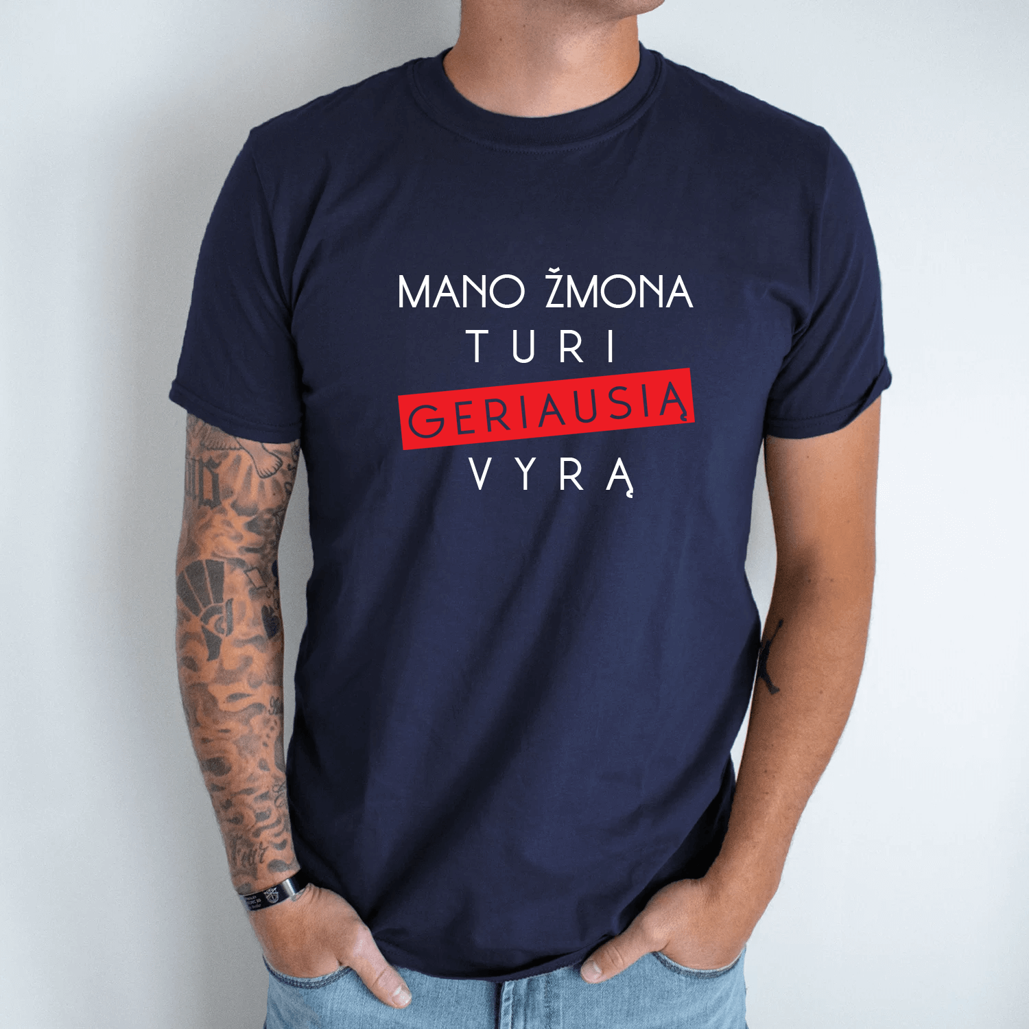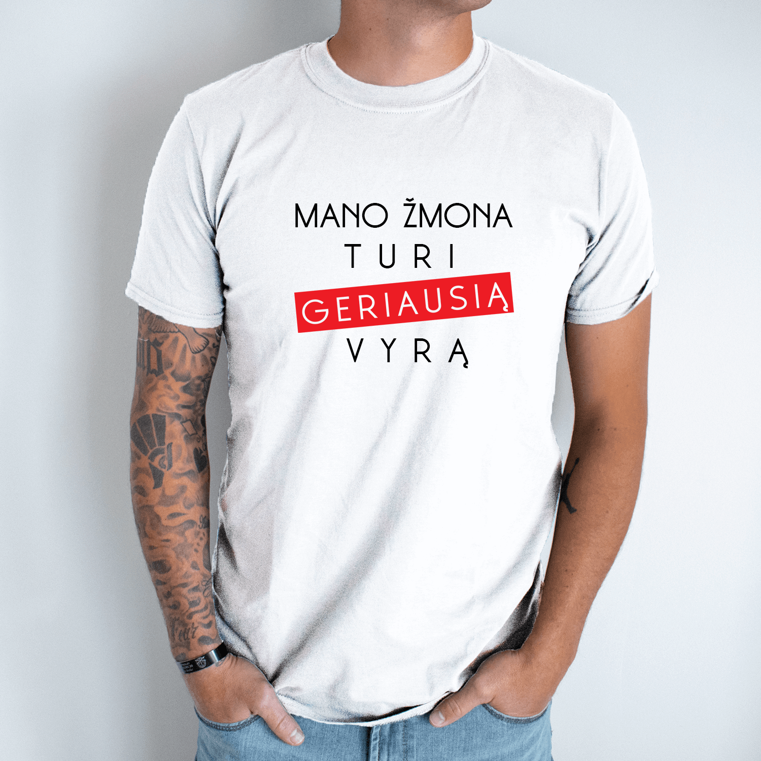 Unisex marškinėliai su spauda „Mano žmona turi geriausią vyrą“