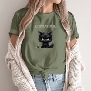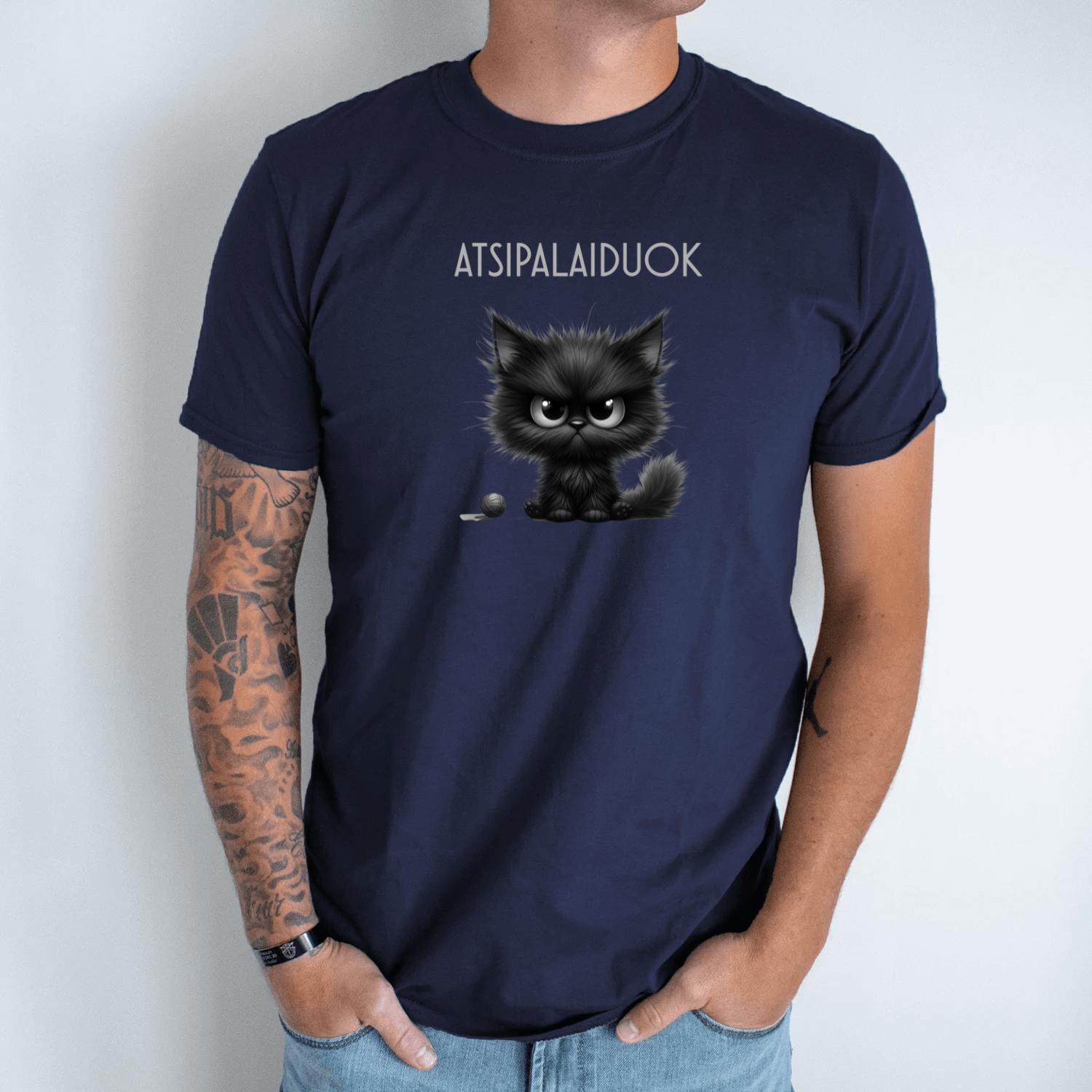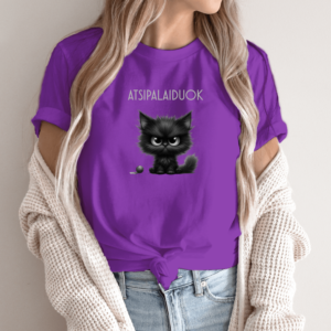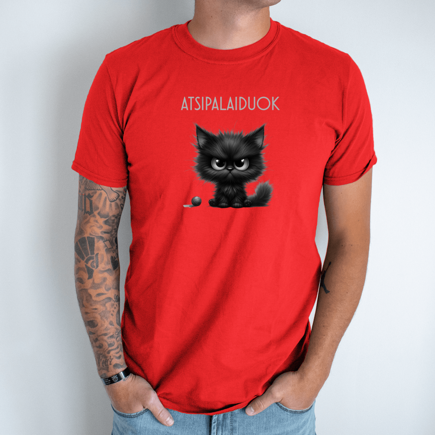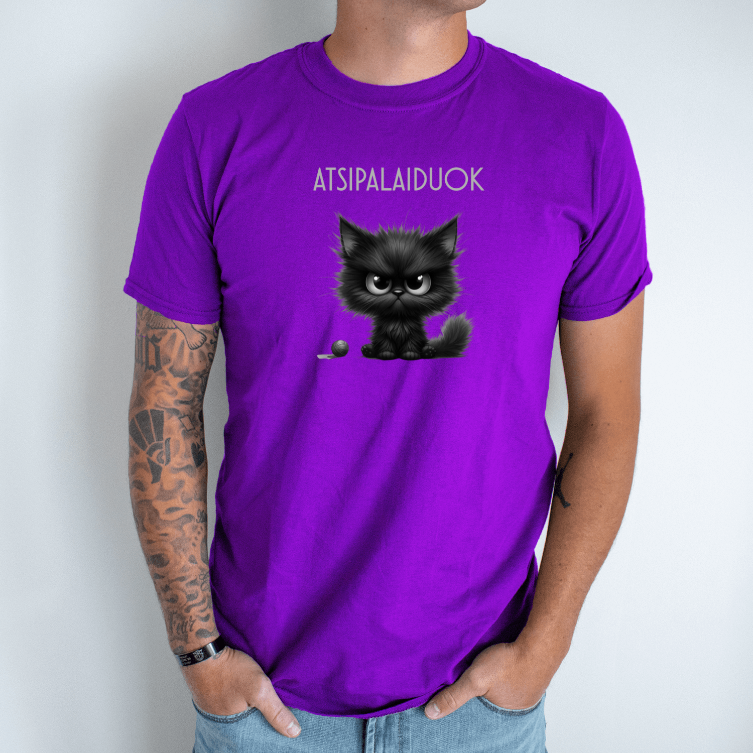 Unisex marškinėliai su spauda „Nepatenkintas kačiukas“