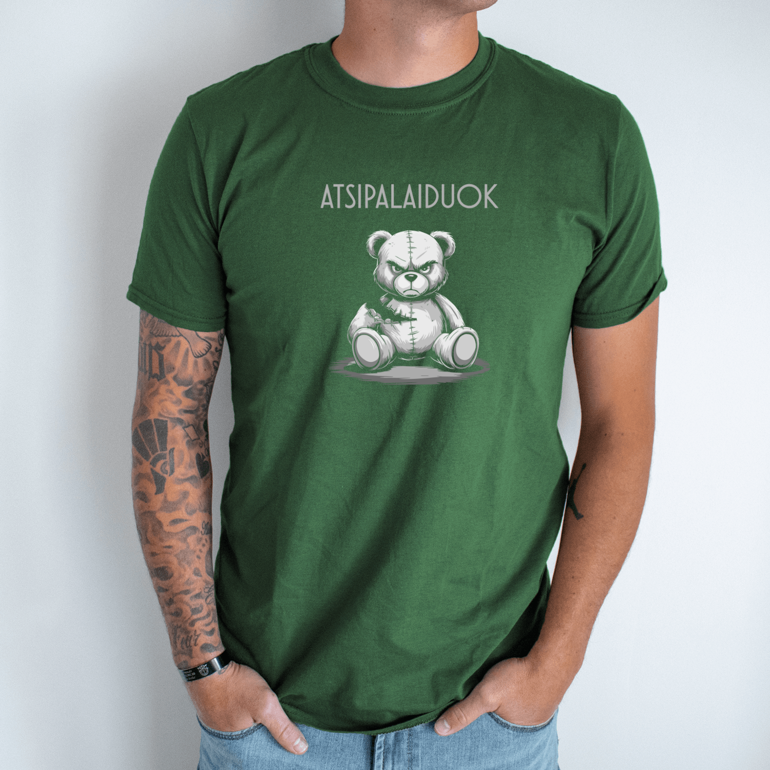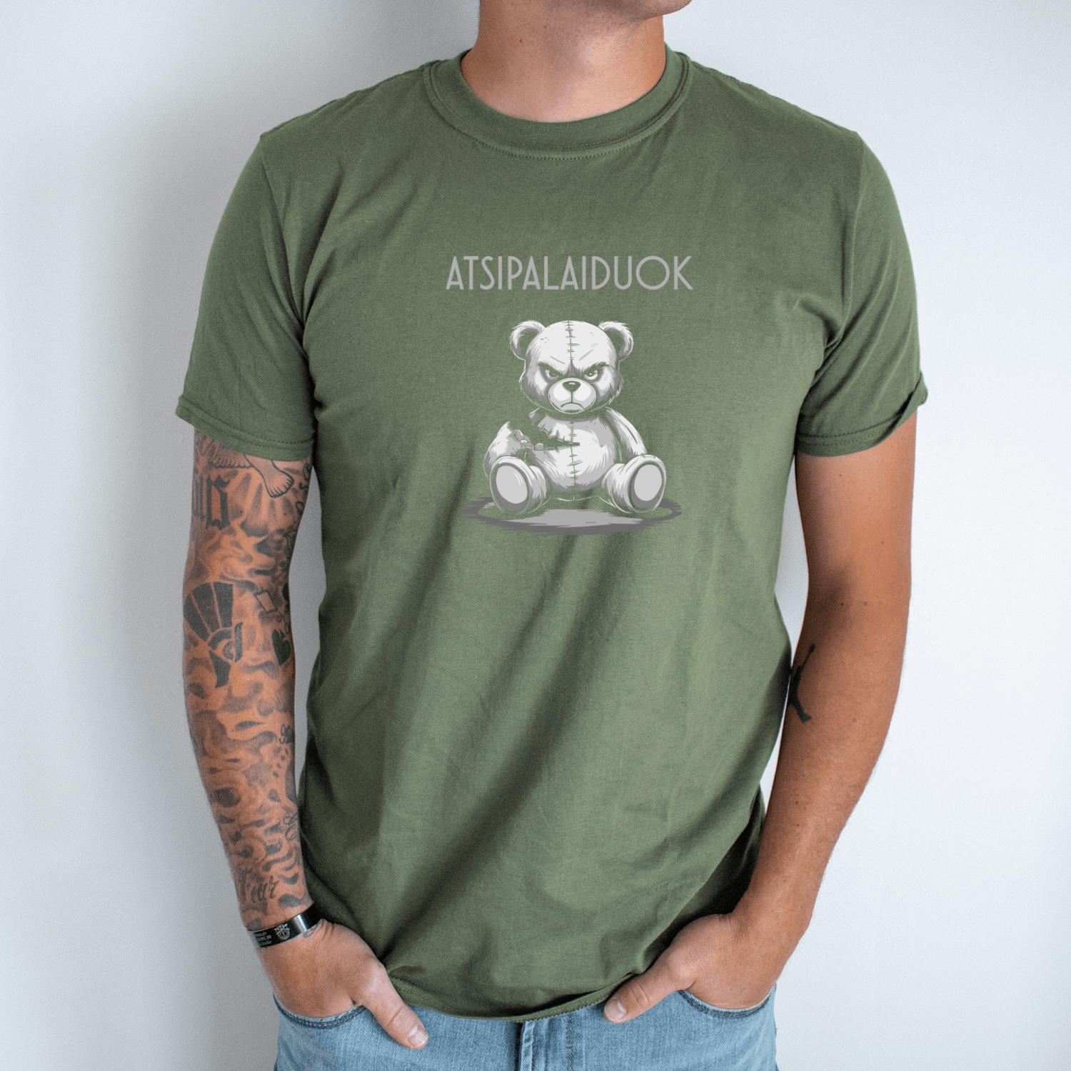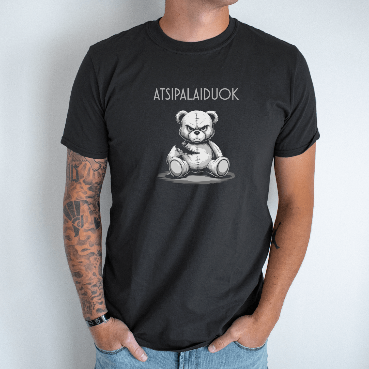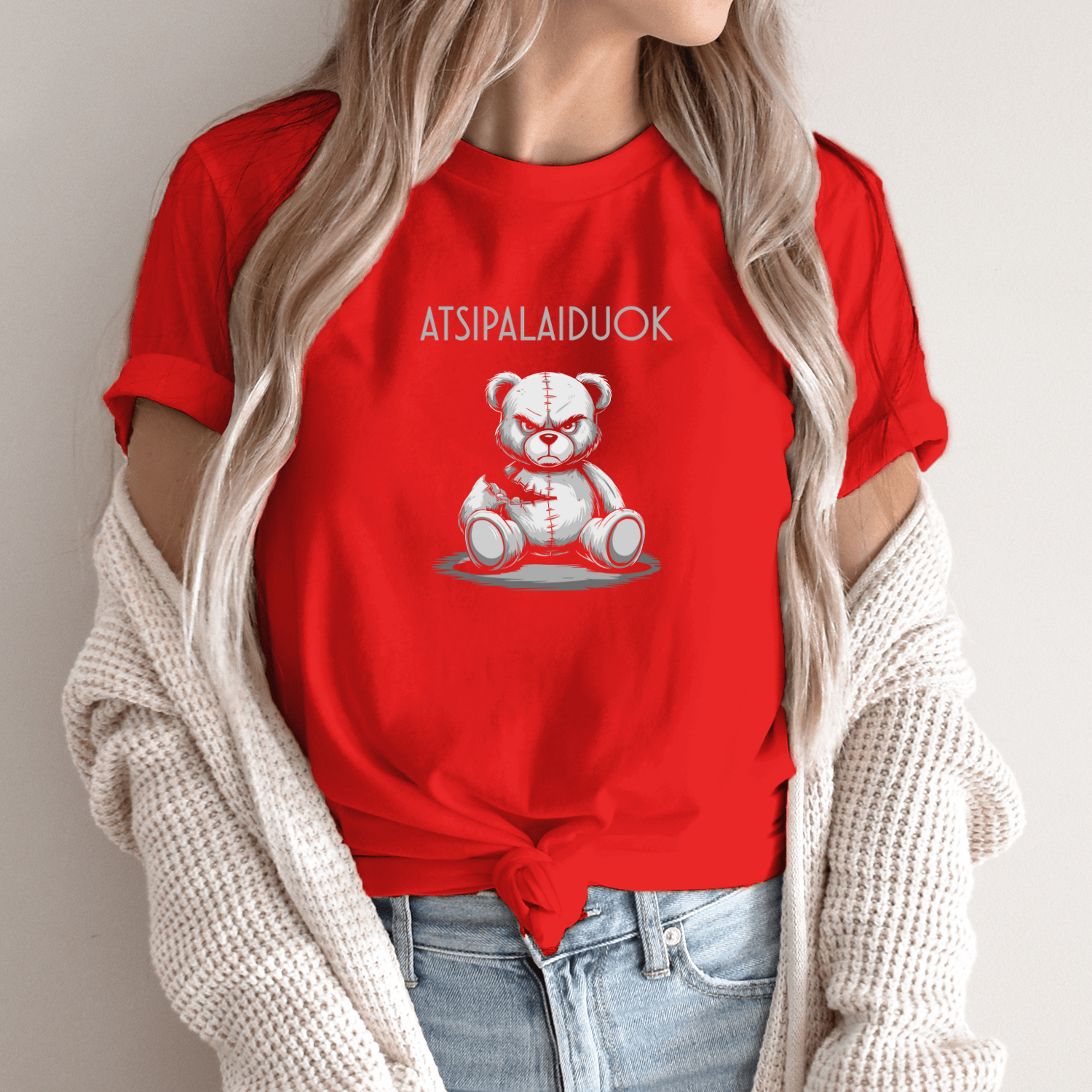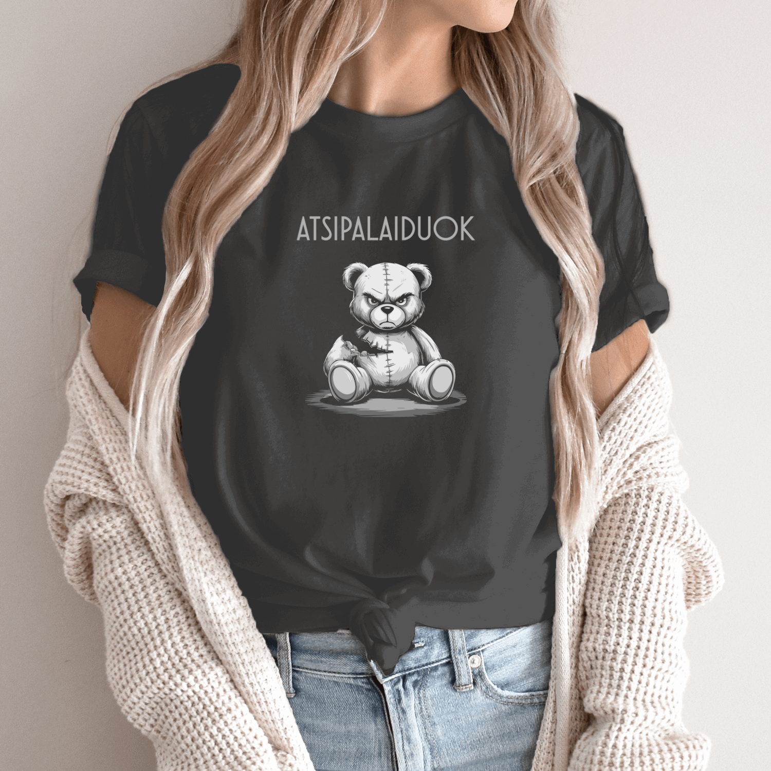 Unisex marškinėliai su spauda „Nepatenkintas meškis“