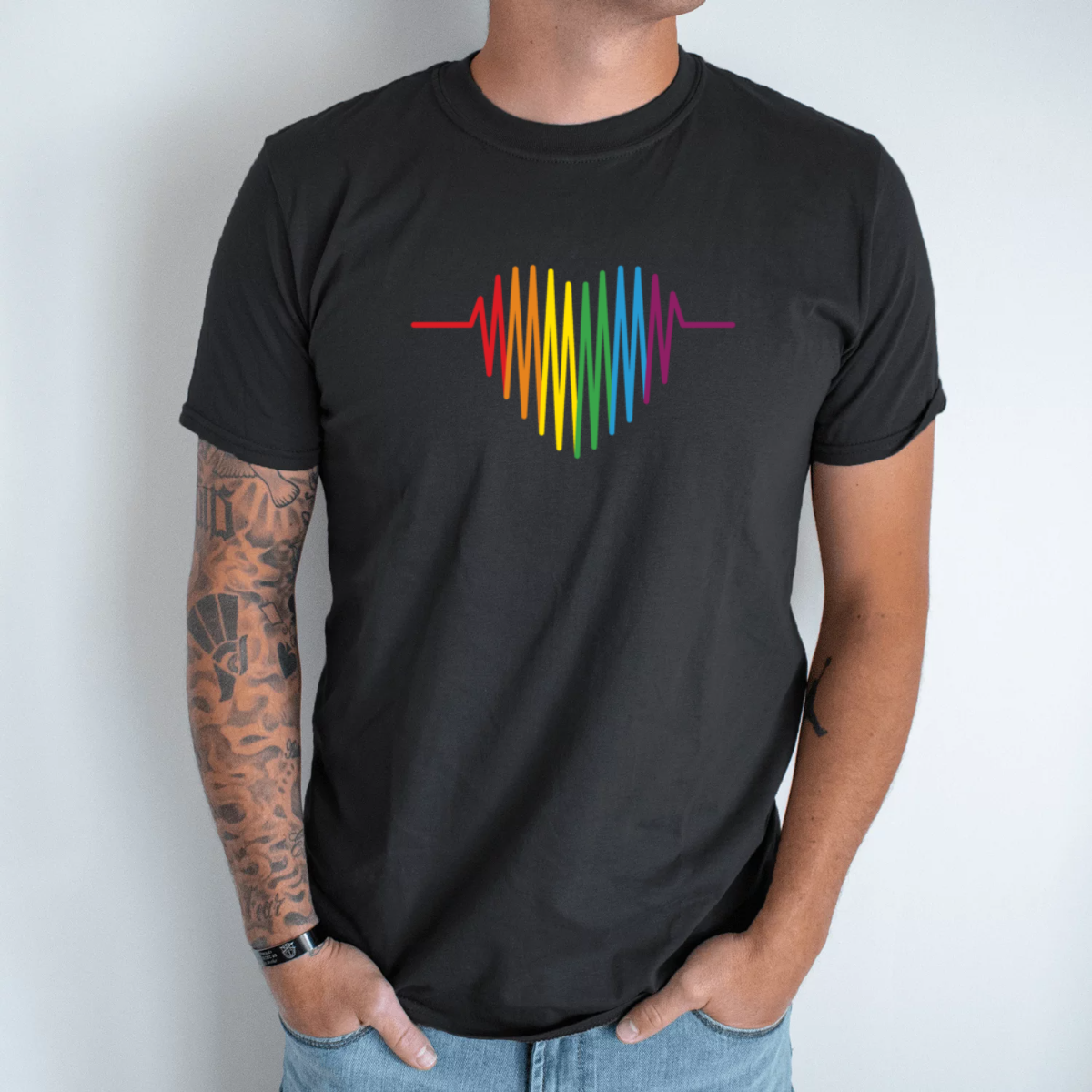 Unisex marškinėliai su spauda „Pride širdelė“