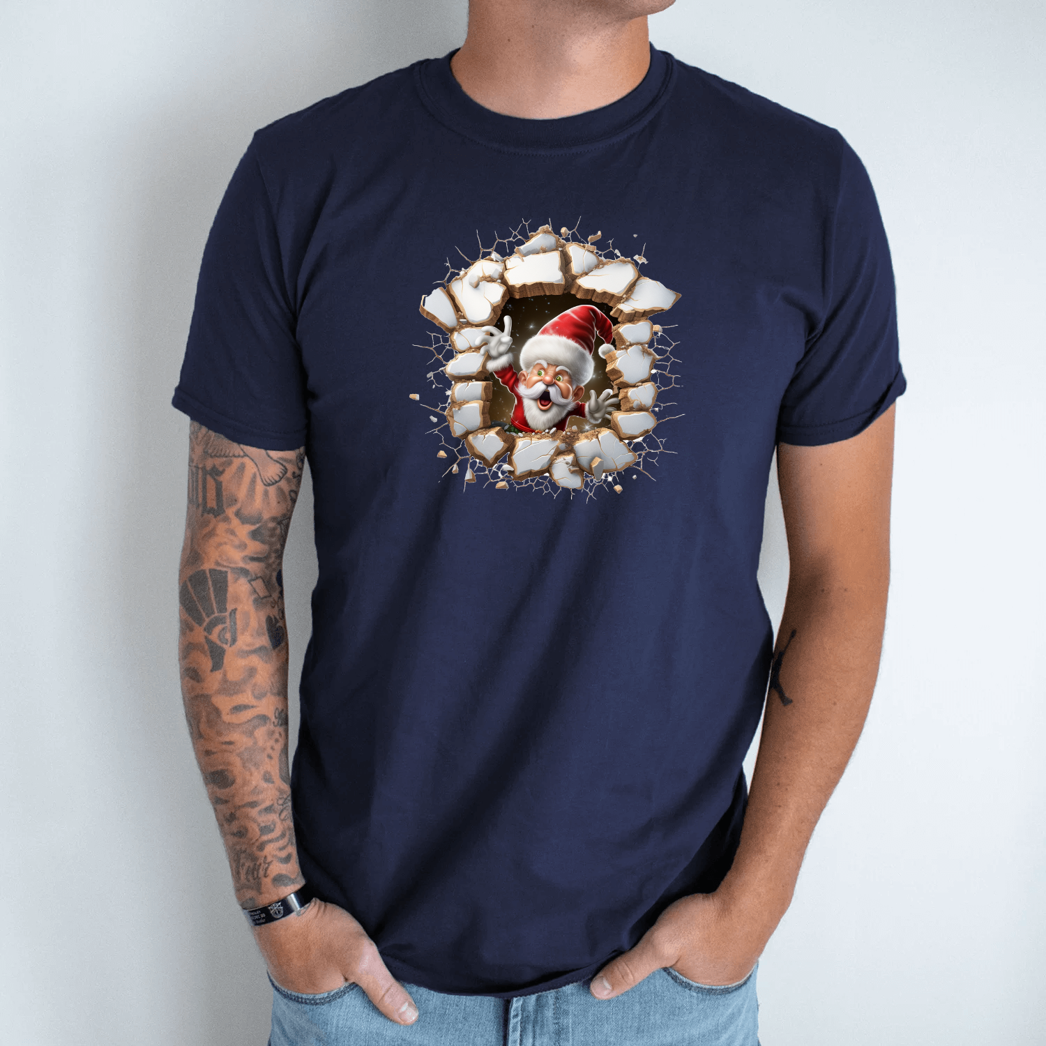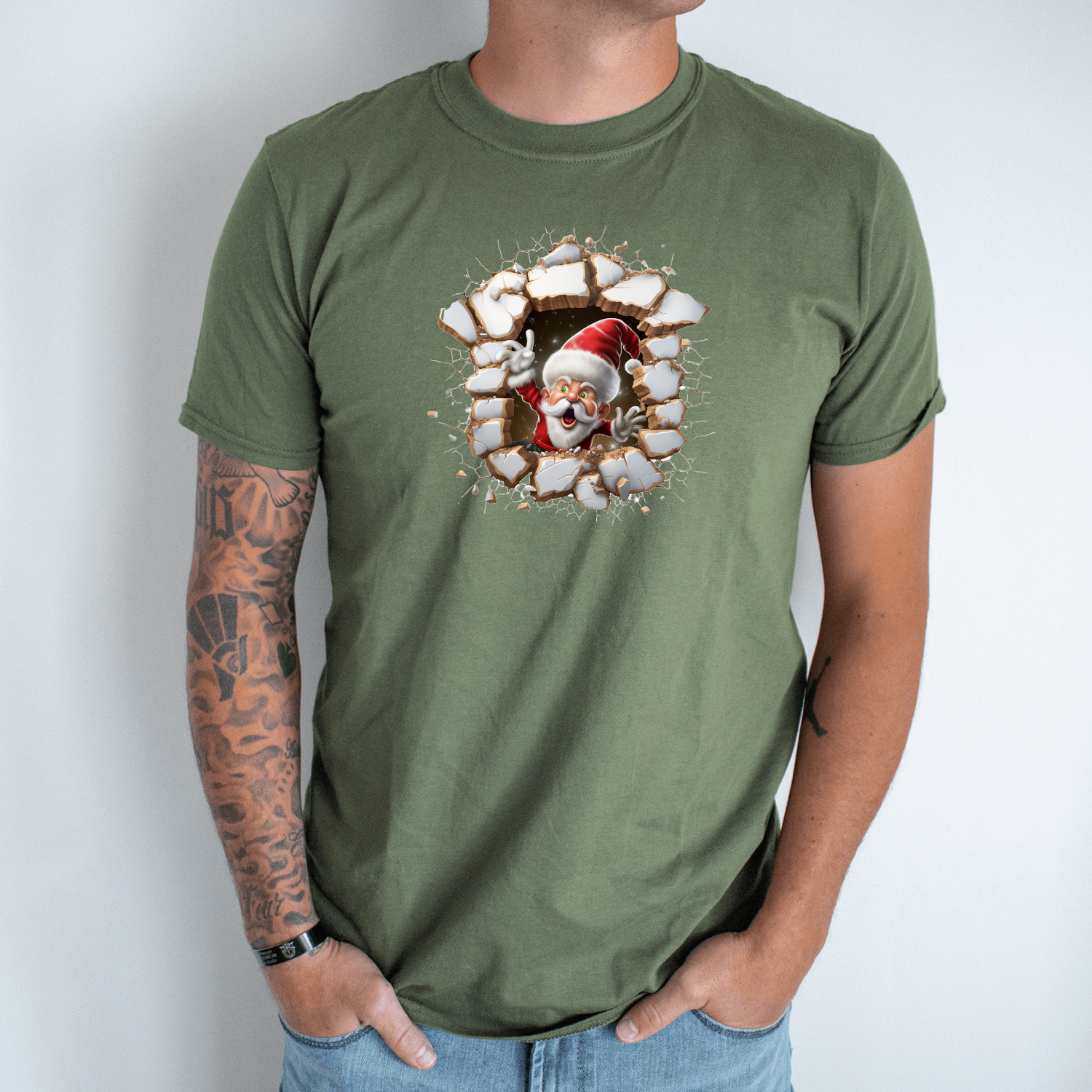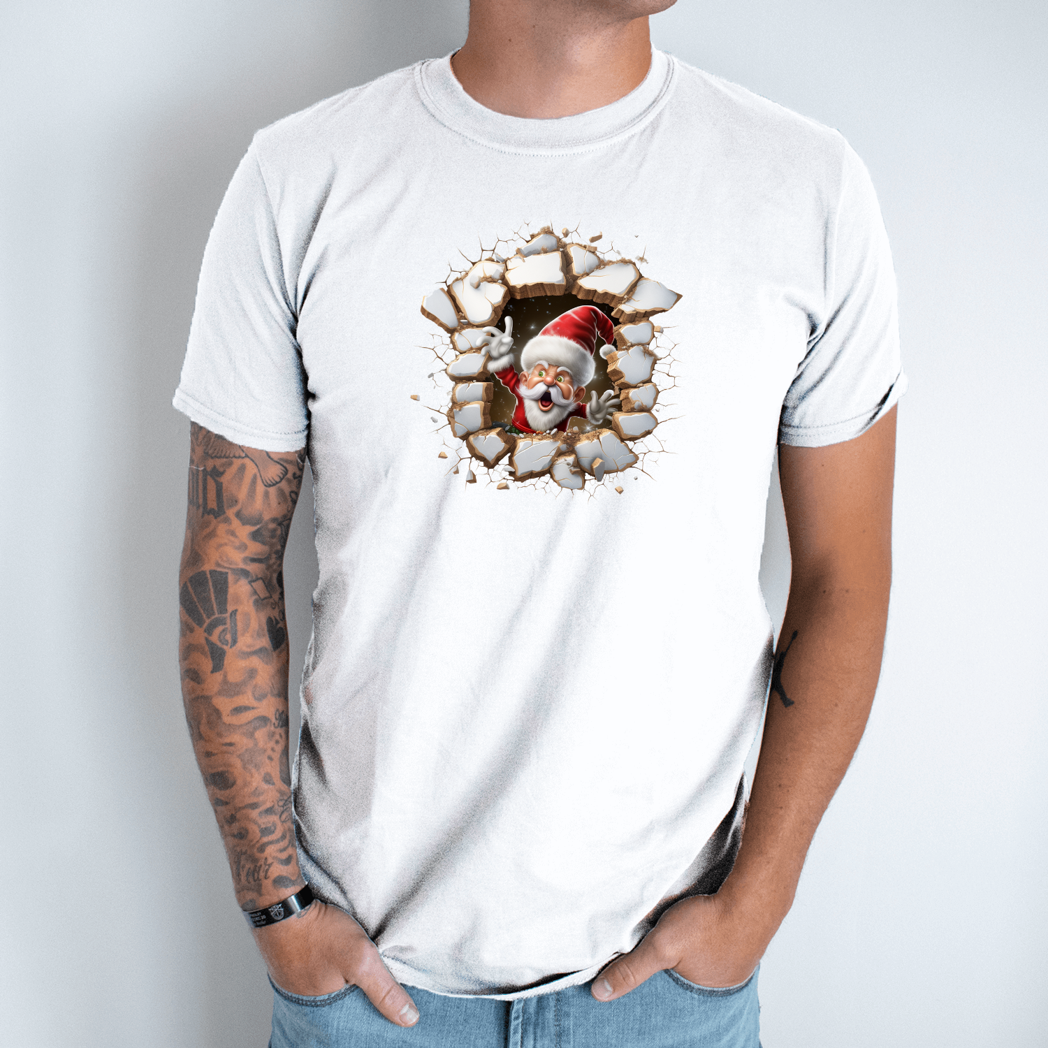 Unisex marškinėliai su spauda „Santa netikėtai pasirodo“