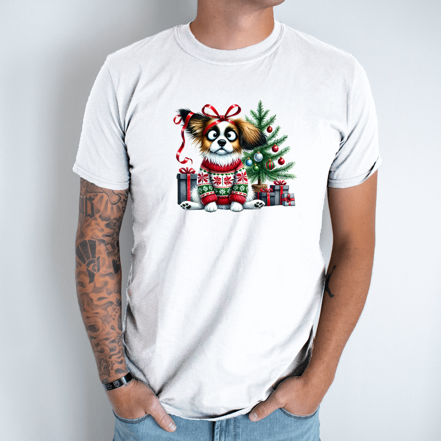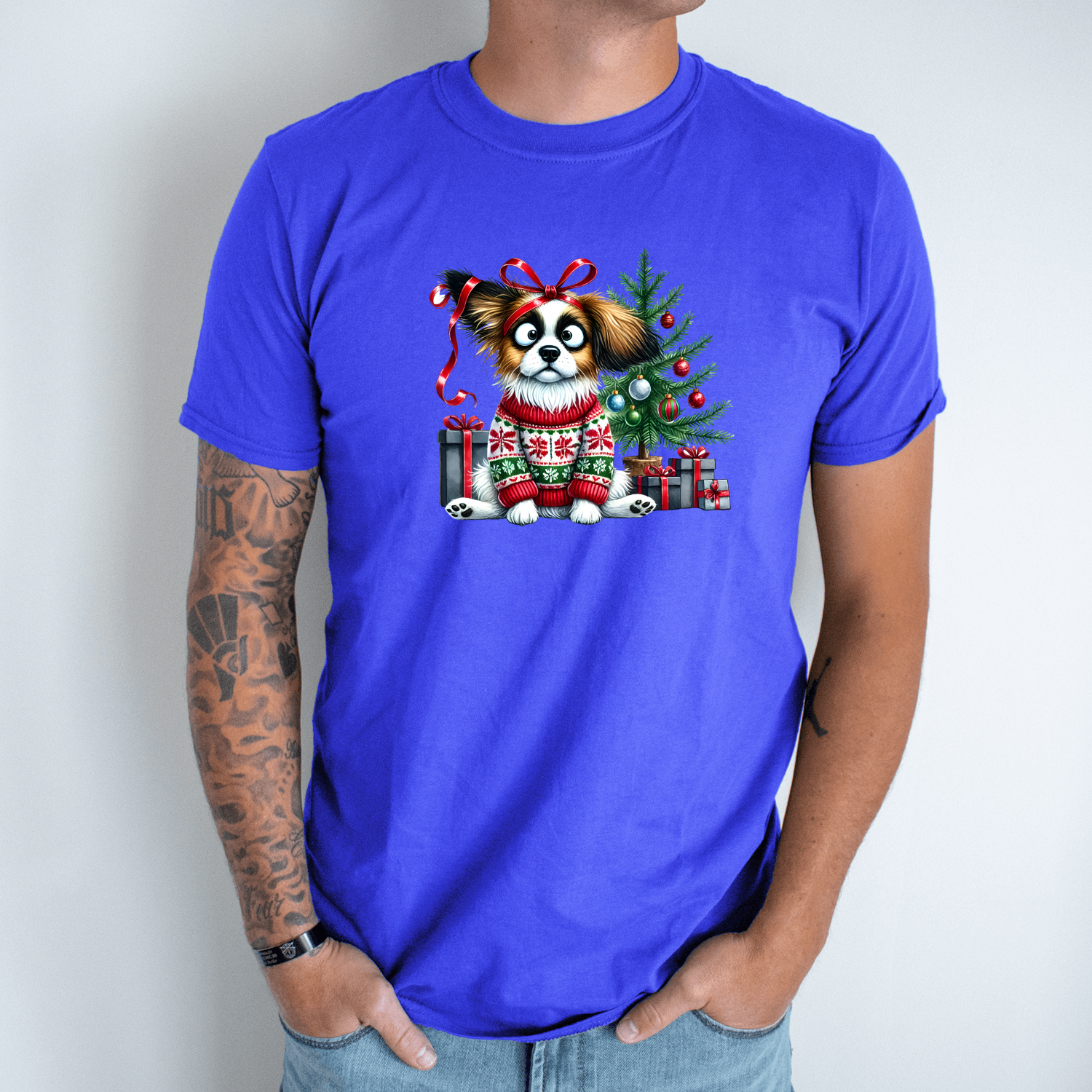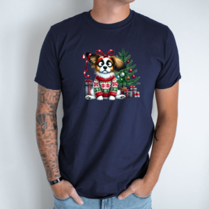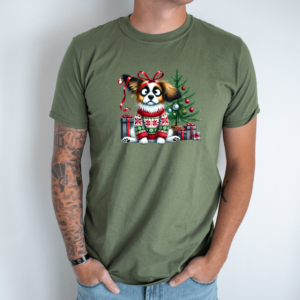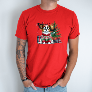 Unisex marškinėliai su spauda „Šuo Kalėdų nuotaikoje“