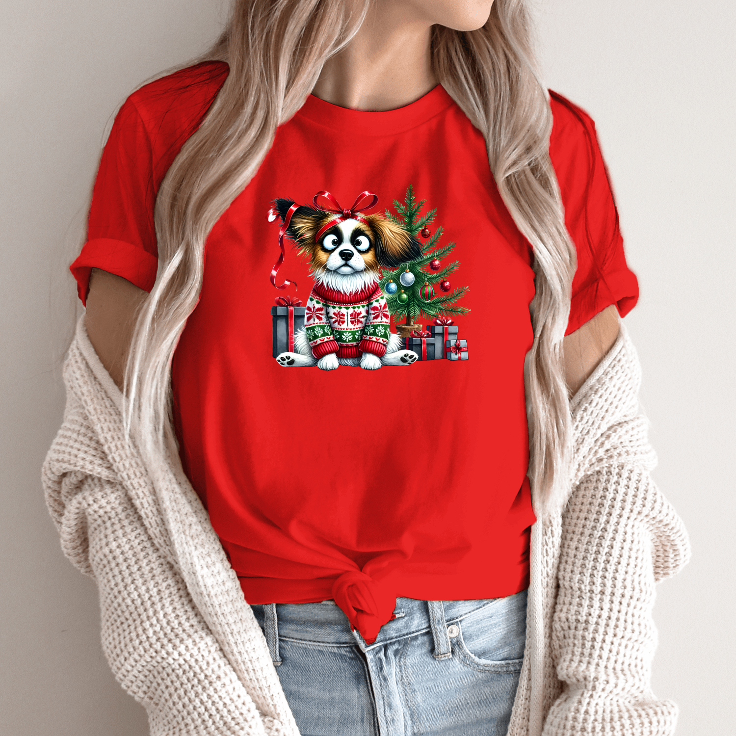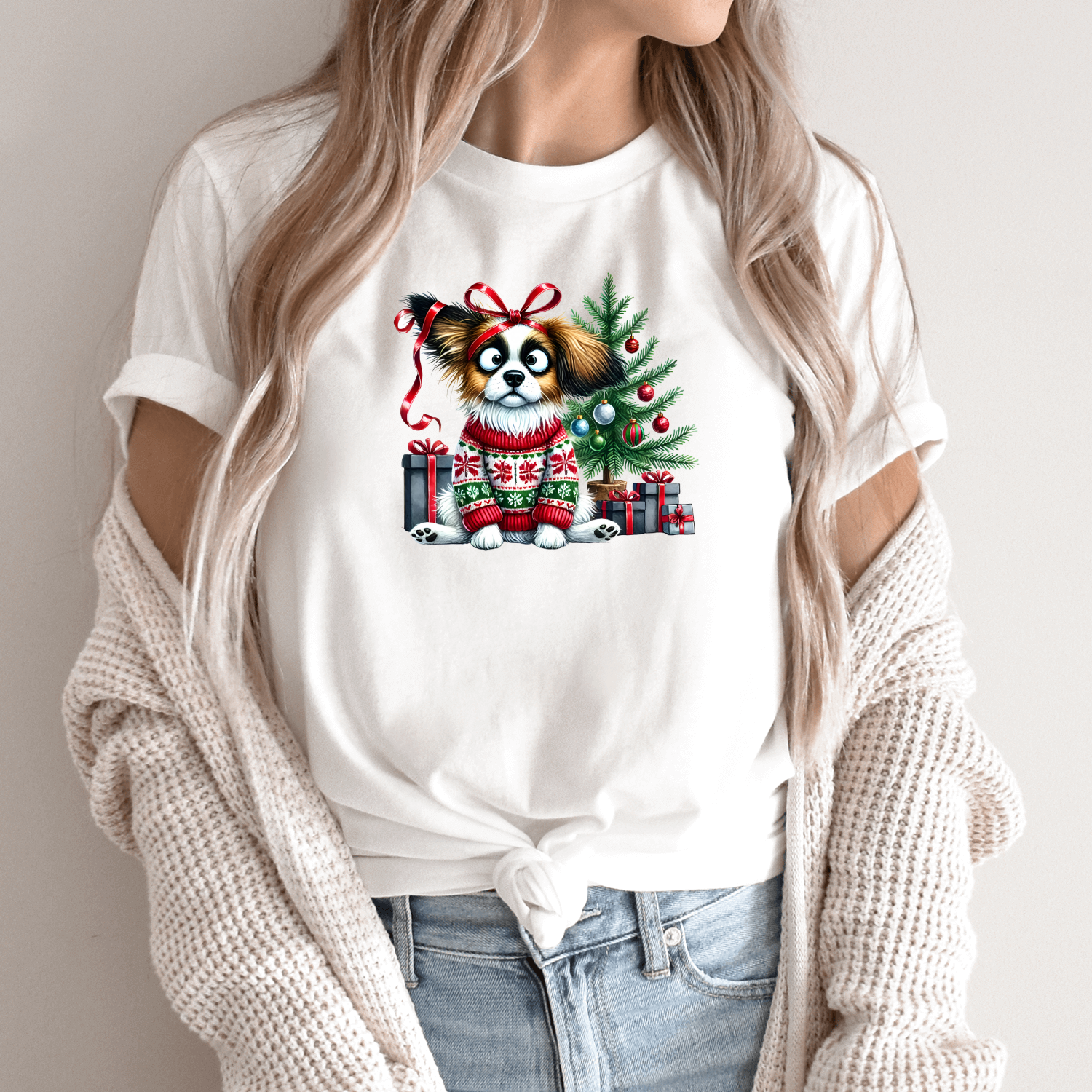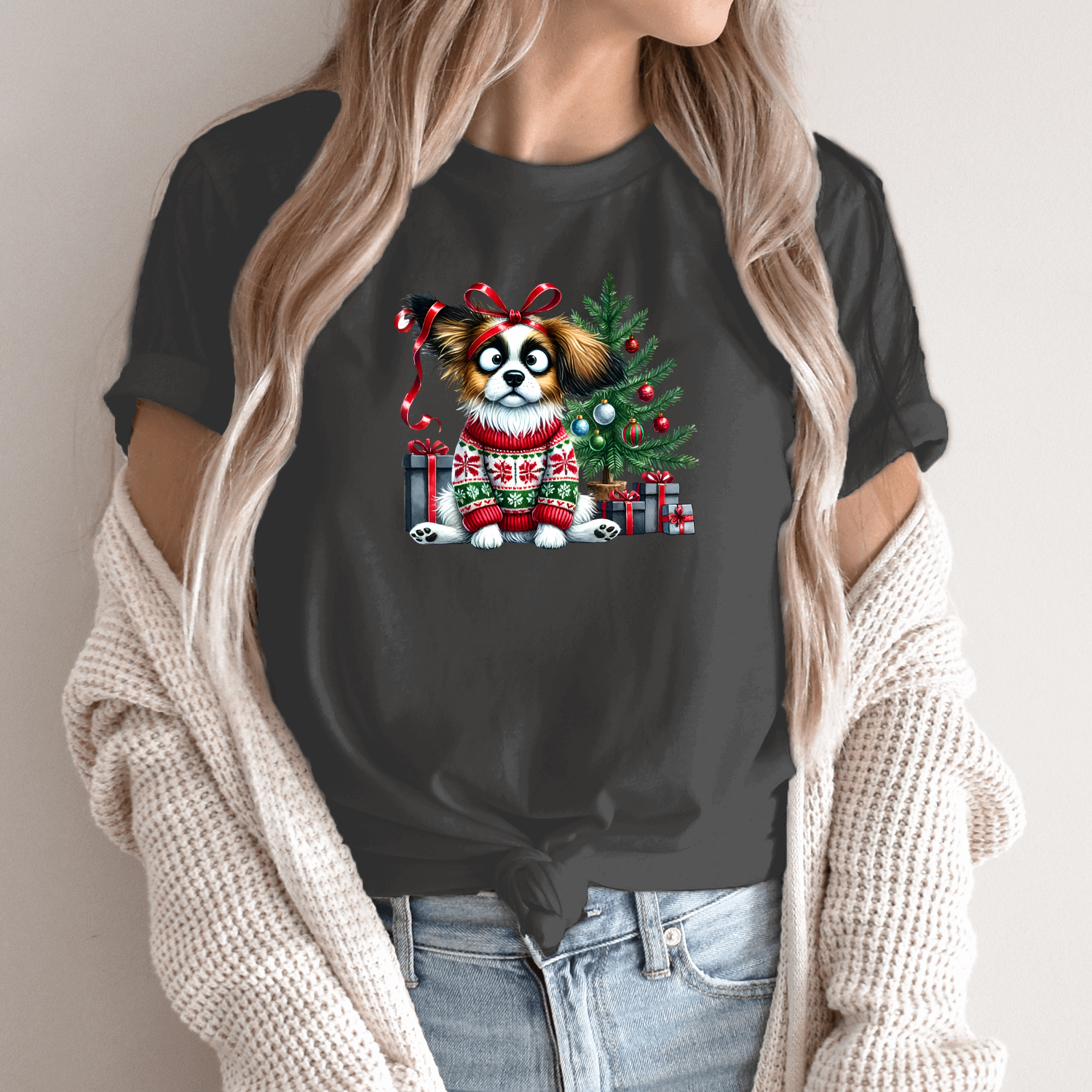 Unisex marškinėliai su spauda „Šuo Kalėdų nuotaikoje“