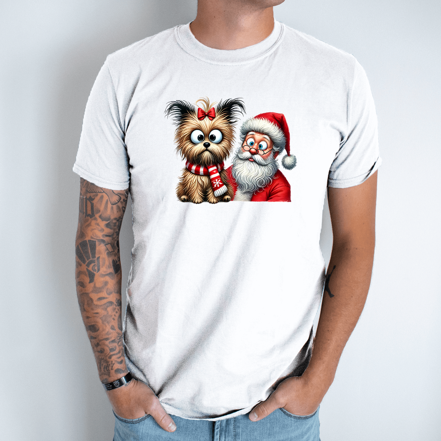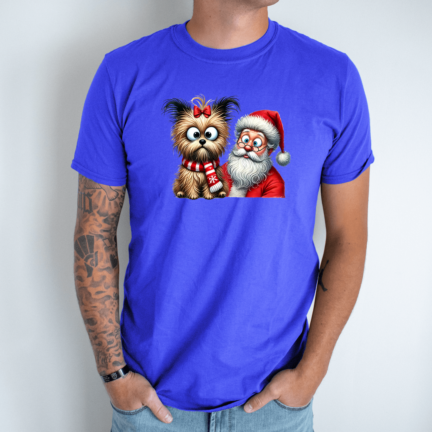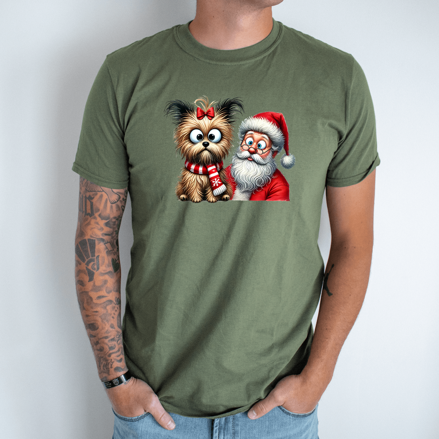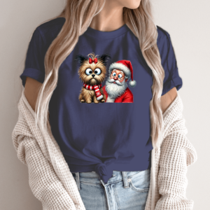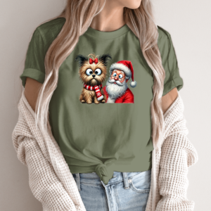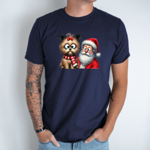 Unisex marškinėliai su spauda „Šuo pas Kalėdų senį“