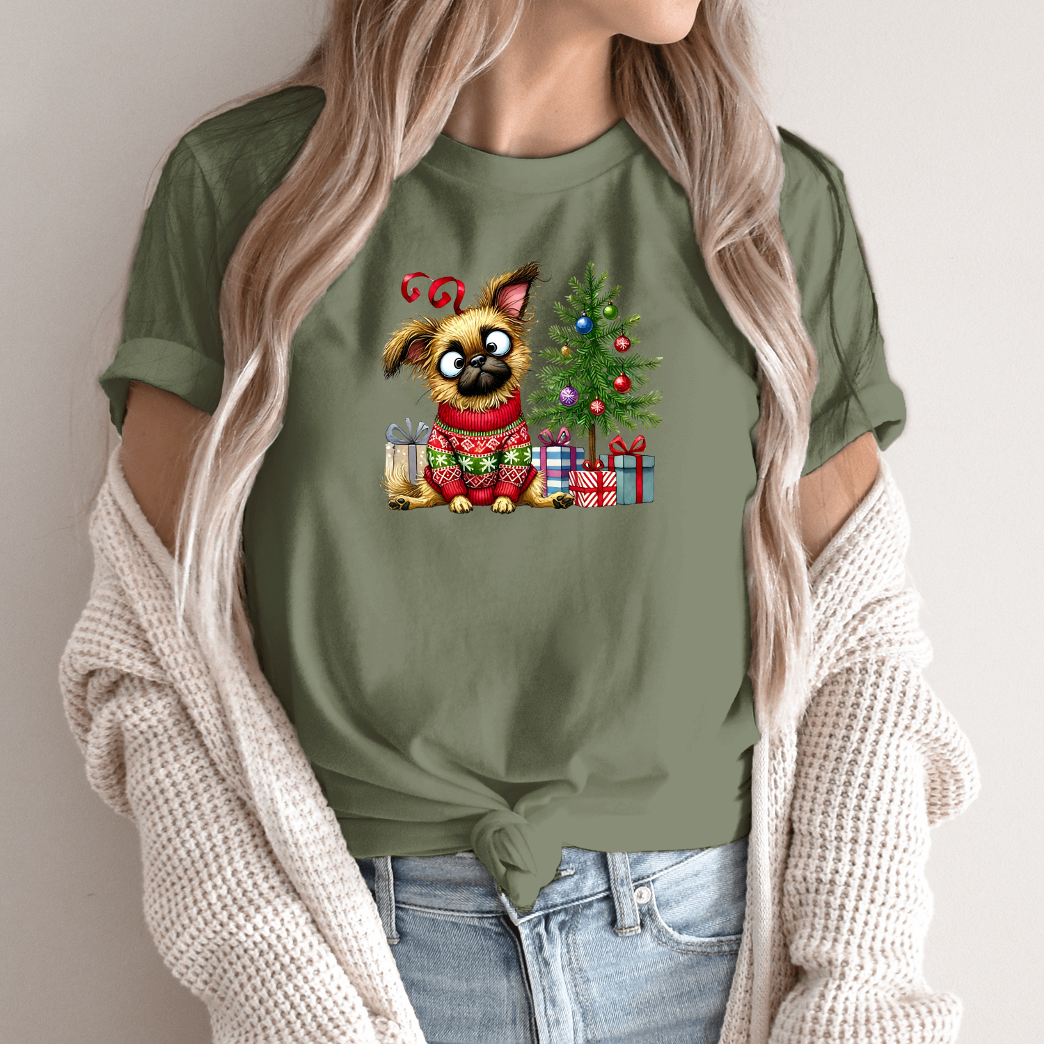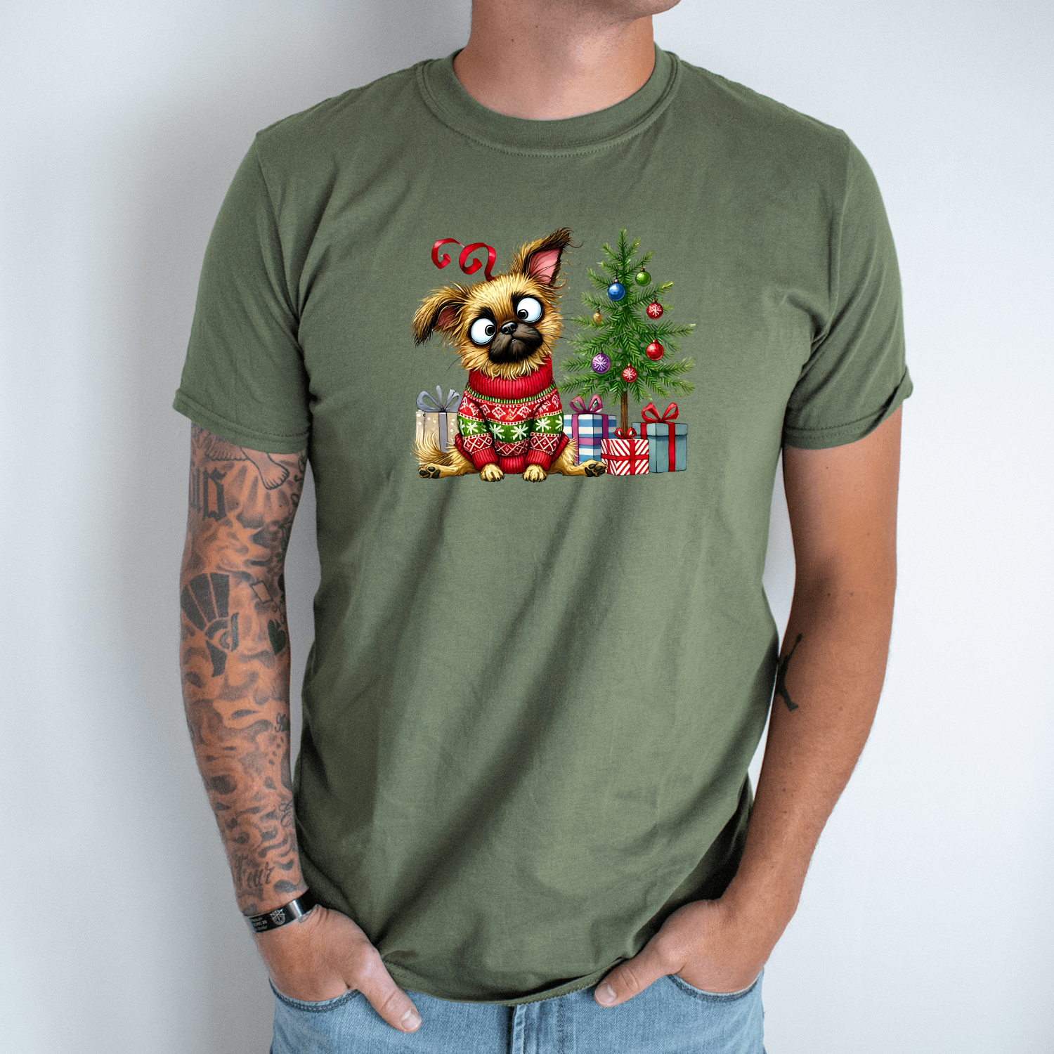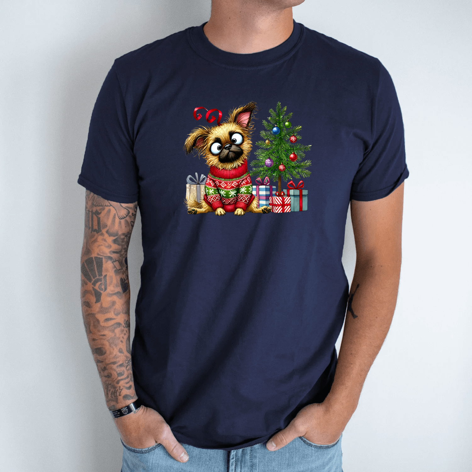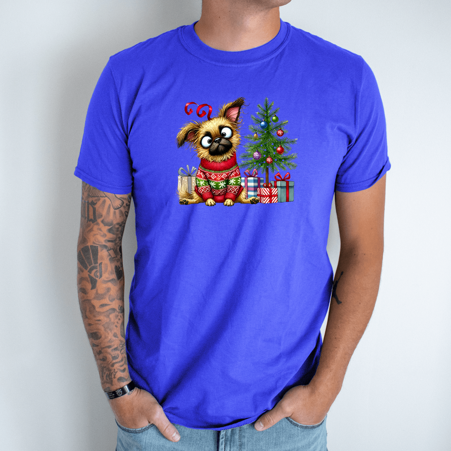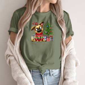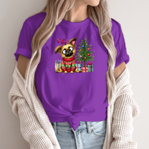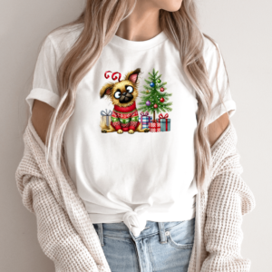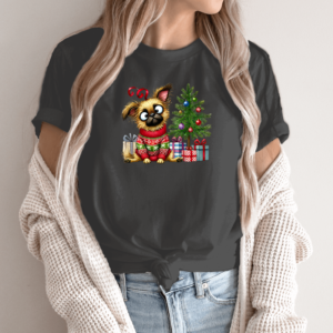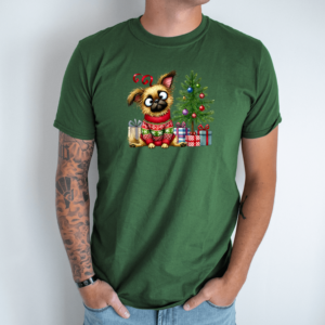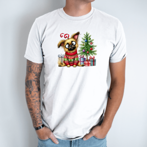 Unisex marškinėliai su spauda „Šuo šventinėje nuotaikoje“