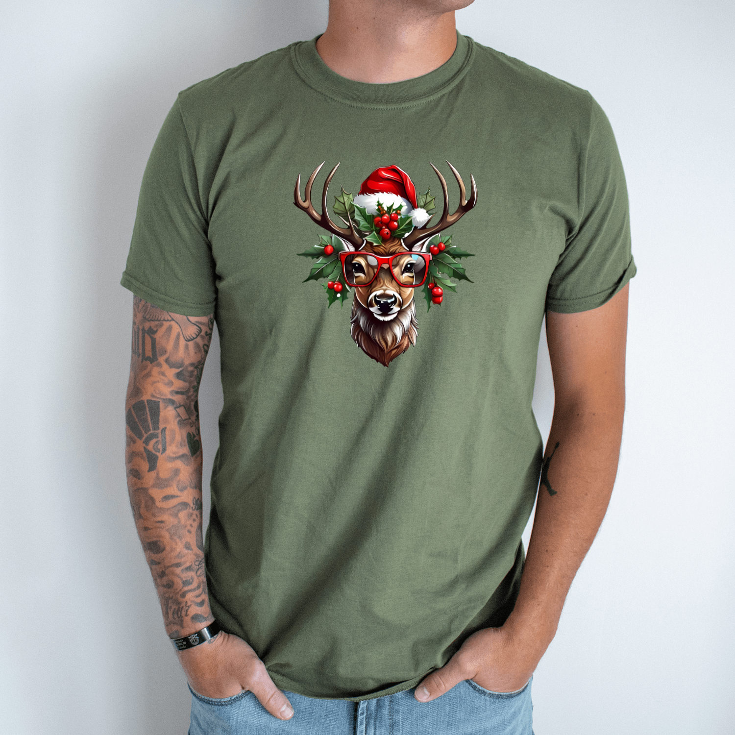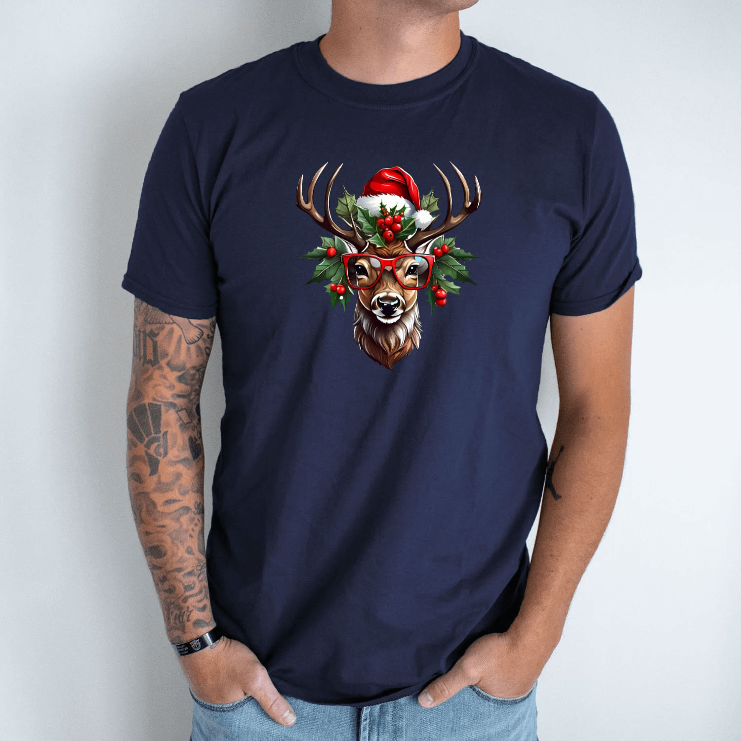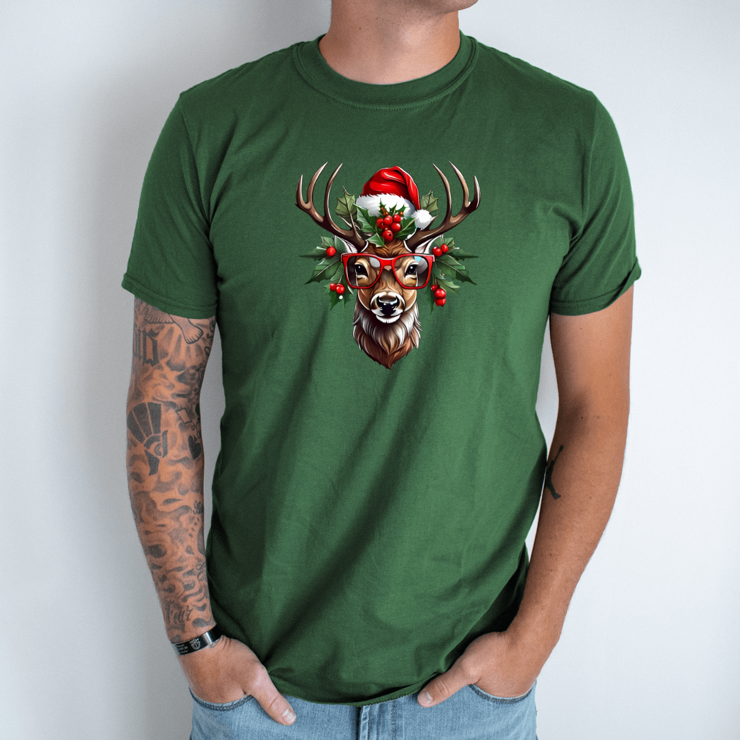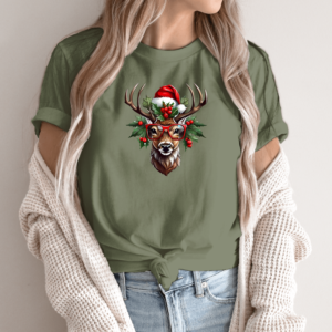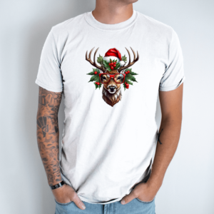 Unisex marškinėliai su spauda „Šventinis elnias“