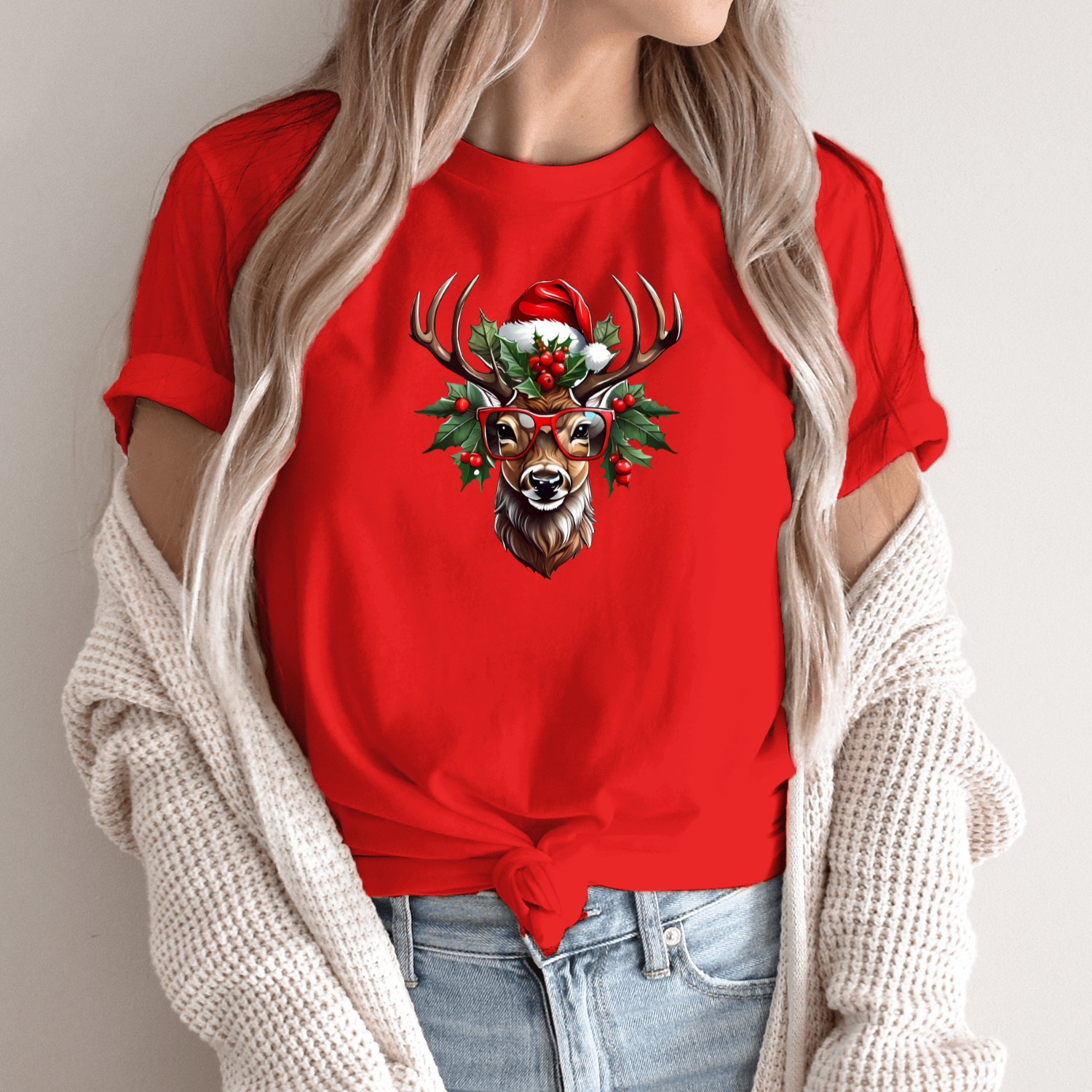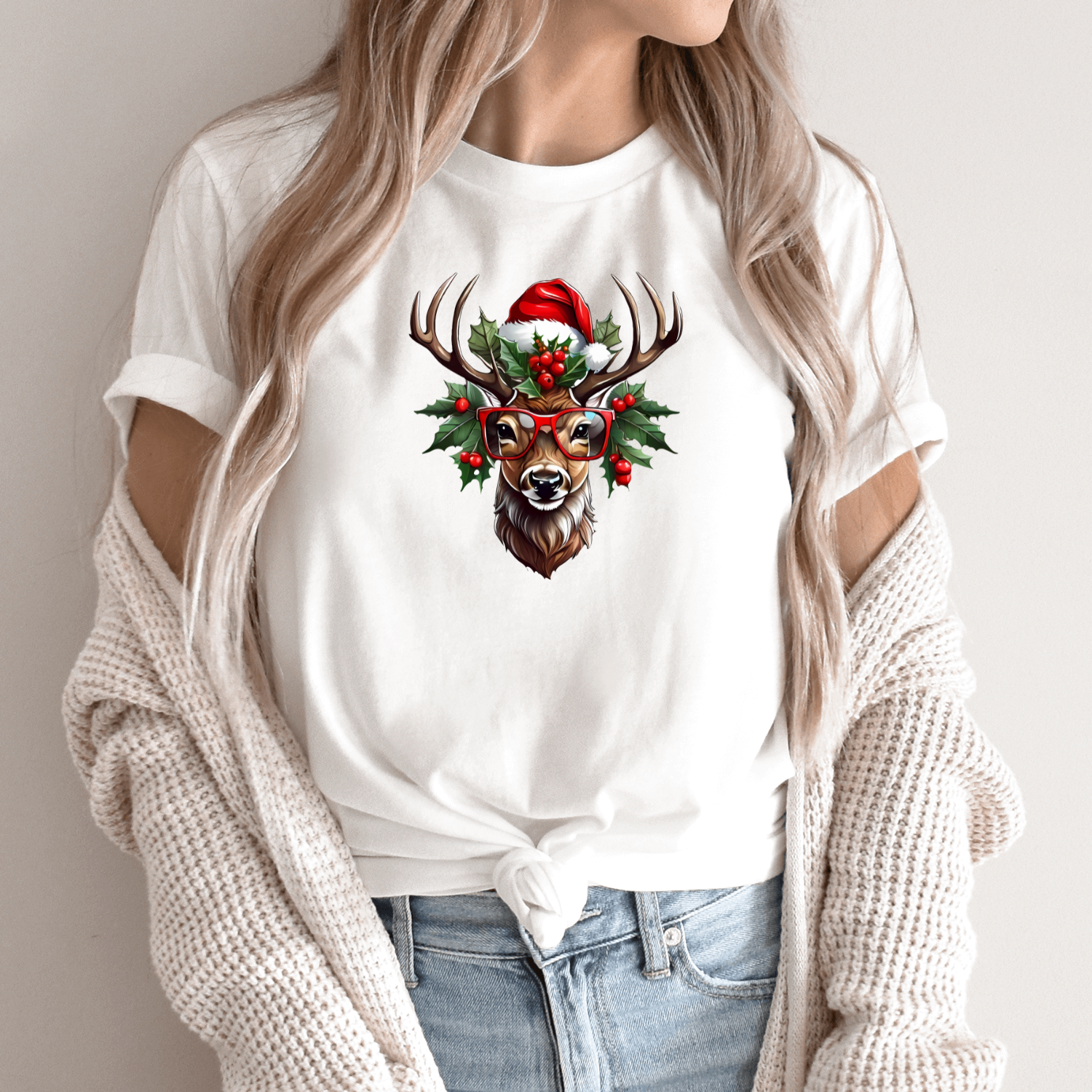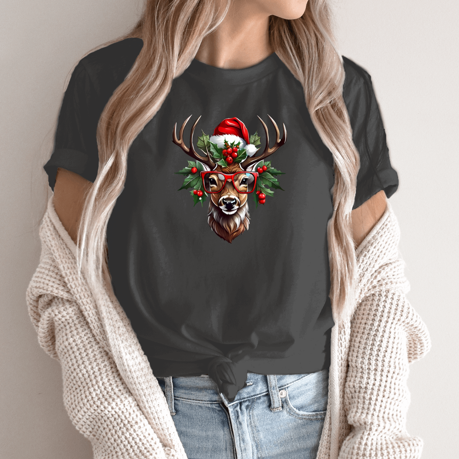 Unisex marškinėliai su spauda „Šventinis elnias“