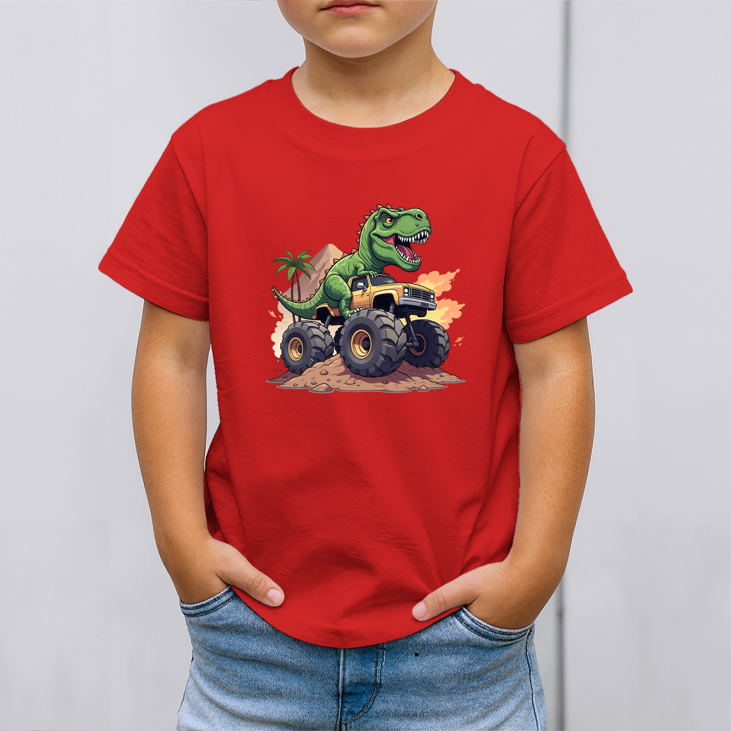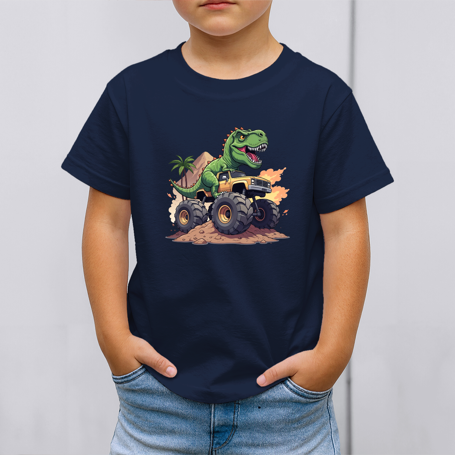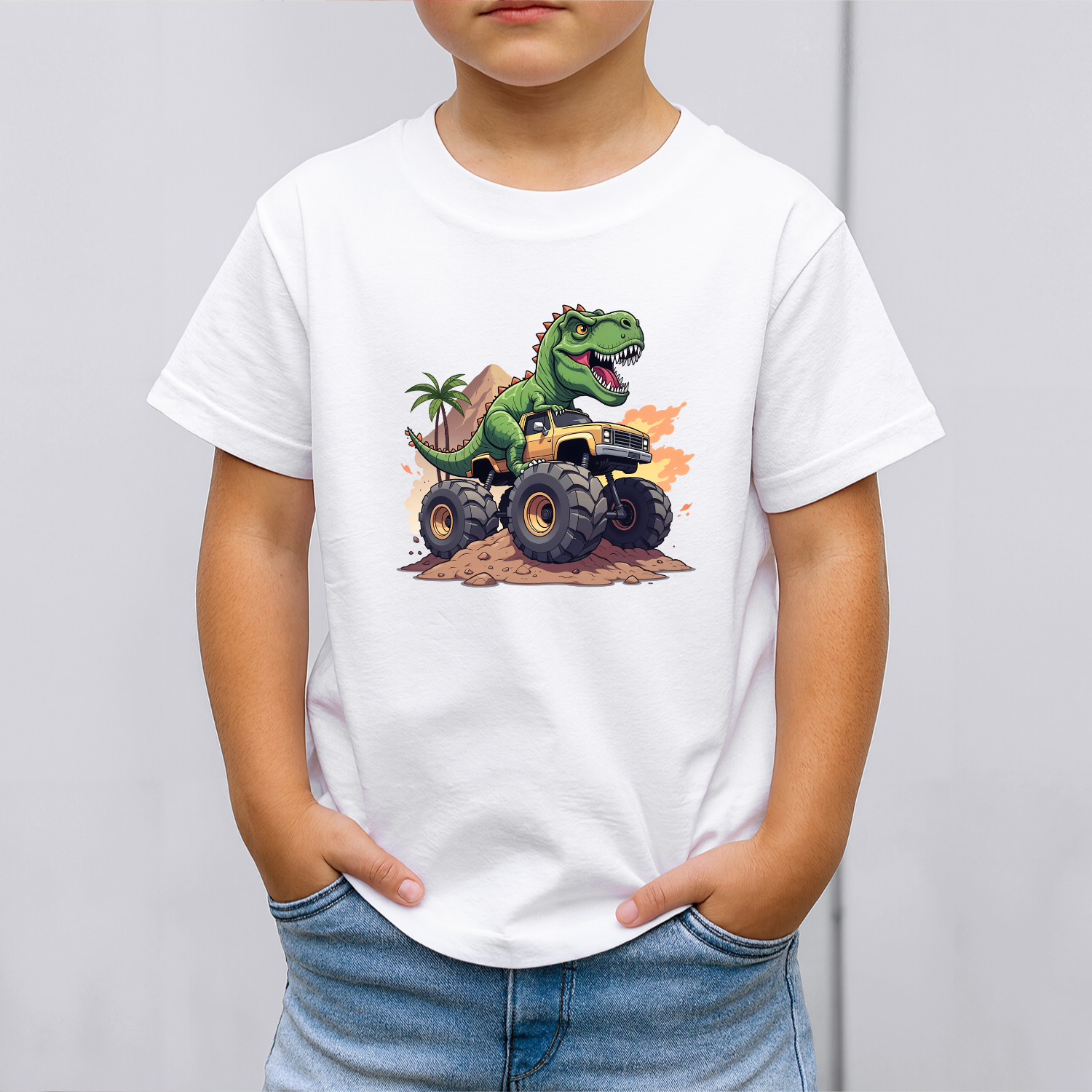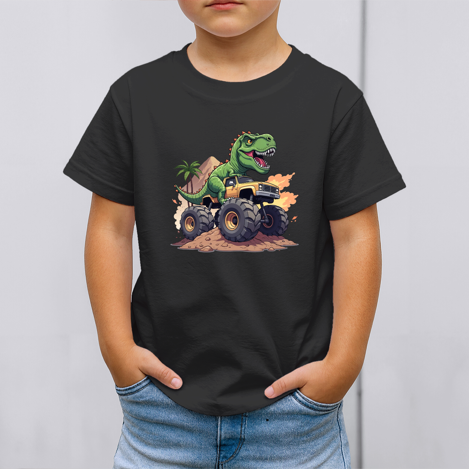Vaikiški marškinėliai su spauda „Dino su Monster Truck“