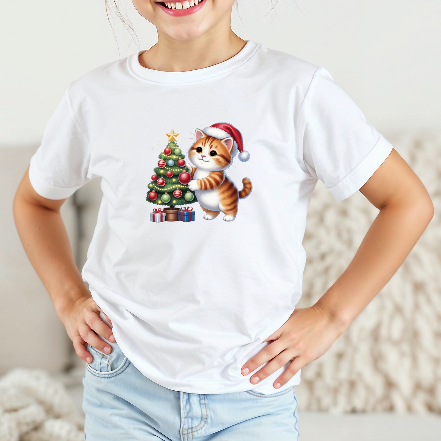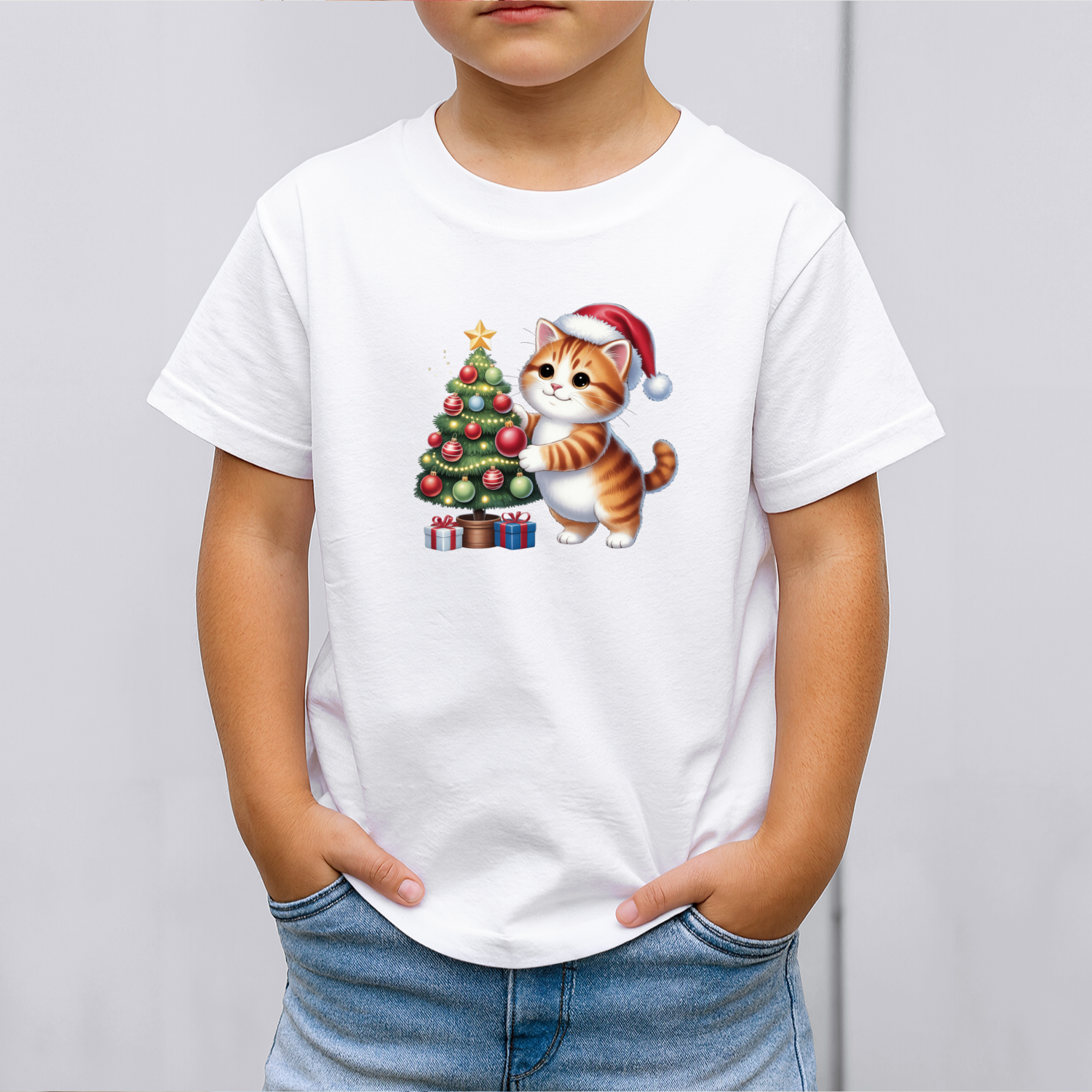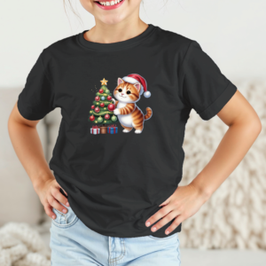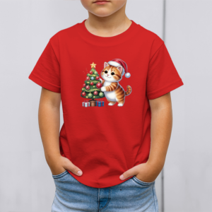 Vaikiški marškinėliai su spauda „Kačiukas puošia eglutę“