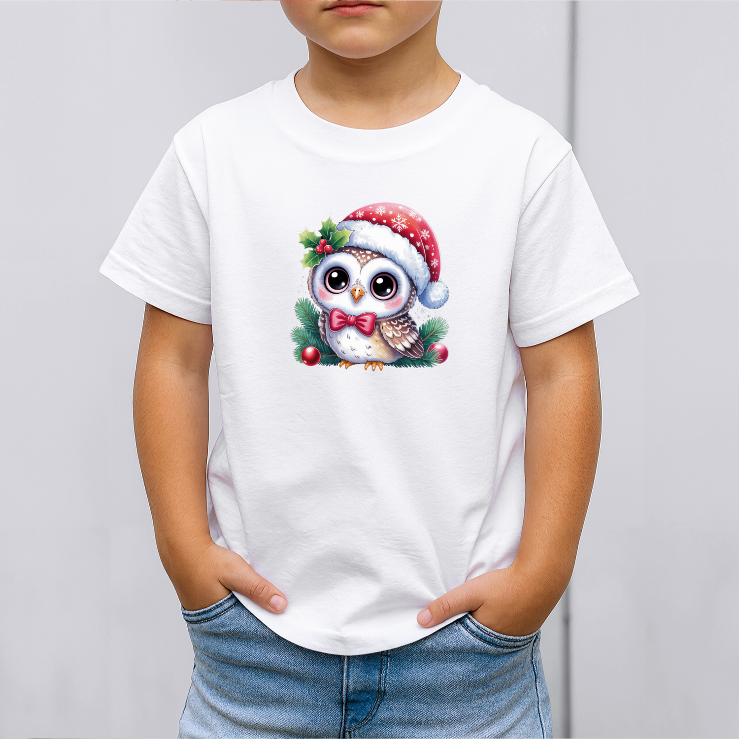 Vaikiški marškinėliai su spauda „Kalėdinė pelėdėlė“