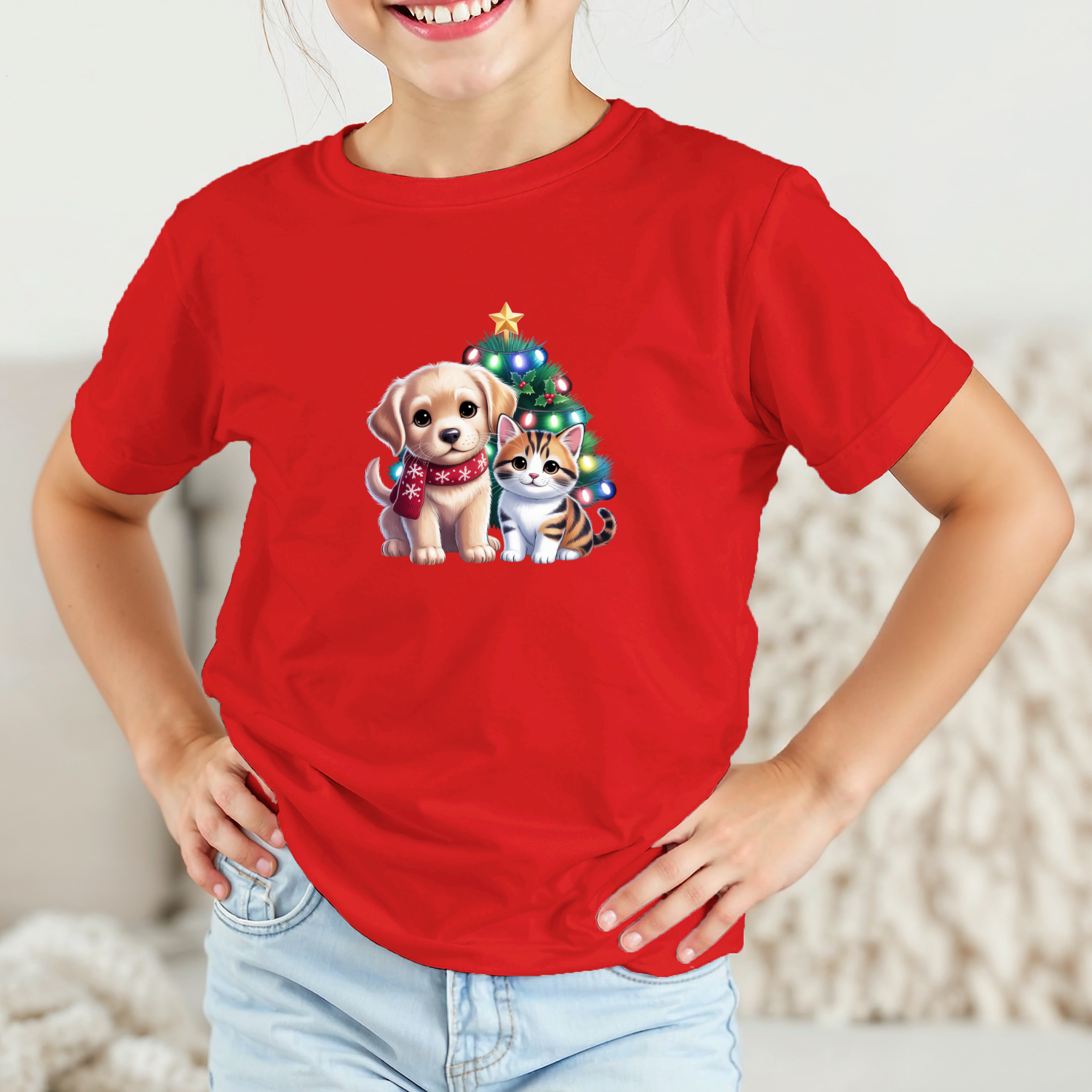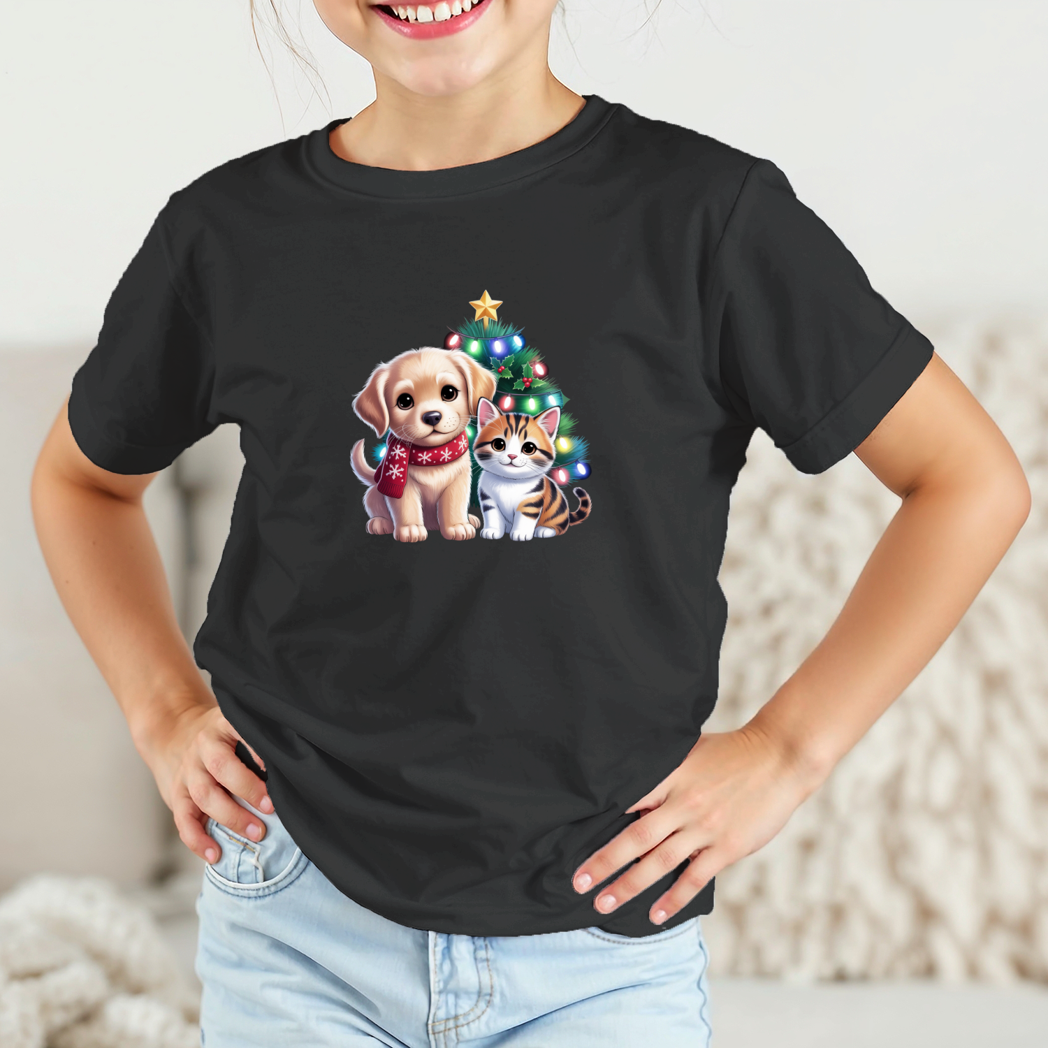 Vaikiški marškinėliai su spauda „Kalėdiniai draugai“
