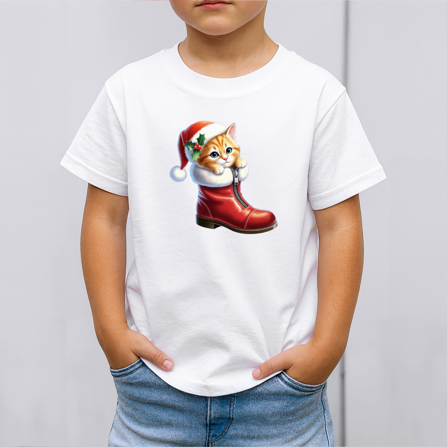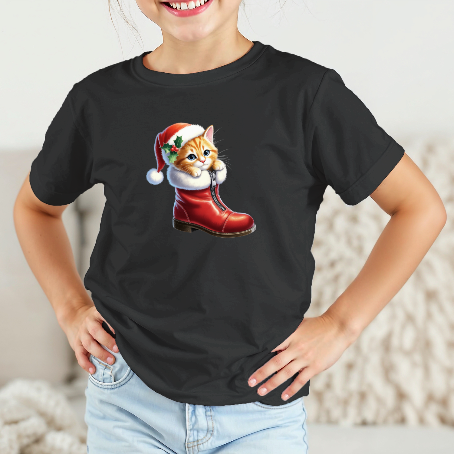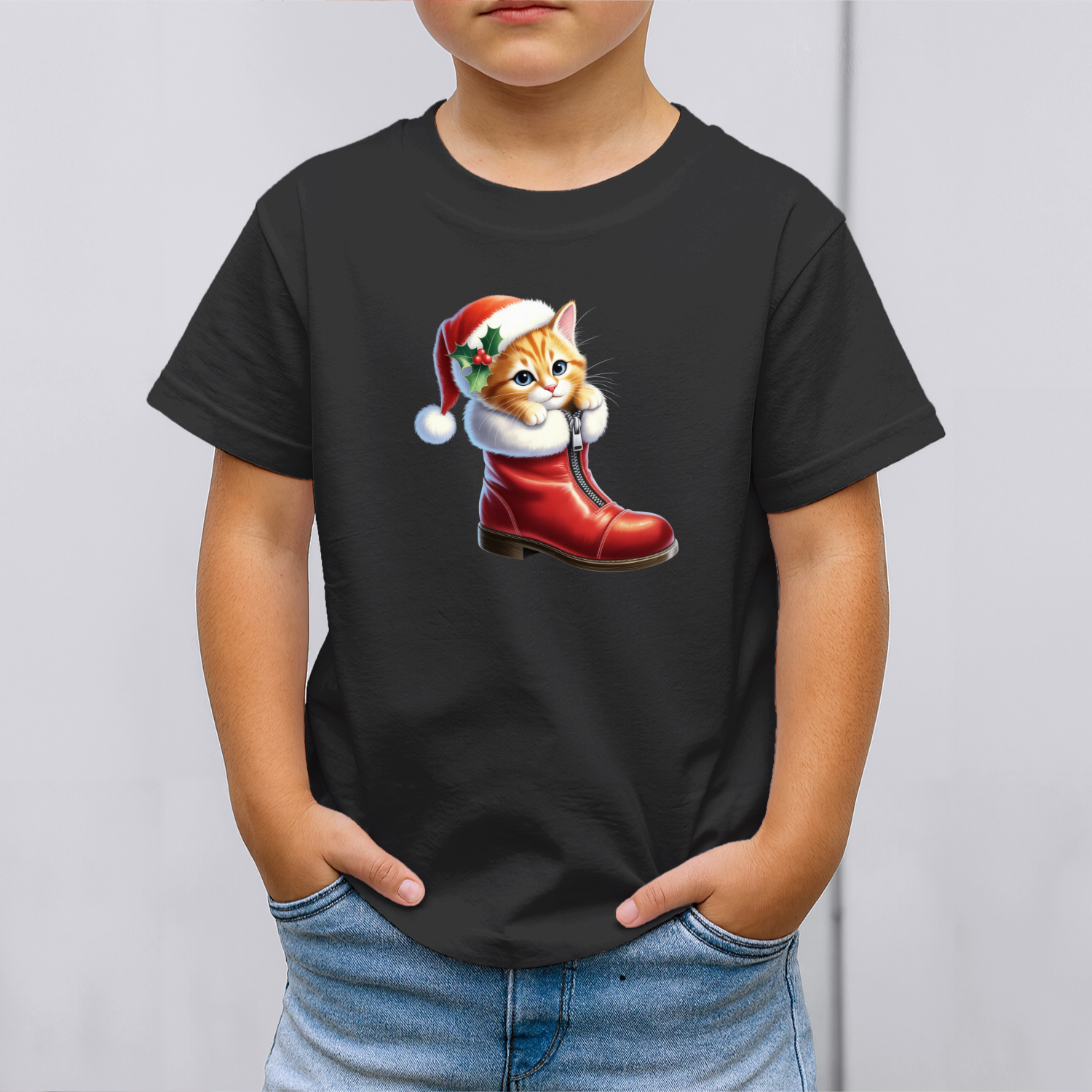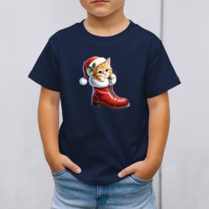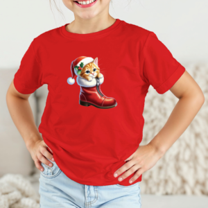 Vaikiški marškinėliai su spauda „Kalėdinis batukas su kačiuku“